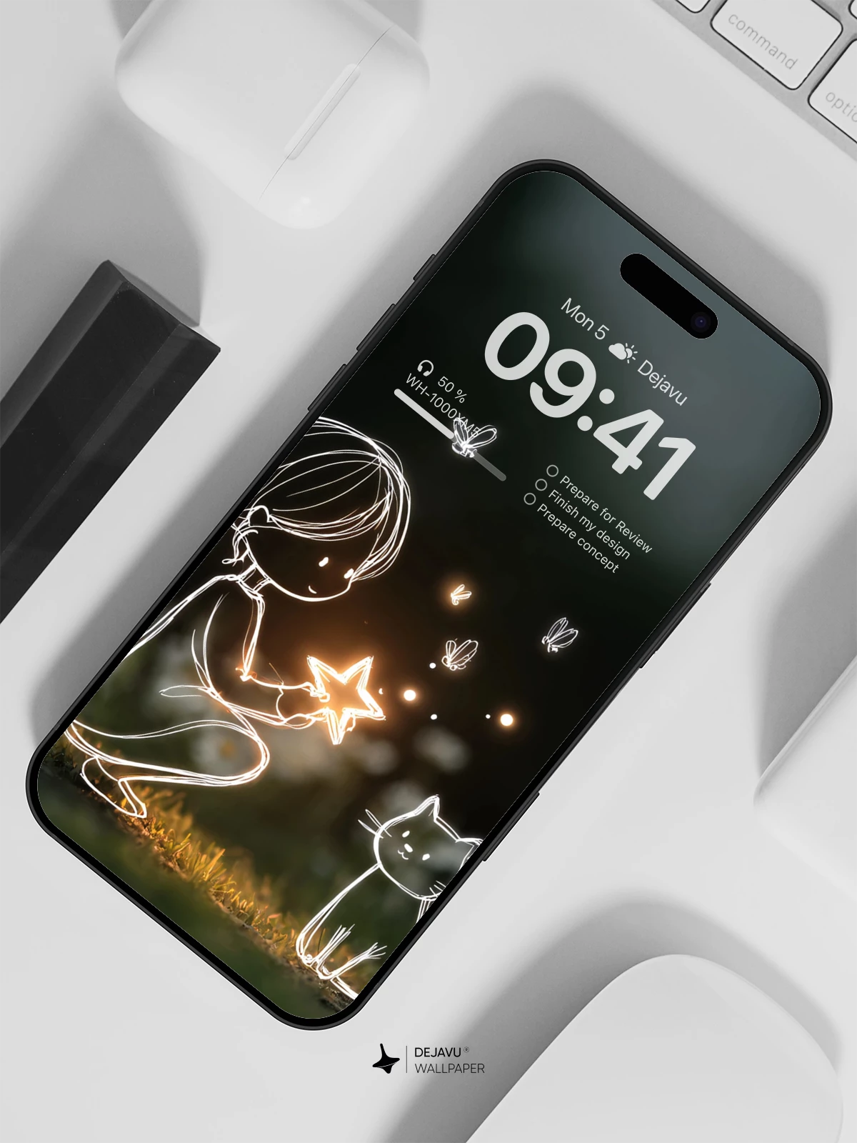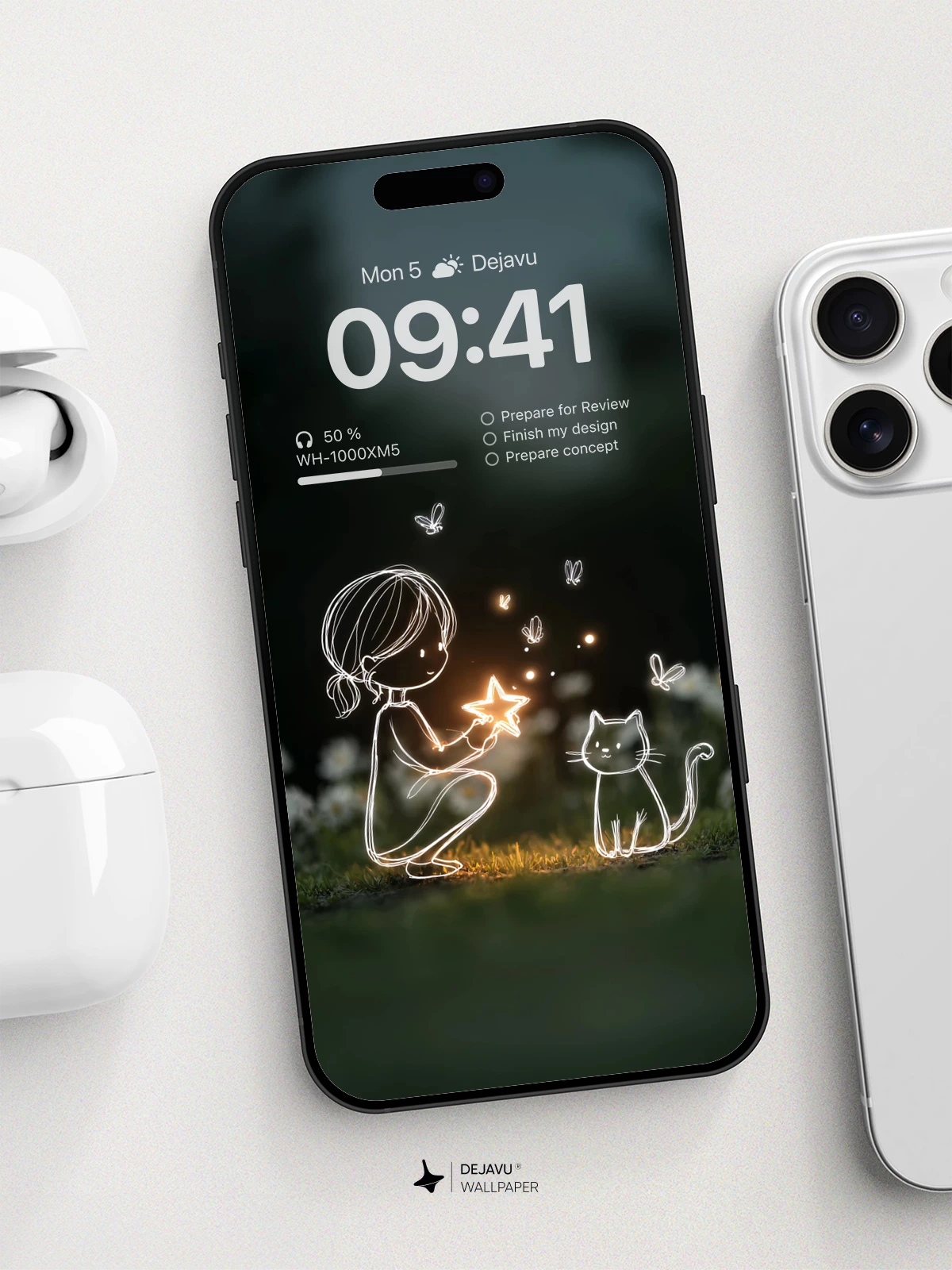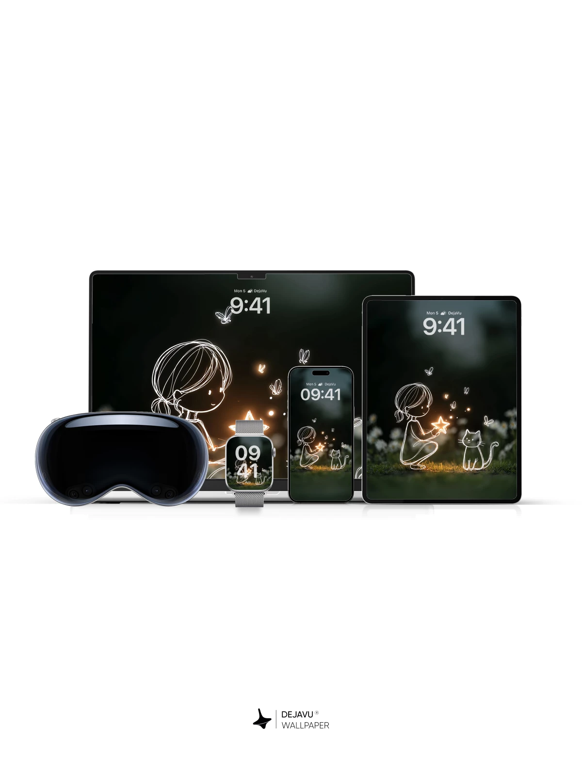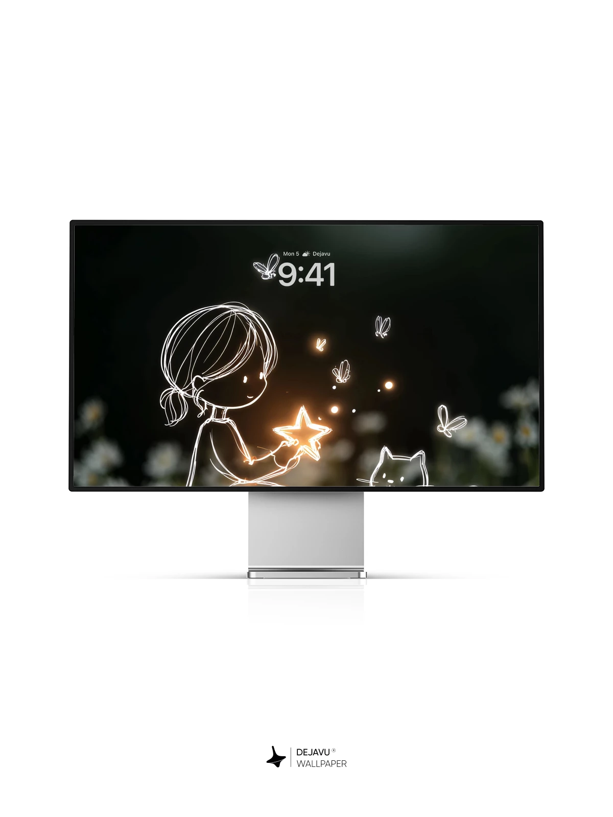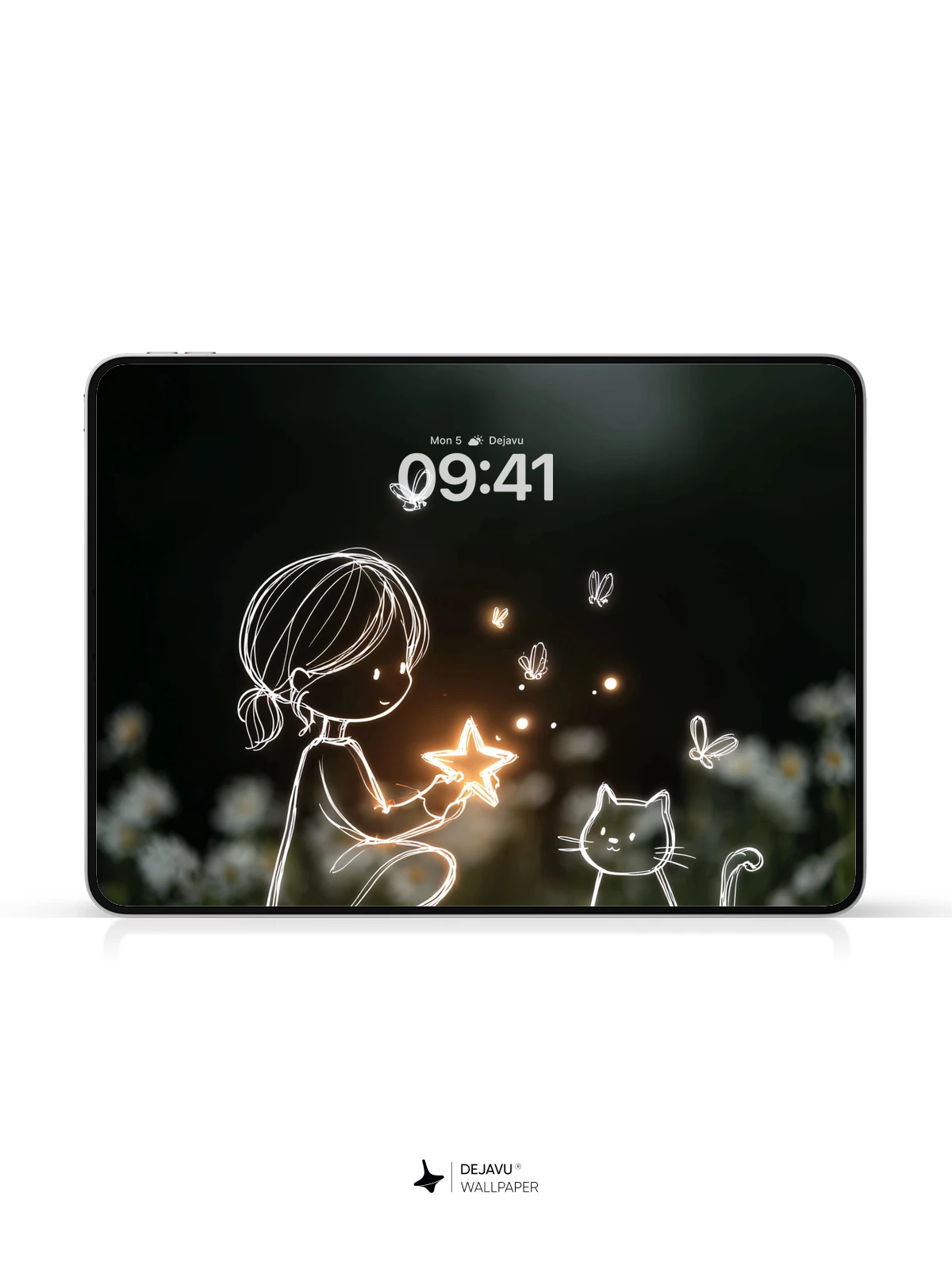 In this enchanting 8K wallpaper, a delicate line-art girl kneels gently in a moonlit meadow, cradling a radiant star that illuminates the night. Beside her sits a curious cat, both outlined in soft, luminous strokes, as fireflies flutter around like tiny lanterns. The dreamlike composition blends whimsy and serenity, evoking wonder and quiet magic. Ideal for iPhone, Android, or any mobile device, this artwork brings a touch of celestial charm to your screen with its minimalist elegance and ethereal glow.