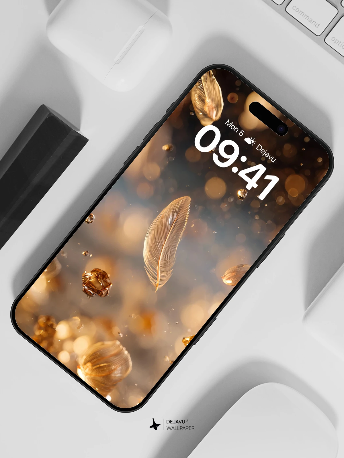 This stunning 8K wallpaper captures a dreamlike moment where delicate golden feathers drift through a luminous haze of amber dust and glowing orbs. Inspired by the poetic interplay of light and motion, it evokes a sense of quiet wonder and timeless grace. Ideal for iPhone, Android, and tablet screens, this high-resolution artwork transforms your device into a canvas of serene elegance, perfect for those who appreciate artistry and visual depth.