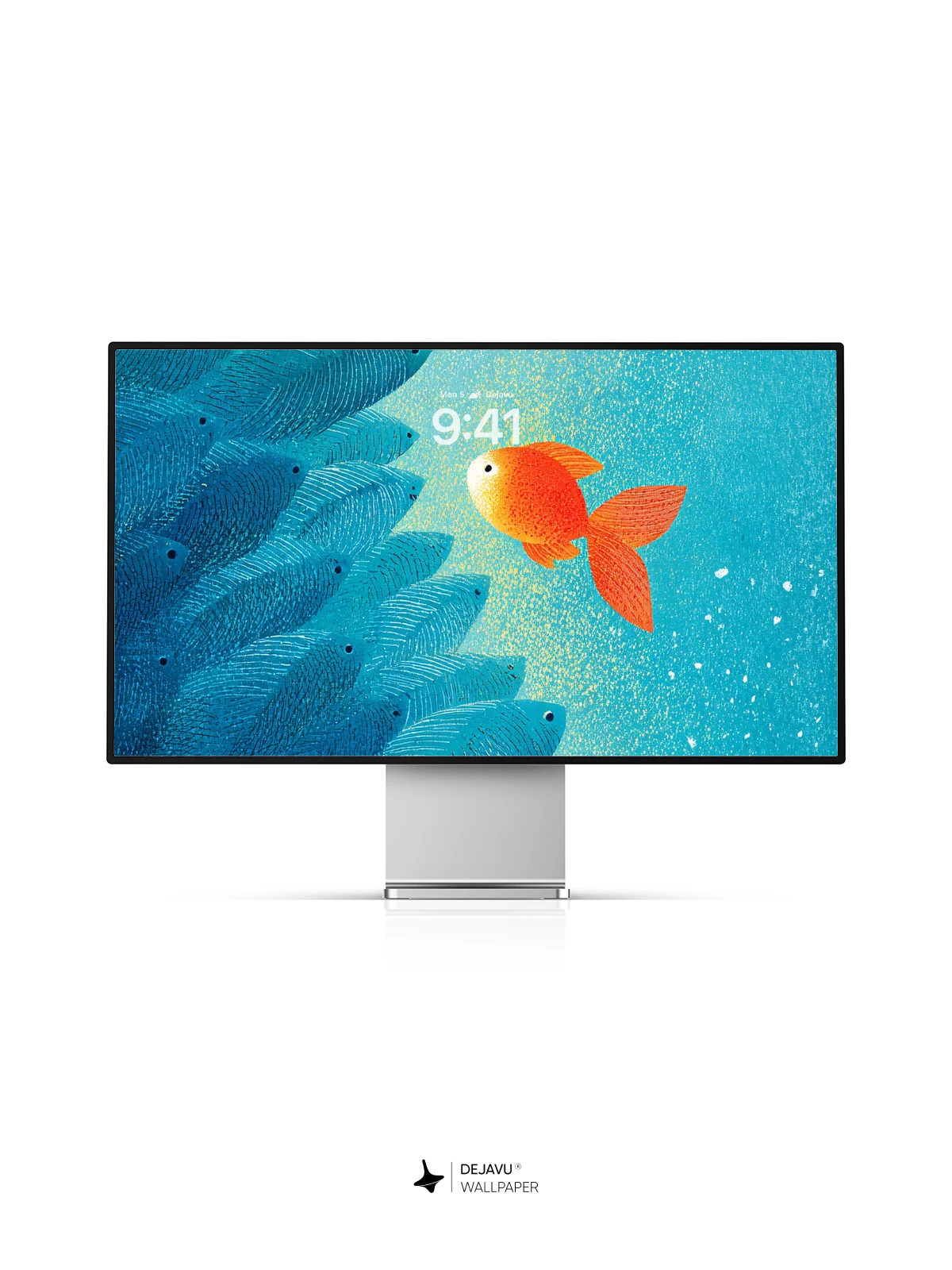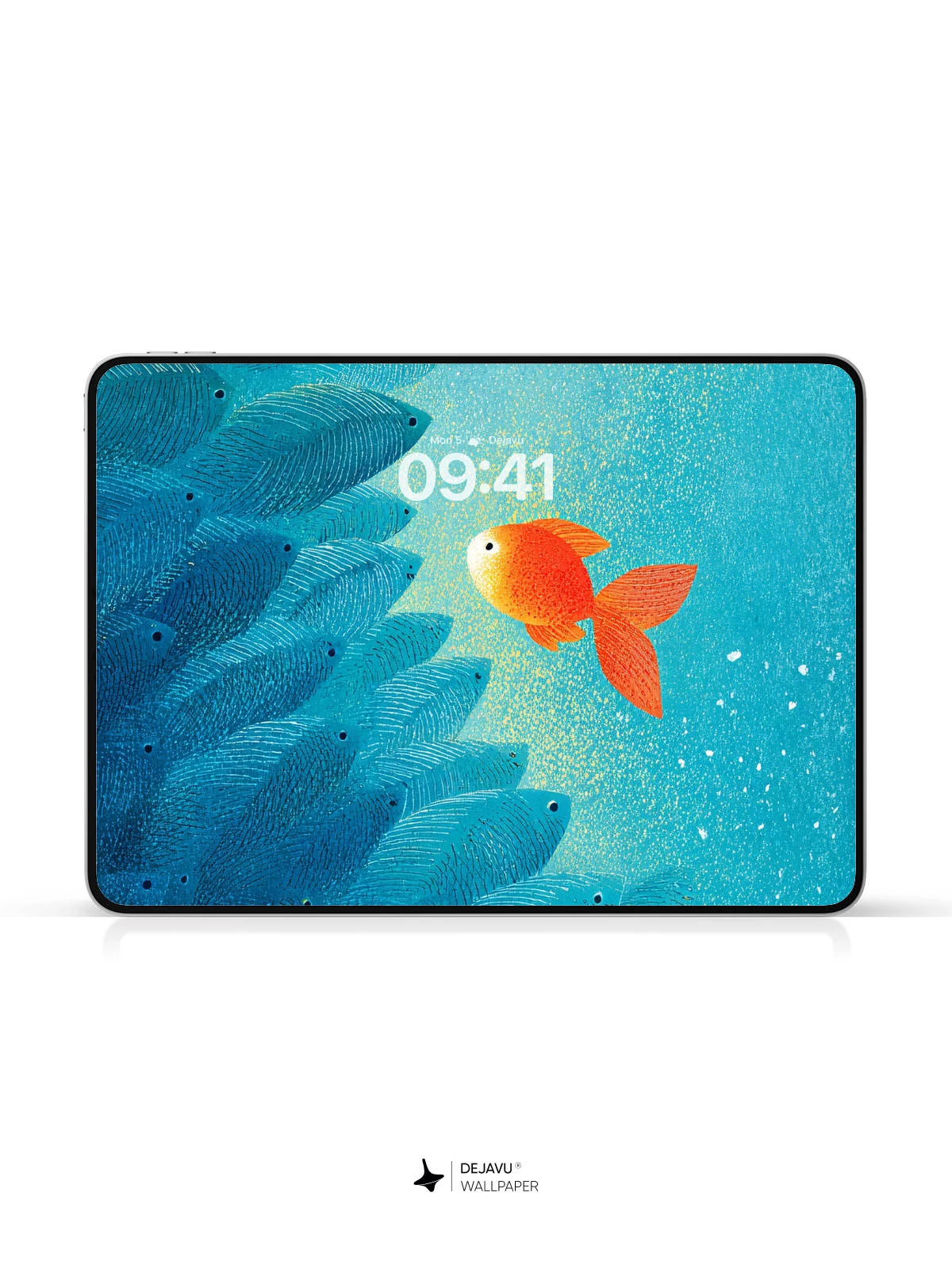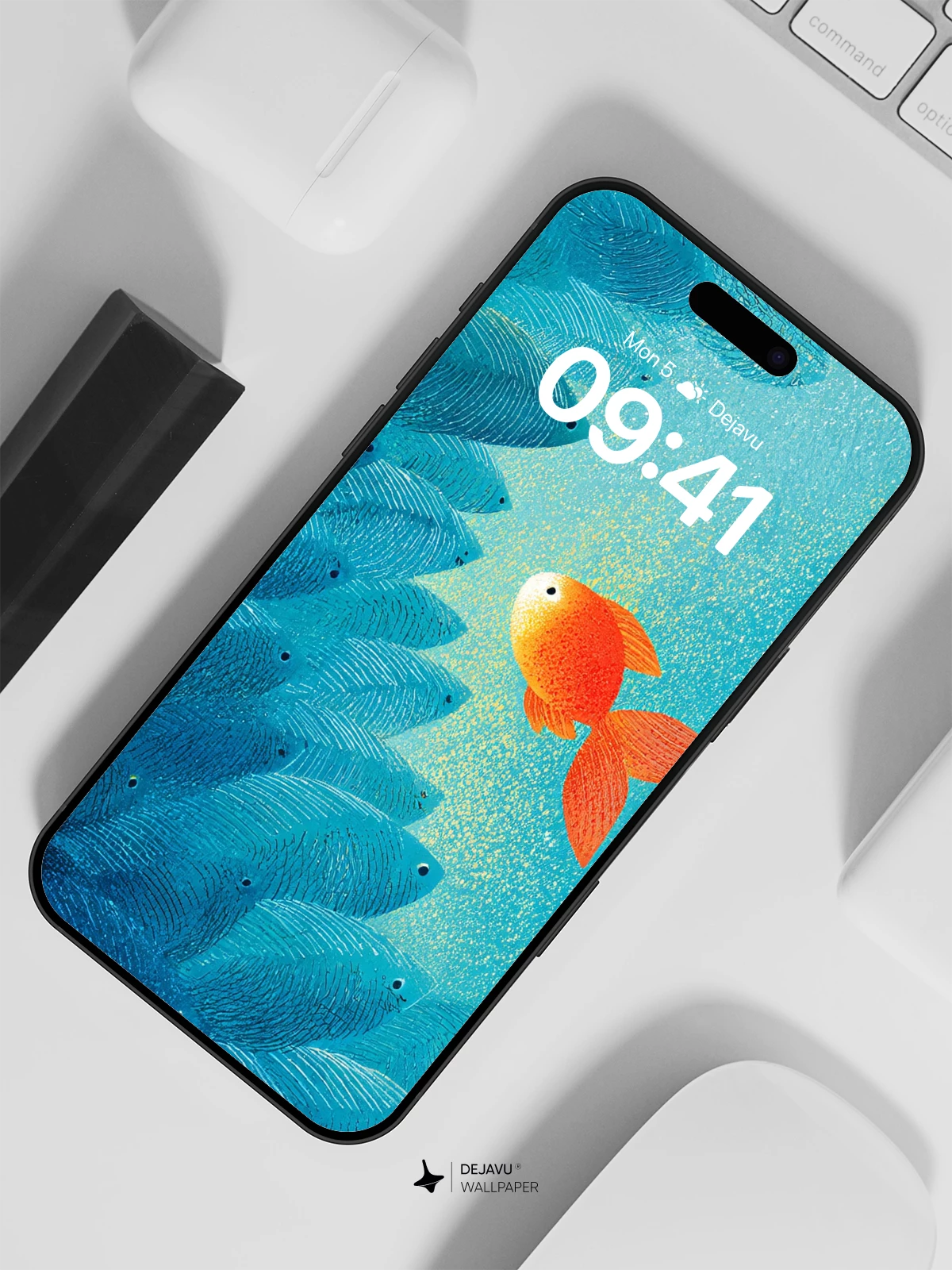 This captivating 8K wallpaper features a lone golden-orange fish swimming confidently through a vast, orderly school of deep-blue fish, symbolizing individuality and courage in the face of conformity. Inspired by modern illustrative art with a touch of poetic minimalism, the image radiates calm strength and emotional depth. The soft gradients and gentle textures create a serene underwater atmosphere, ideal for enhancing your iPhone, Android, or tablet screen with both beauty and meaning.
