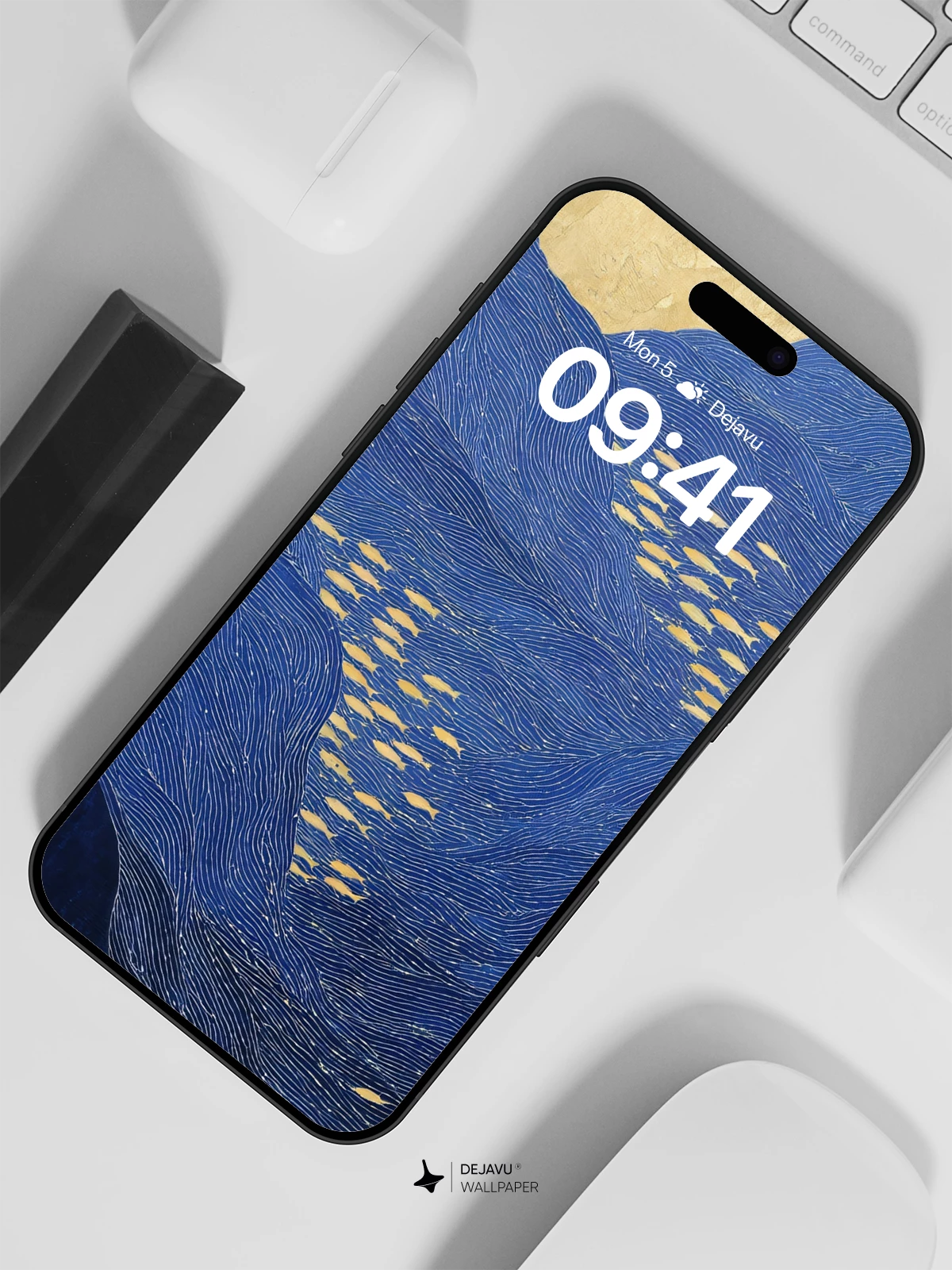 Inspired by traditional Japanese Ukiyo-e art, this stunning wallpaper blends flowing indigo waves with shimmering gold fish, set against a luminous gold-leaf sky. The intricate line work and rich textures evoke a sense of calm and timeless beauty, making it an ideal 8K background for iPhone, Android, or tablet devices. Perfect for those who appreciate minimalist elegance with a touch of cultural depth.