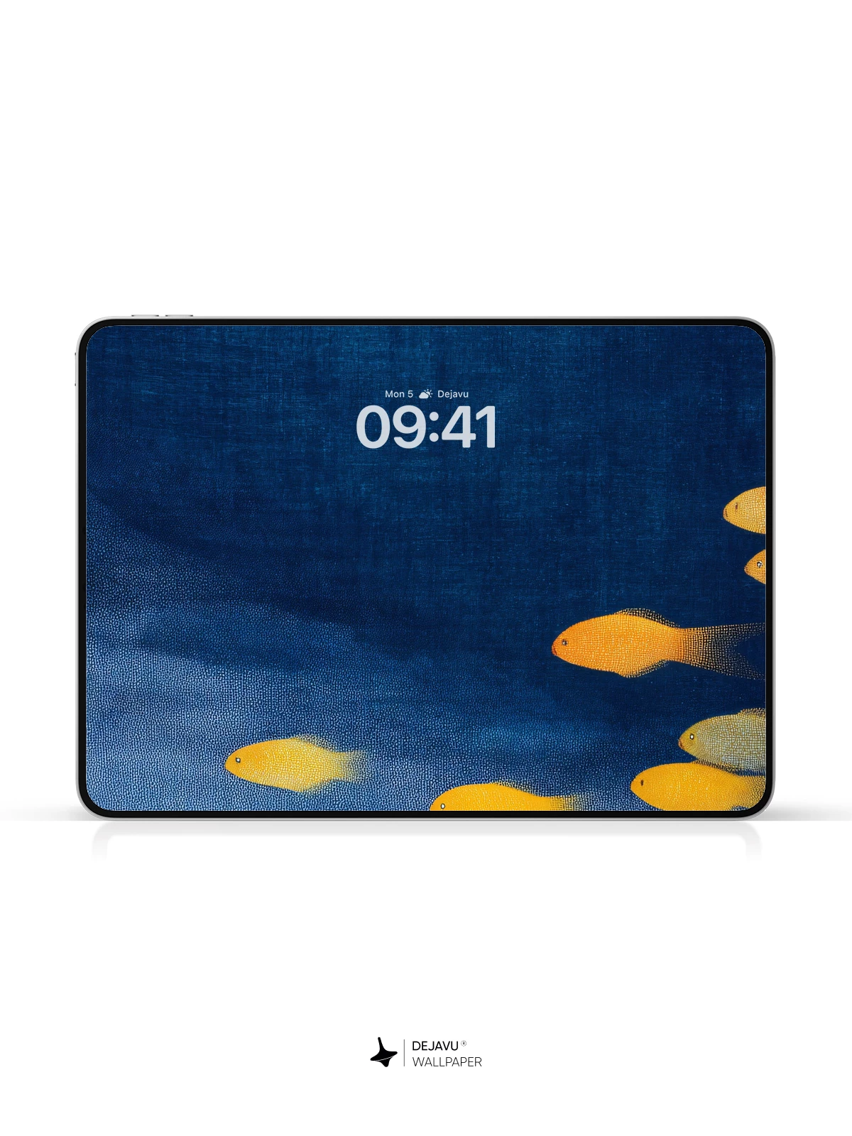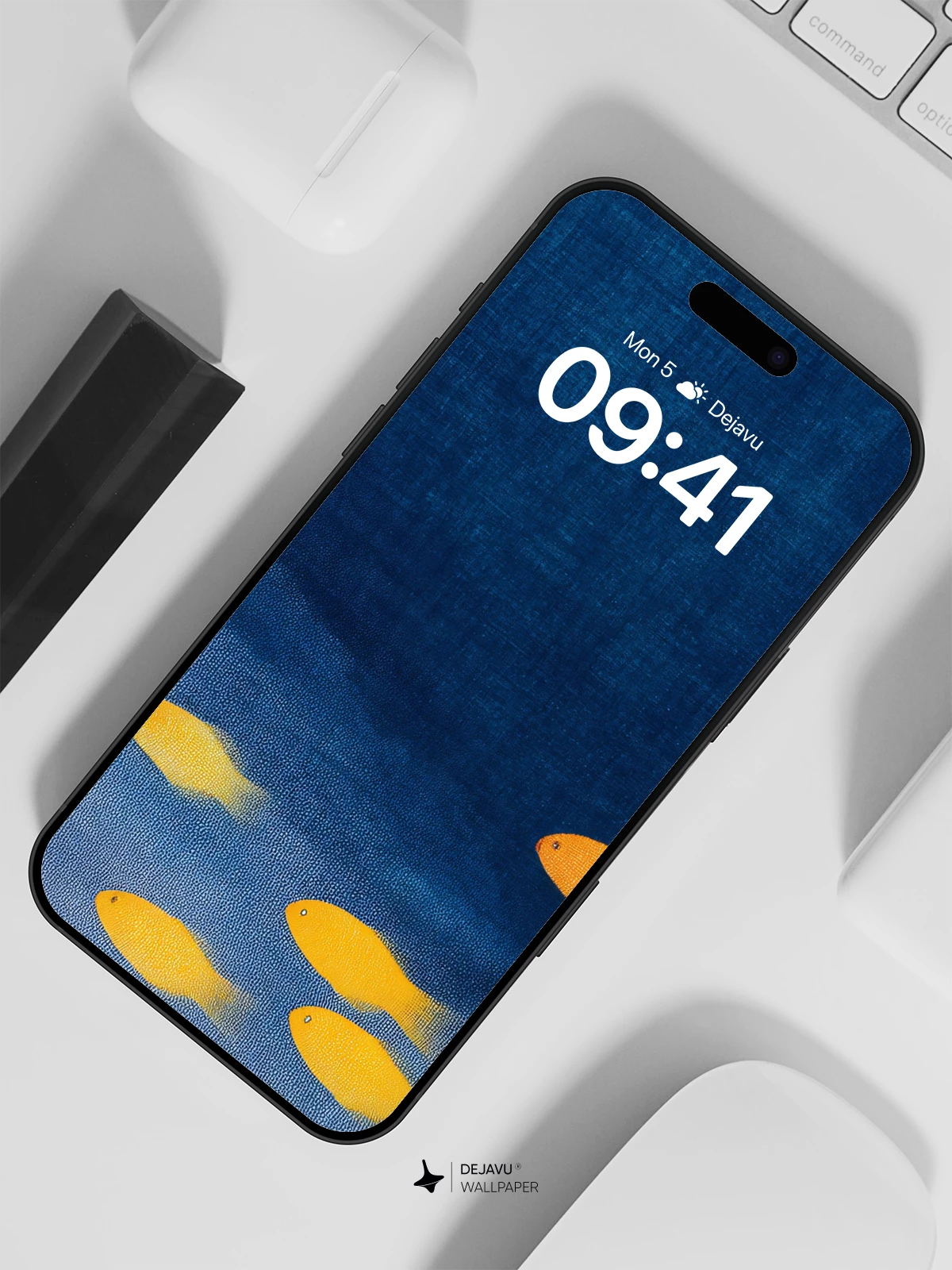 This mesmerizing 8K wallpaper captures a tranquil school of golden fish gliding through a vast, textured ocean abyss. Inspired by the minimalist elegance of modern aquatic art, it evokes a sense of calm and wonder, perfect for iPhone, Android, or tablet screens. The subtle interplay of light and shadow creates depth and movement, making it ideal for those who appreciate nature-infused design with a touch of surreal beauty.