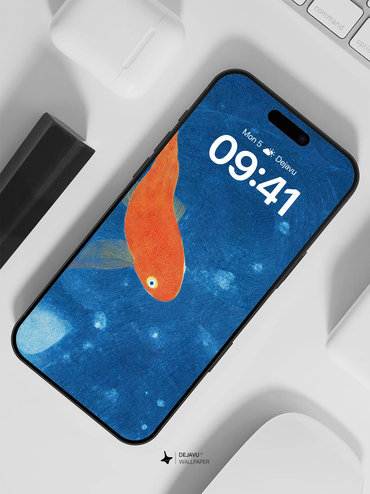 Inspired by the delicate beauty of Ukiyo-e woodblock prints, this 8K wallpaper captures a solitary golden koi swimming through hypnotic ocean currents. The rich textures and tranquil palette evoke a sense of peace and timeless harmony, making it ideal for iPhone, Android, and tablet screens. A perfect blend of nature and artistic finesse.
