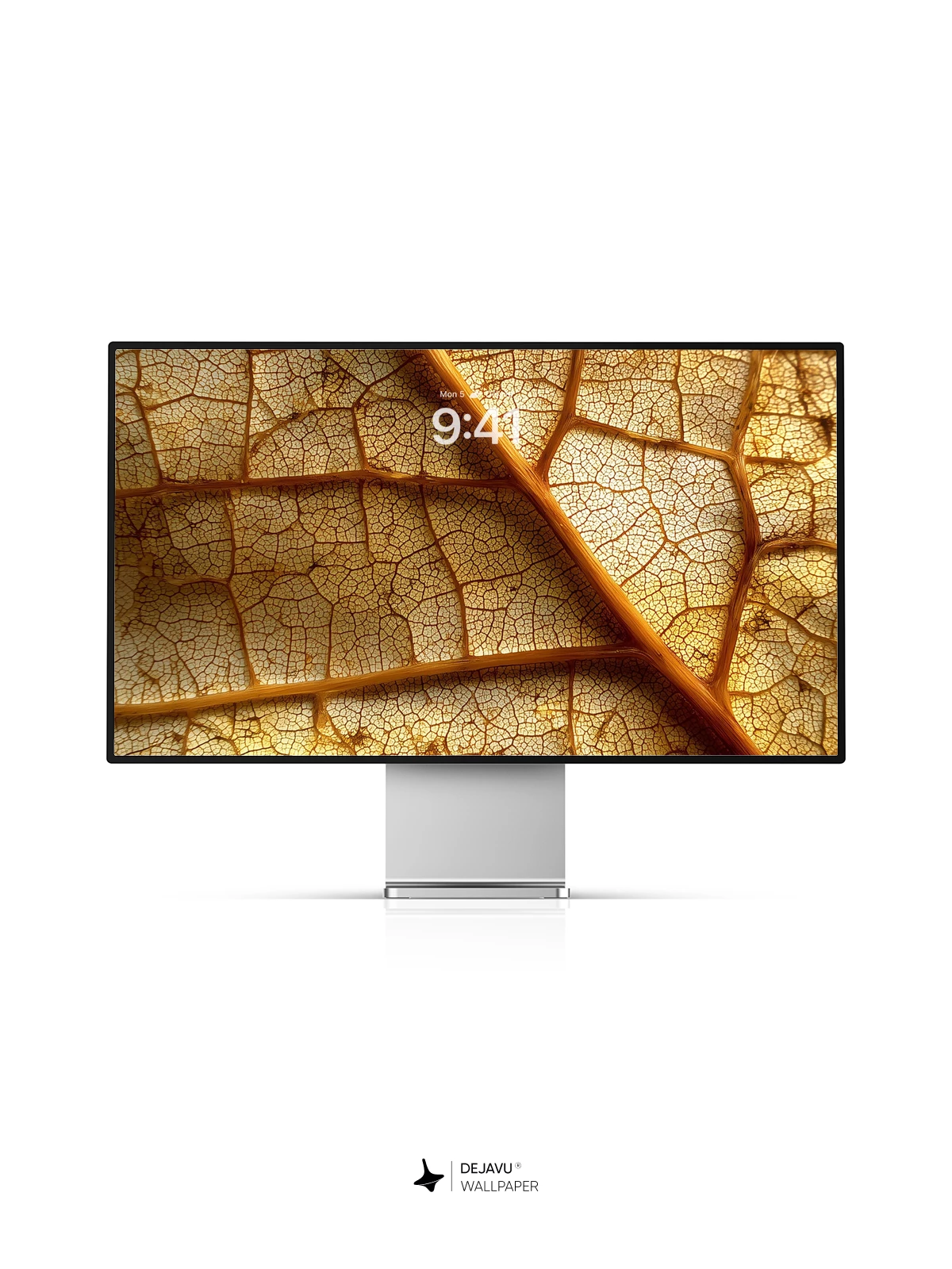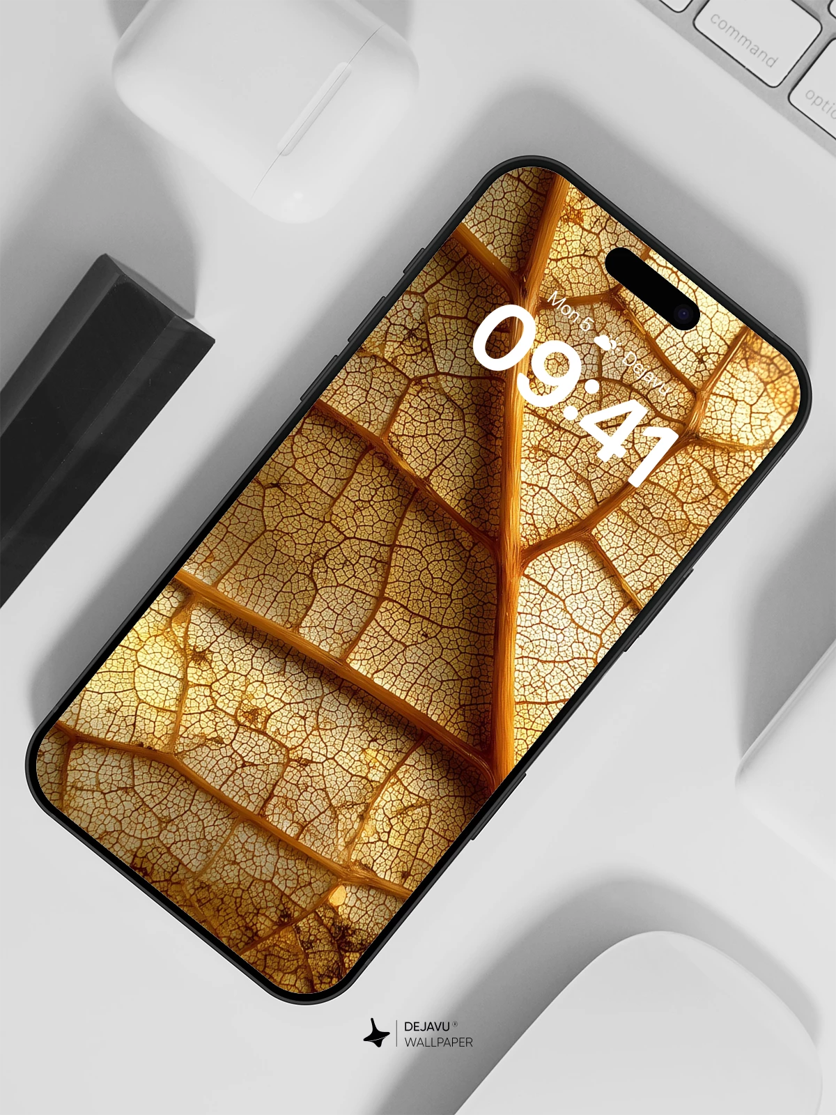 This stunning 8K wallpaper showcases the delicate, lace-like structure of a dried leaf illuminated from behind, revealing a network of golden veins that shimmer with ethereal light. The interplay of warmth and texture evokes a sense of timeless beauty and quiet wonder, making it an ideal choice for iPhone, Android, or tablet screens. Nature’s artistry is preserved in every detail—perfect for those who appreciate serene, high-resolution visuals.