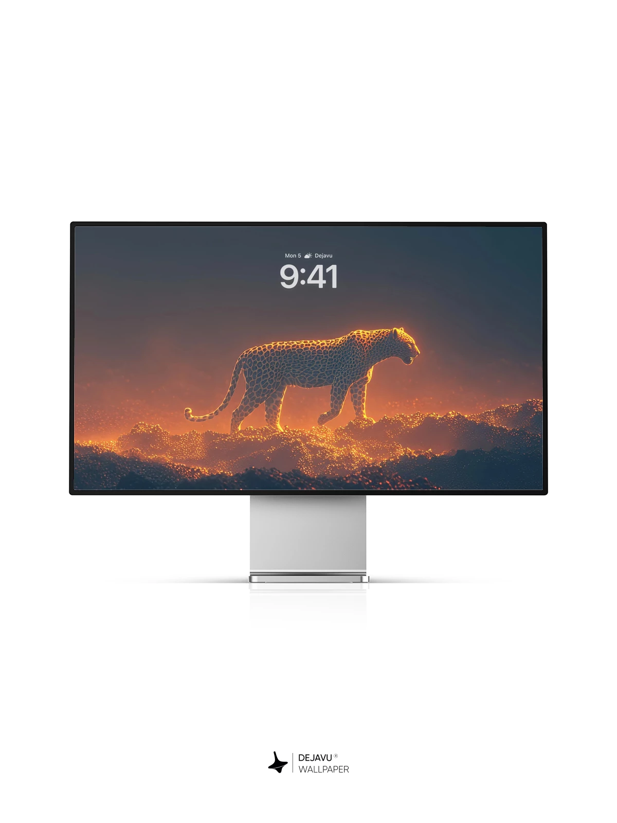 This breathtaking 8K wallpaper features a lone leopard silhouetted against a radiant, golden-hued horizon, walking atop a rugged terrain that shimmers like molten fire. The dramatic contrast between the deep blue sky and the warm glow beneath evokes a sense of mysticism and untamed beauty. Ideal for iPhone, Android, and tablet screens, this image captures the essence of wild elegance and cinematic depth, making it a perfect choice for those who appreciate nature-inspired digital art with a dreamlike edge.