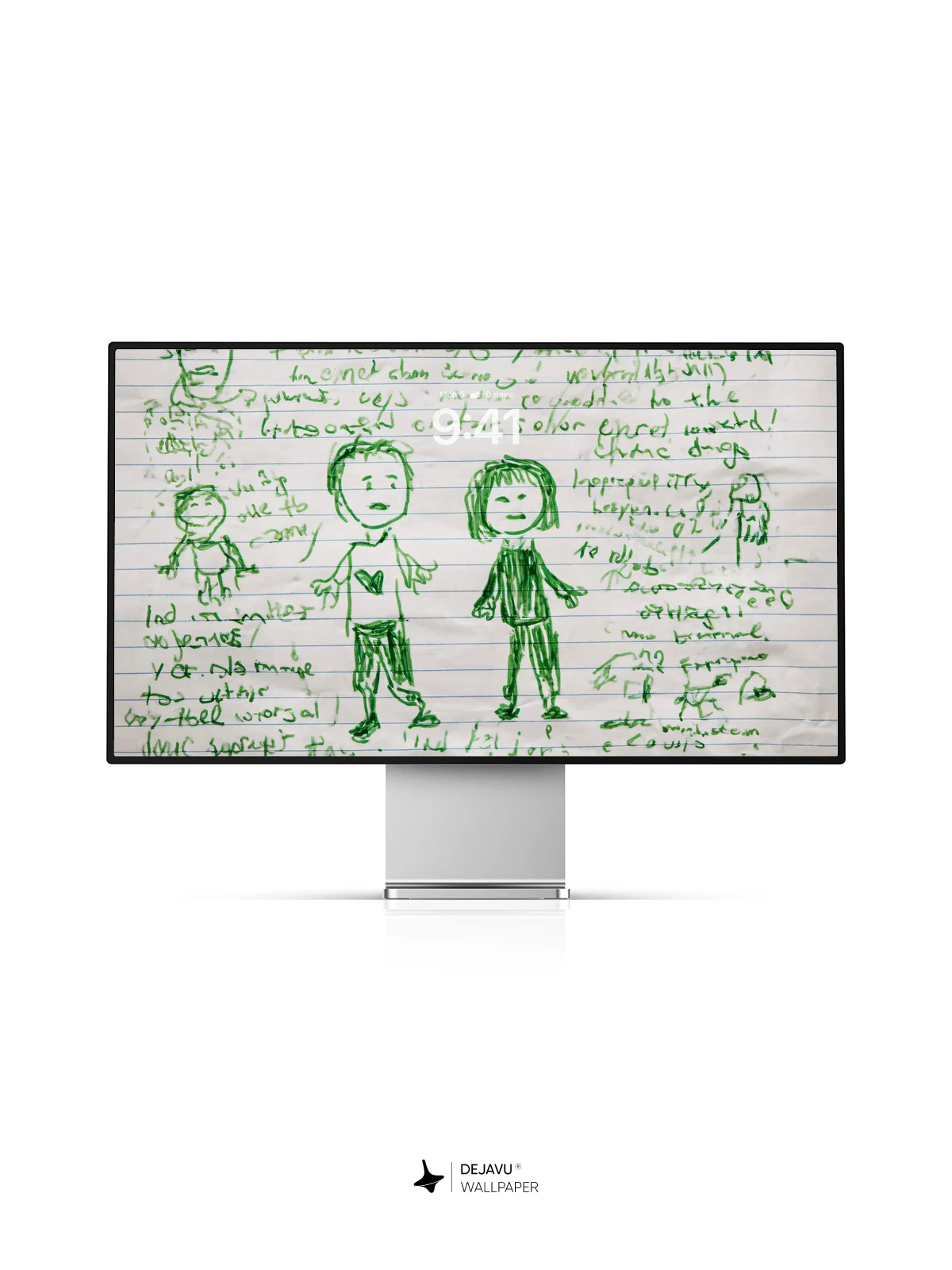 This charming 8K wallpaper captures the innocence and imagination of childhood through a hand-drawn sketch on lined paper. Filled with quirky characters, expressive faces, and handwritten notes, it evokes a sense of nostalgia and creative spontaneity. Ideal for fans of retro charm and personal artistry, this unique design brings warmth and personality to any iPhone, Android, or tablet screen. Perfect for those who cherish storytelling and the magic of early drawings.