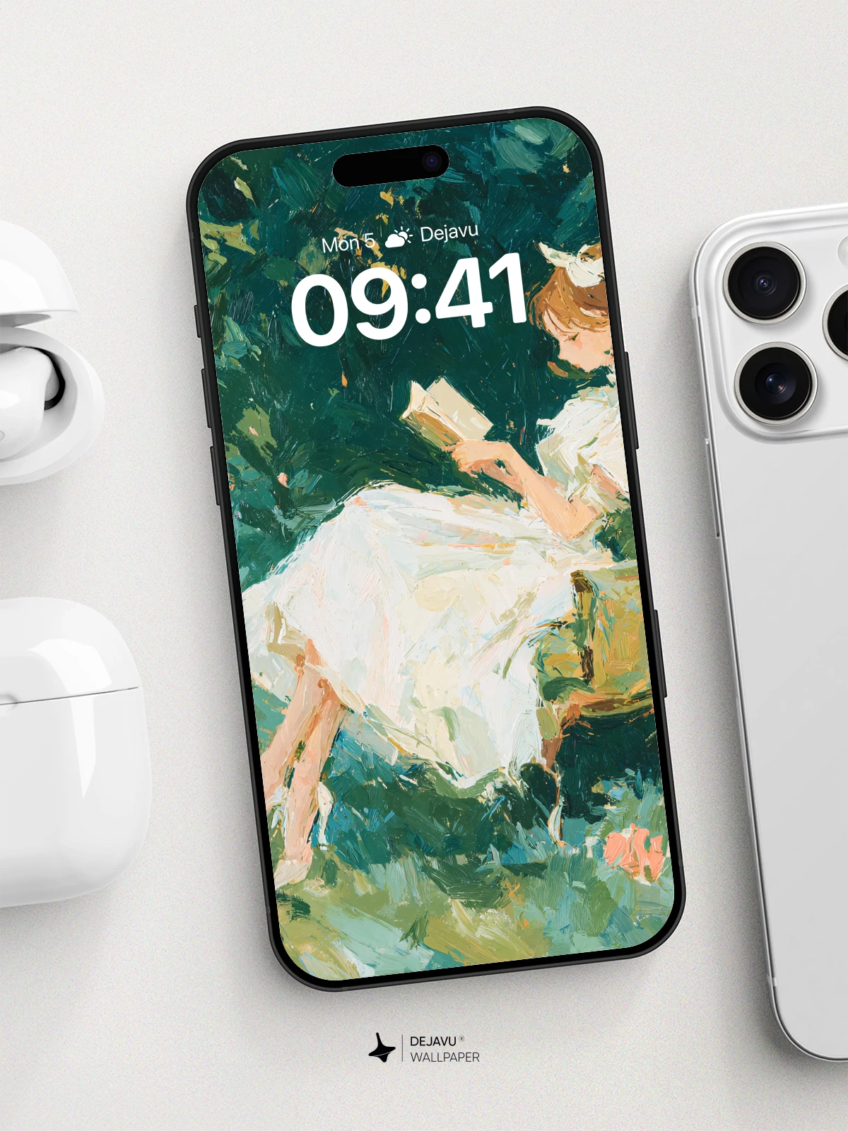 Inspired by the delicate brushwork of Impressionist masters, this 8K wallpaper captures a woman in a white dress reading peacefully amidst vibrant greenery and blooming flowers. The dreamy composition evokes calm and introspection, making it ideal for iPhone, Android, and tablet screens. Let nature’s quiet beauty surround you with every glance.