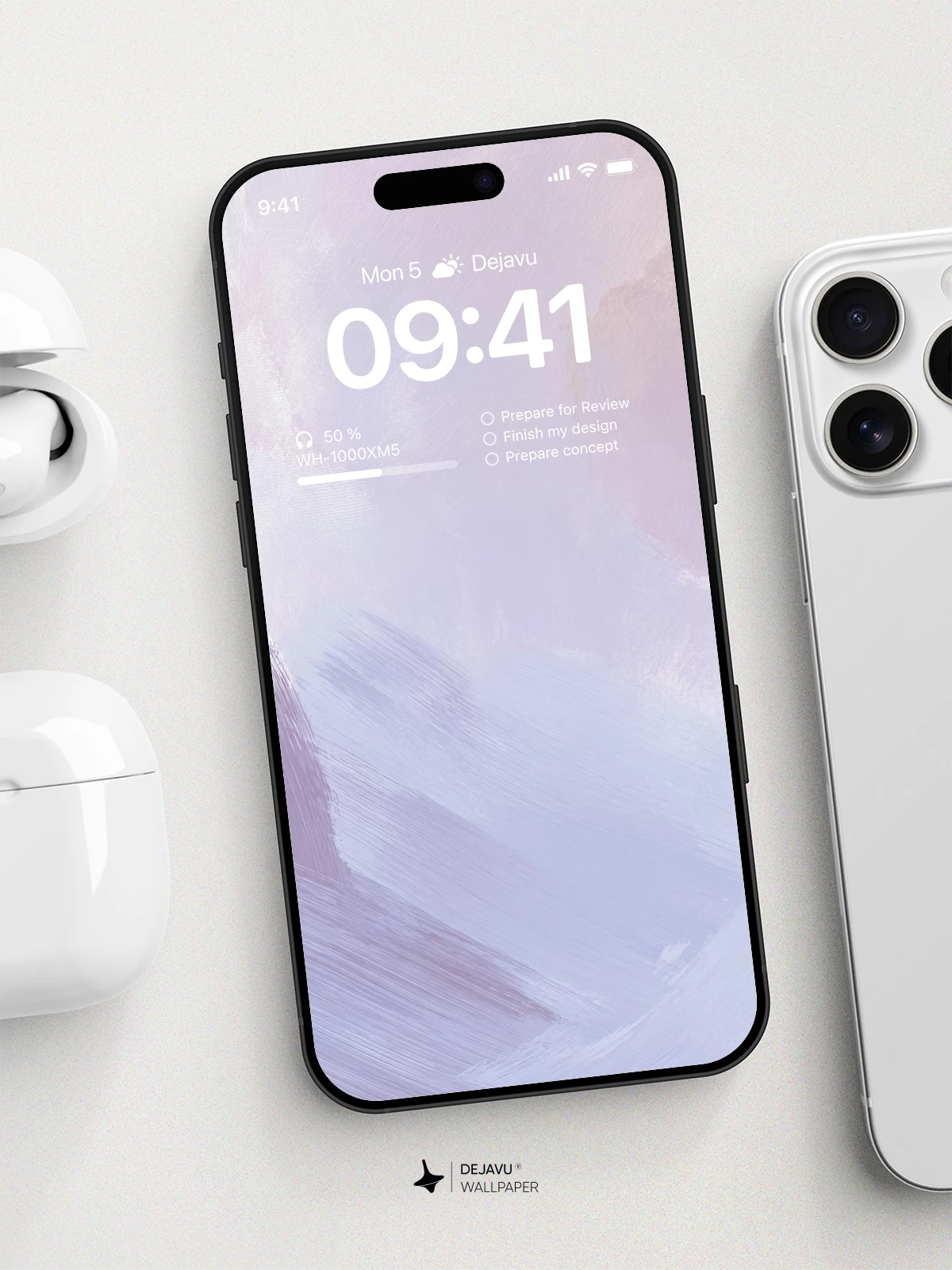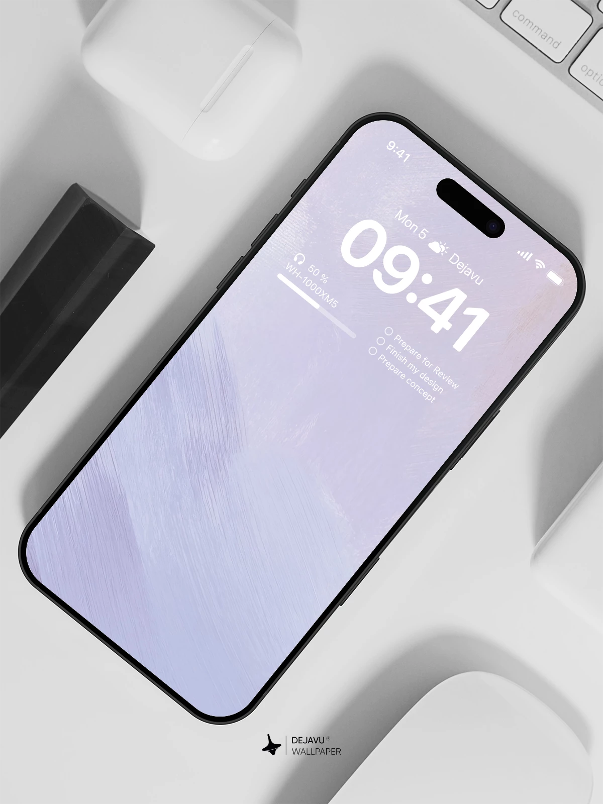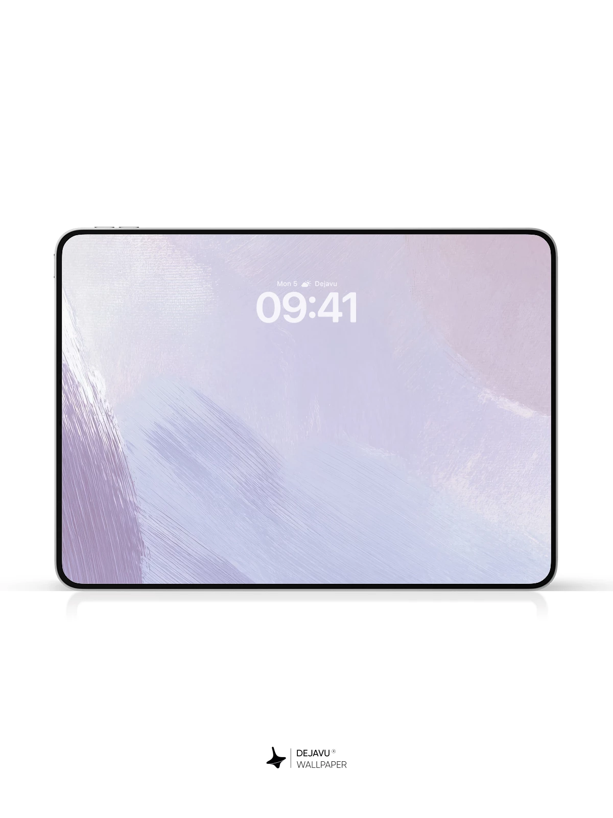 Gentle lavender strokes blend into a soft white background, offering a calming and stylish wallpaper that complements both iPhone and Android screens.