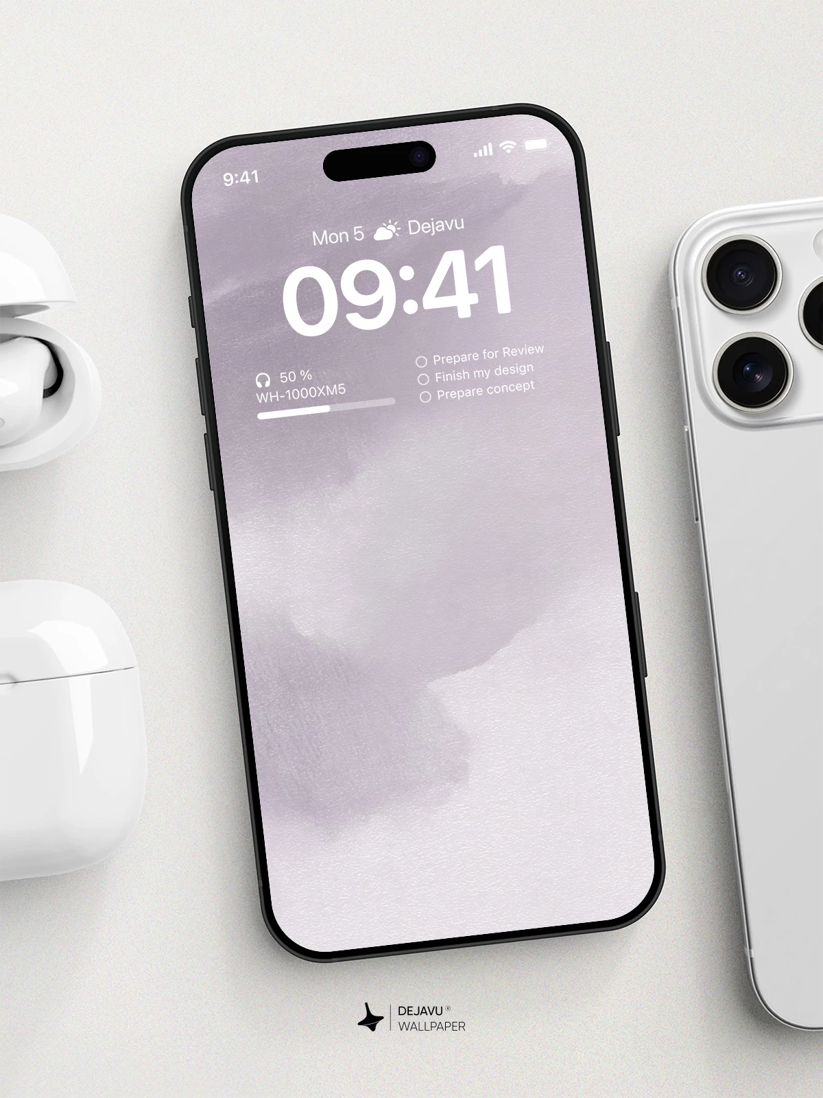 This abstract design features broad, watercolor-style strokes in muted lavender and cool gray. The soft, blended texture mimics the look of wet pigment on paper, offering a calm and sophisticated backdrop for your iPhone or Android device.