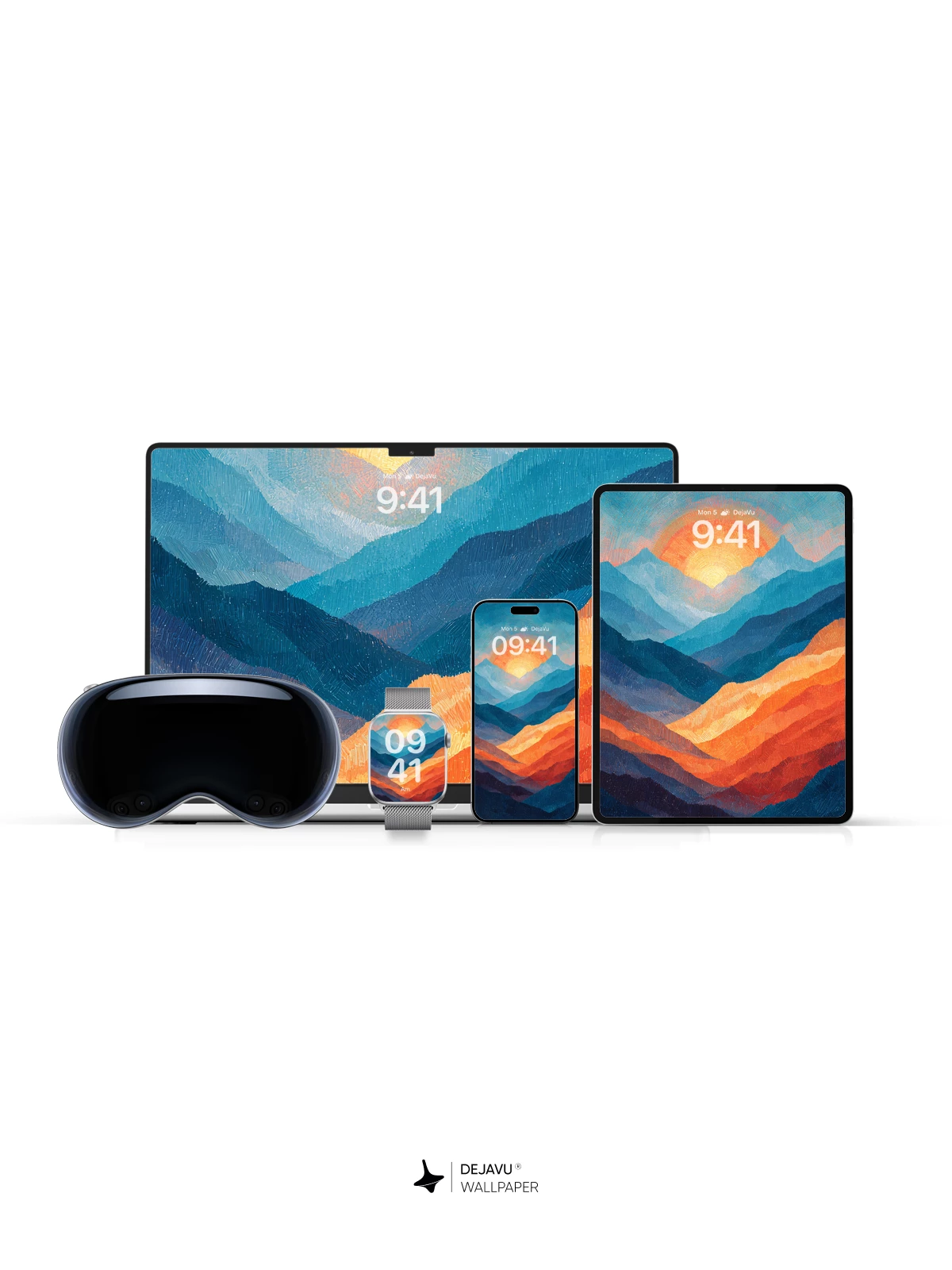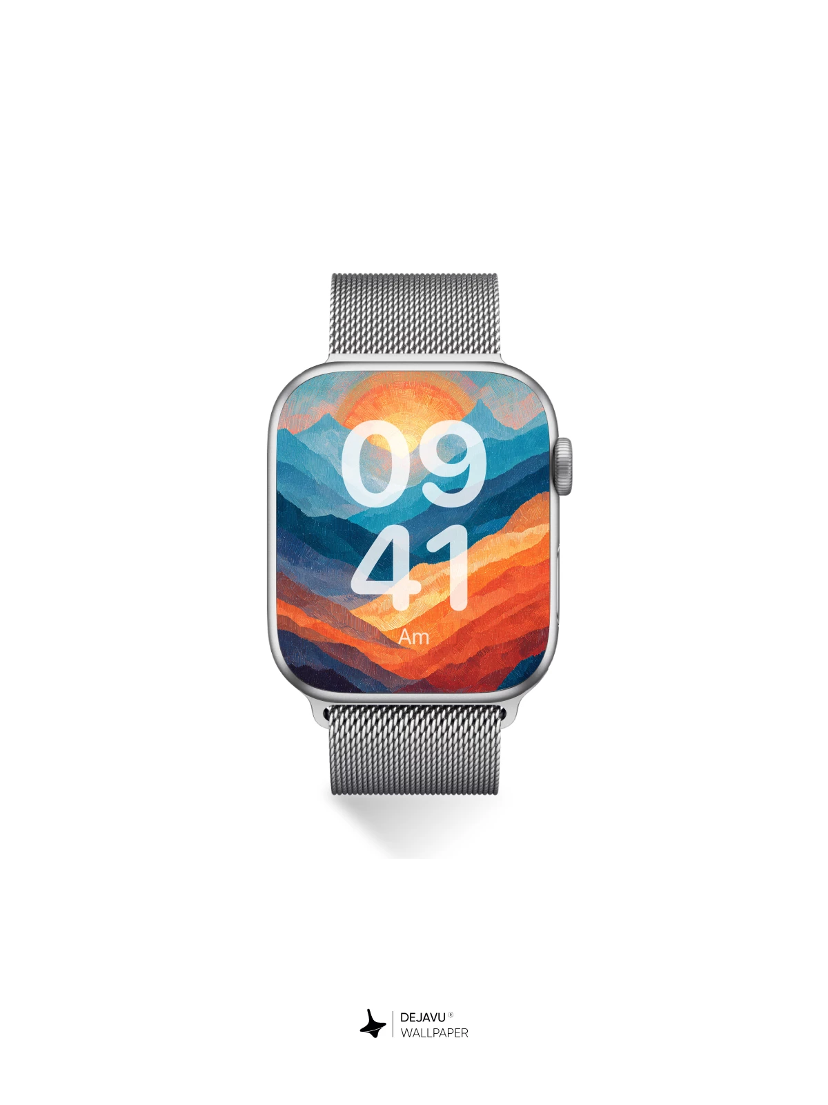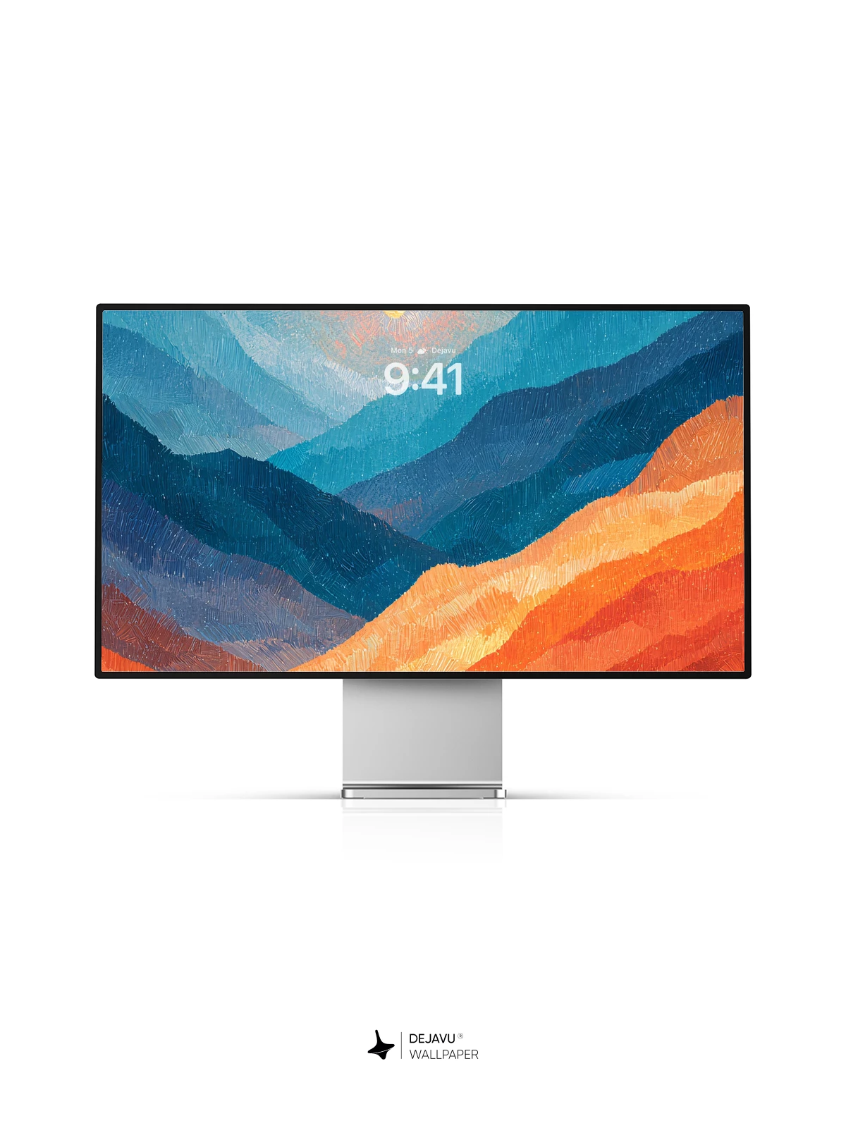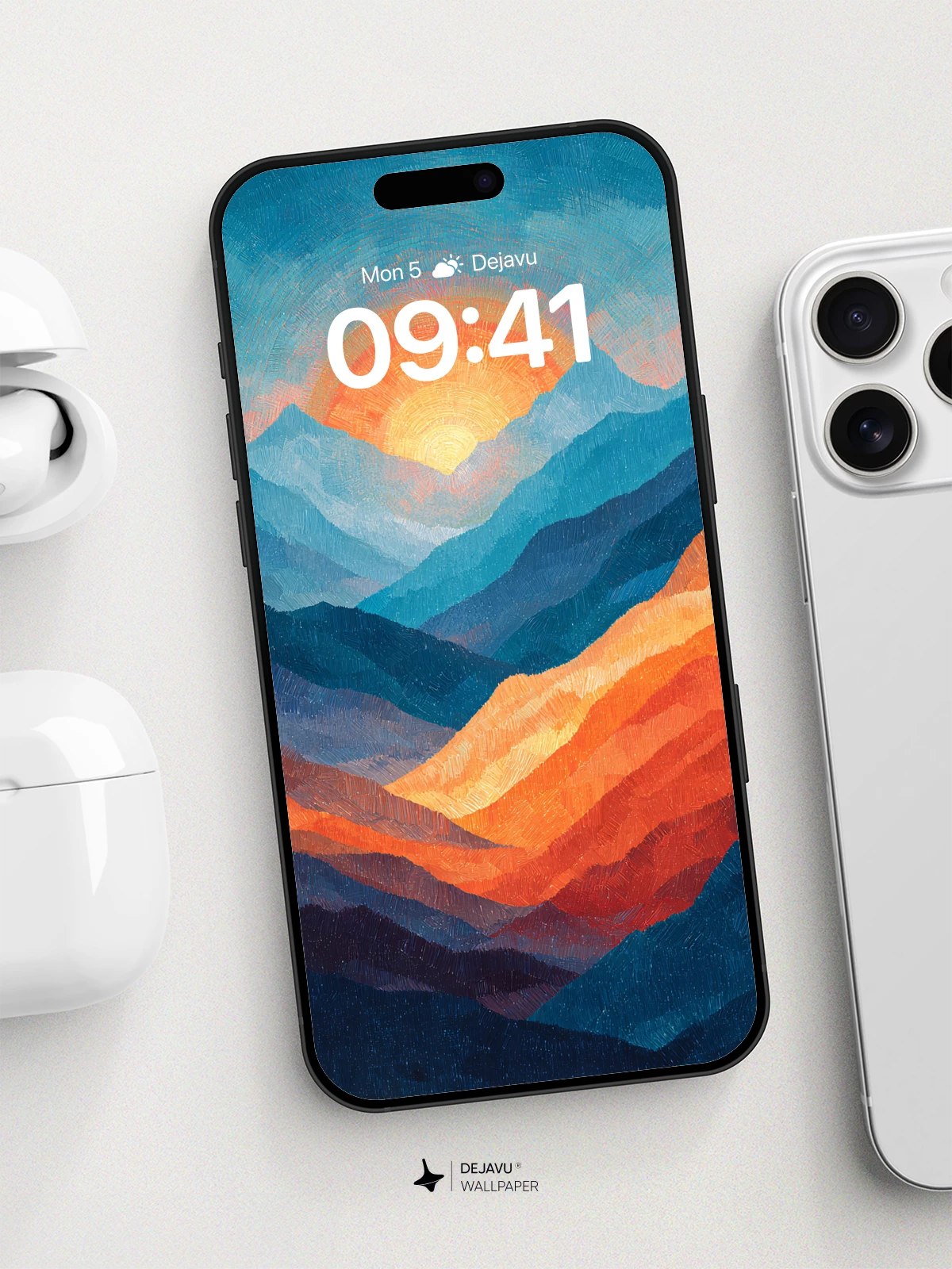 Painted ridges in cool blue and warm orange create a striking contrast beneath a glowing sun. The textured brushstrokes give this 8K wallpaper a hand-crafted feel, perfect for adding a scenic touch to your iPhone, Android, or tablet.