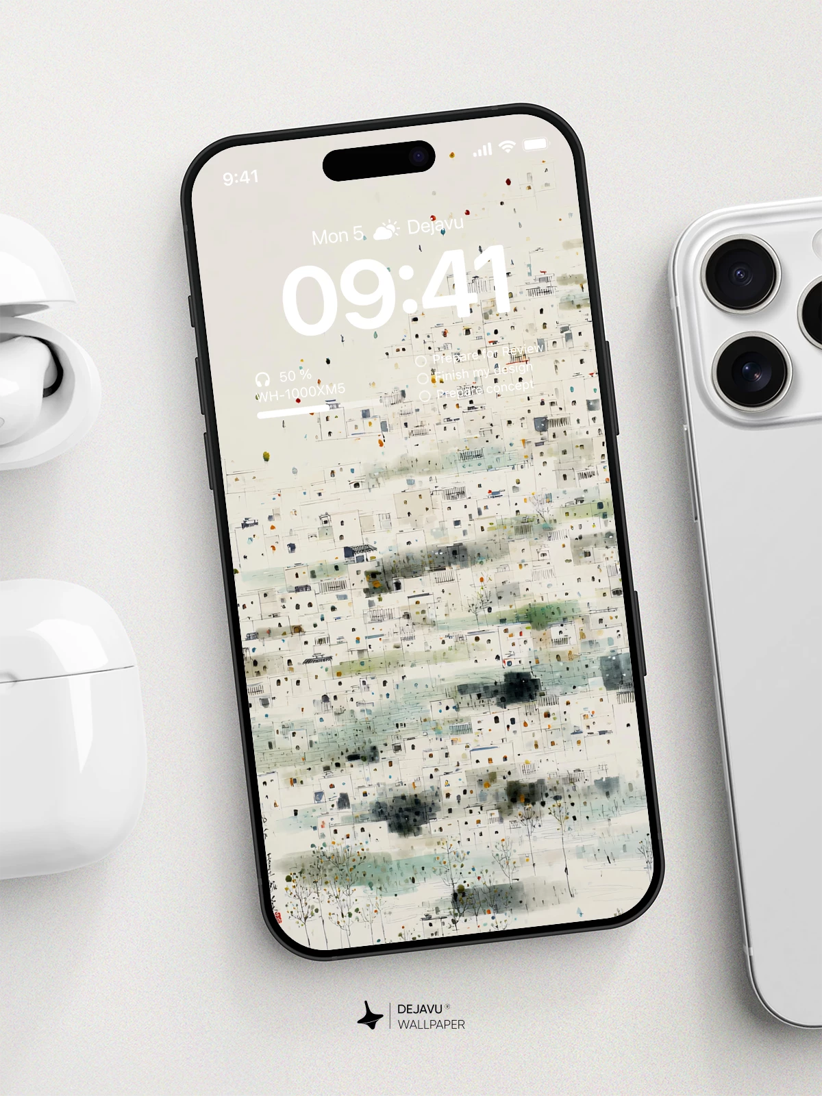 This wallpaper features a dreamy, abstract village rendered in soft, muted colors and layered textures. Its minimalist yet detailed design evokes a sense of tranquility, making it ideal for personalizing your iPhone, Android, or tablet with a subtle artistic flair.