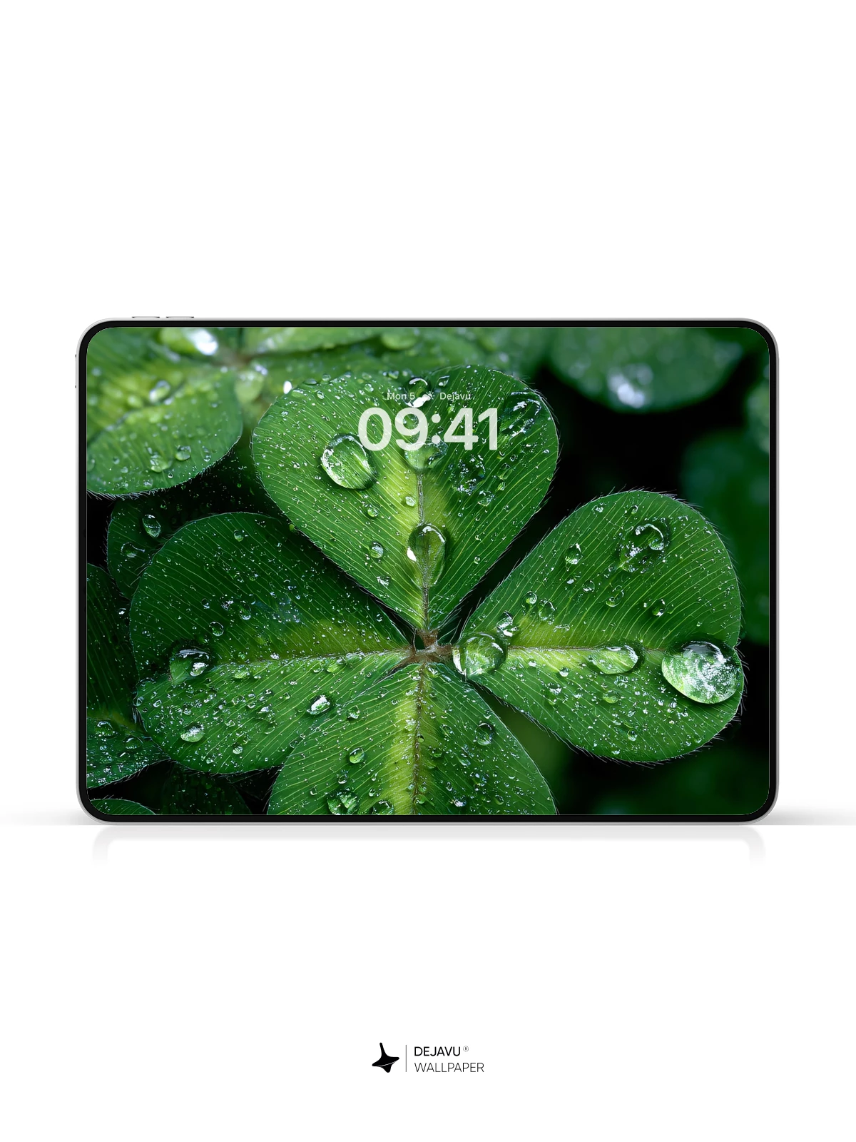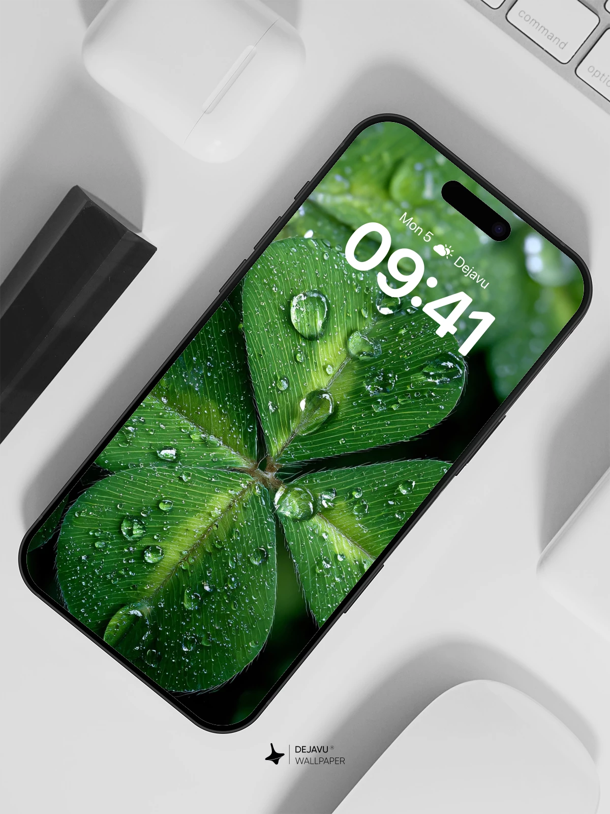 This breathtaking 8K wallpaper showcases a lush four-leaf clover adorned with sparkling dewdrops, symbolizing luck and natural serenity. Each droplet catches the light, enhancing the rich green textures and intricate leaf veins. Ideal for iPhone, Android, and tablets, this nature-inspired design brings tranquility and elegance to your device’s home screen. Perfect for those who appreciate the quiet magic of the natural world.