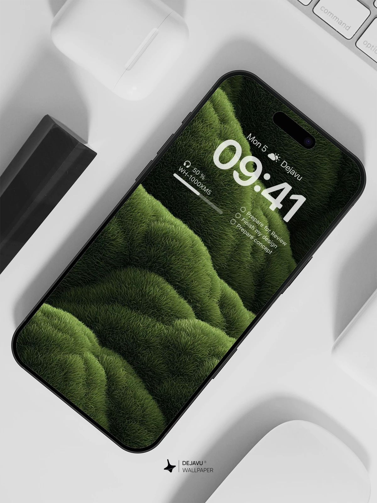 Dive into the lush, textured green terrain with this 8K wallpaper. The intricate details and vibrant colors create a mesmerizing visual experience, ideal for enhancing your iPhone or Android screen.