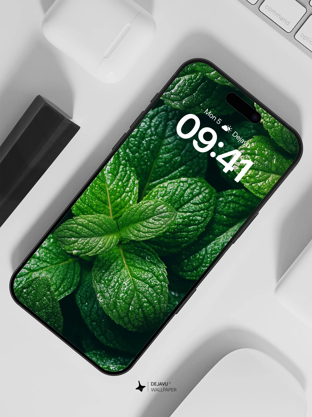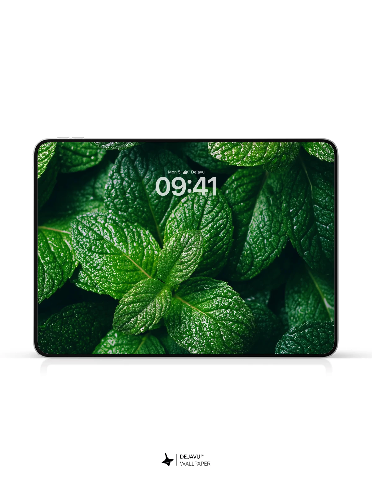 This stunning 8K wallpaper captures the intricate details of fresh mint leaves, glistening with morning dew under soft natural light. The rich greens and delicate veins evoke a sense of calm and vitality, making it an ideal background for iPhone, Android, and tablet screens. Perfect for nature lovers seeking a serene, high-resolution design that brings the essence of the garden to your device.