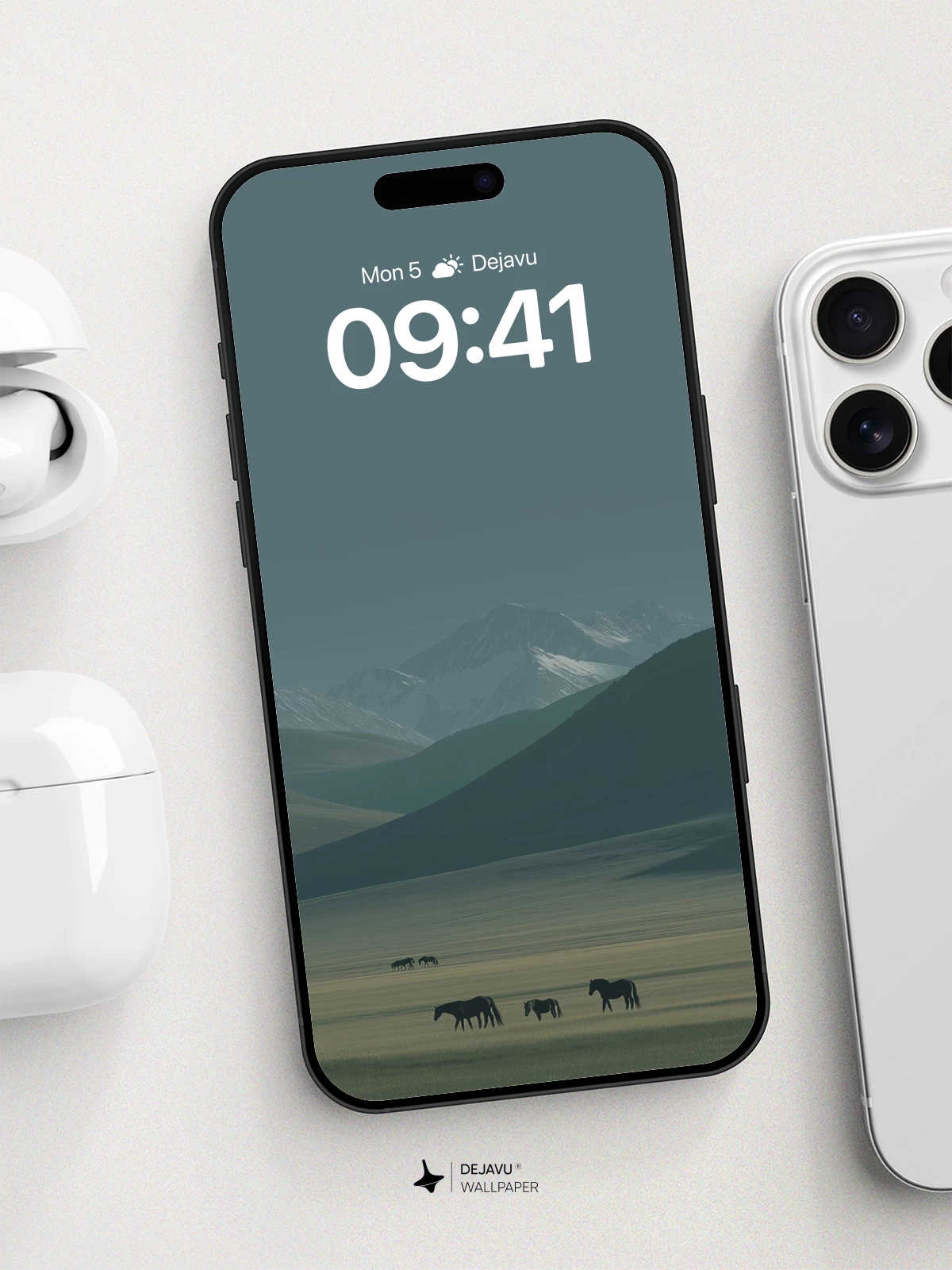 This breathtaking 8K wallpaper captures the quiet majesty of wild horses grazing in an endless plain, framed by distant mountain ranges cloaked in soft haze. The minimalist composition evokes a sense of solitude and timeless nature, ideal for iPhone, Android, or tablet screens seeking elegance and calm. With its muted tones and expansive horizon, it brings a meditative quality to your device’s display.