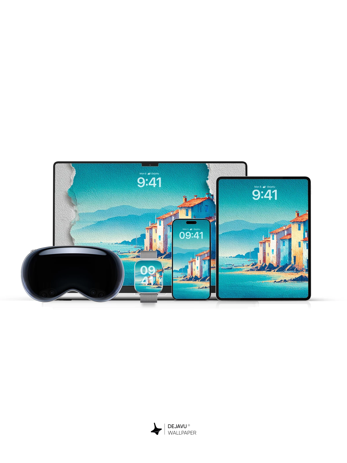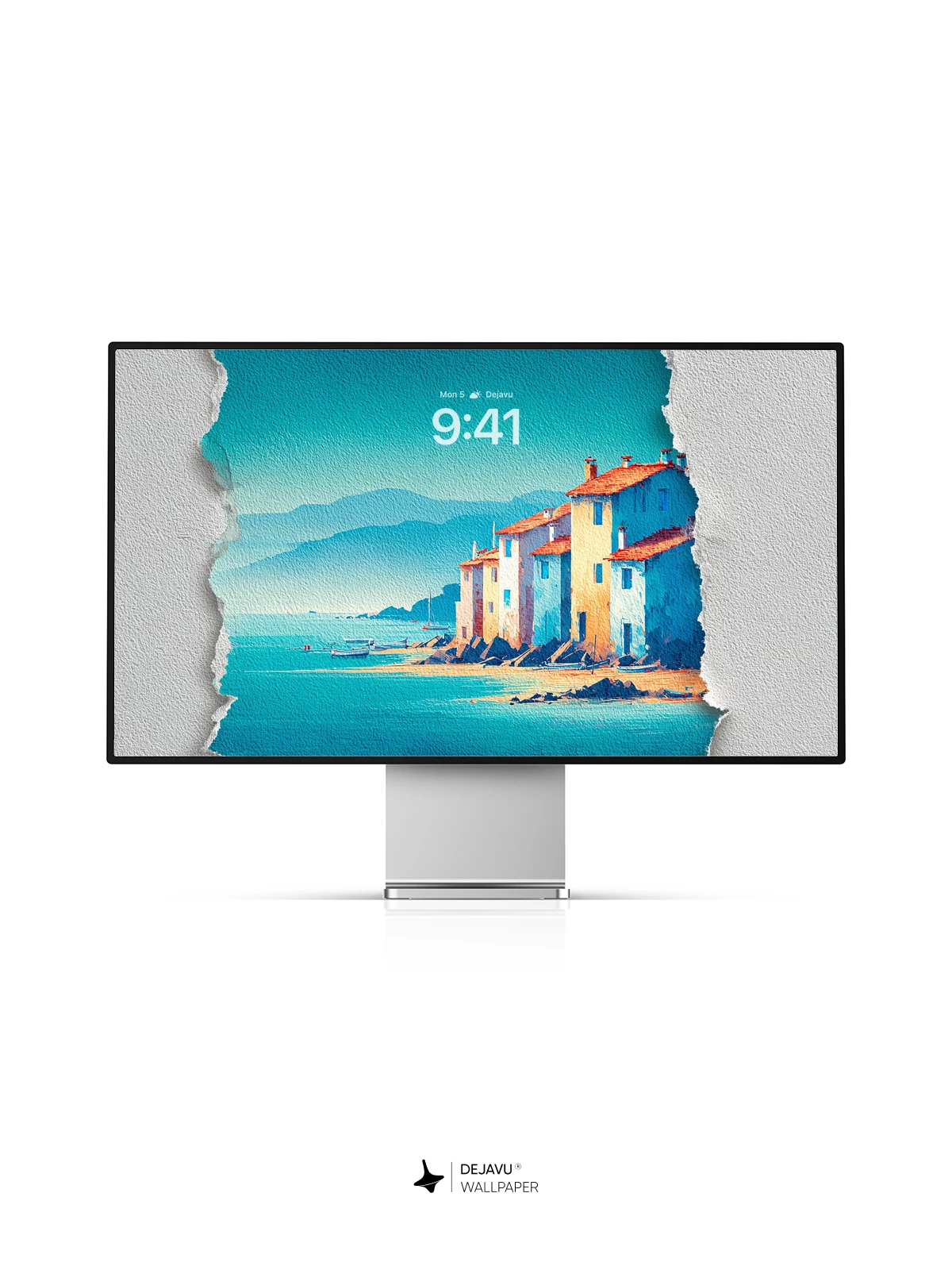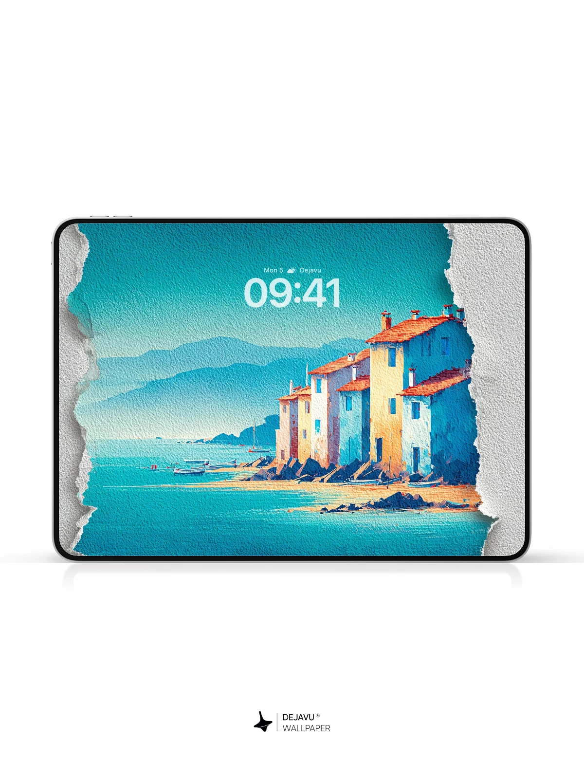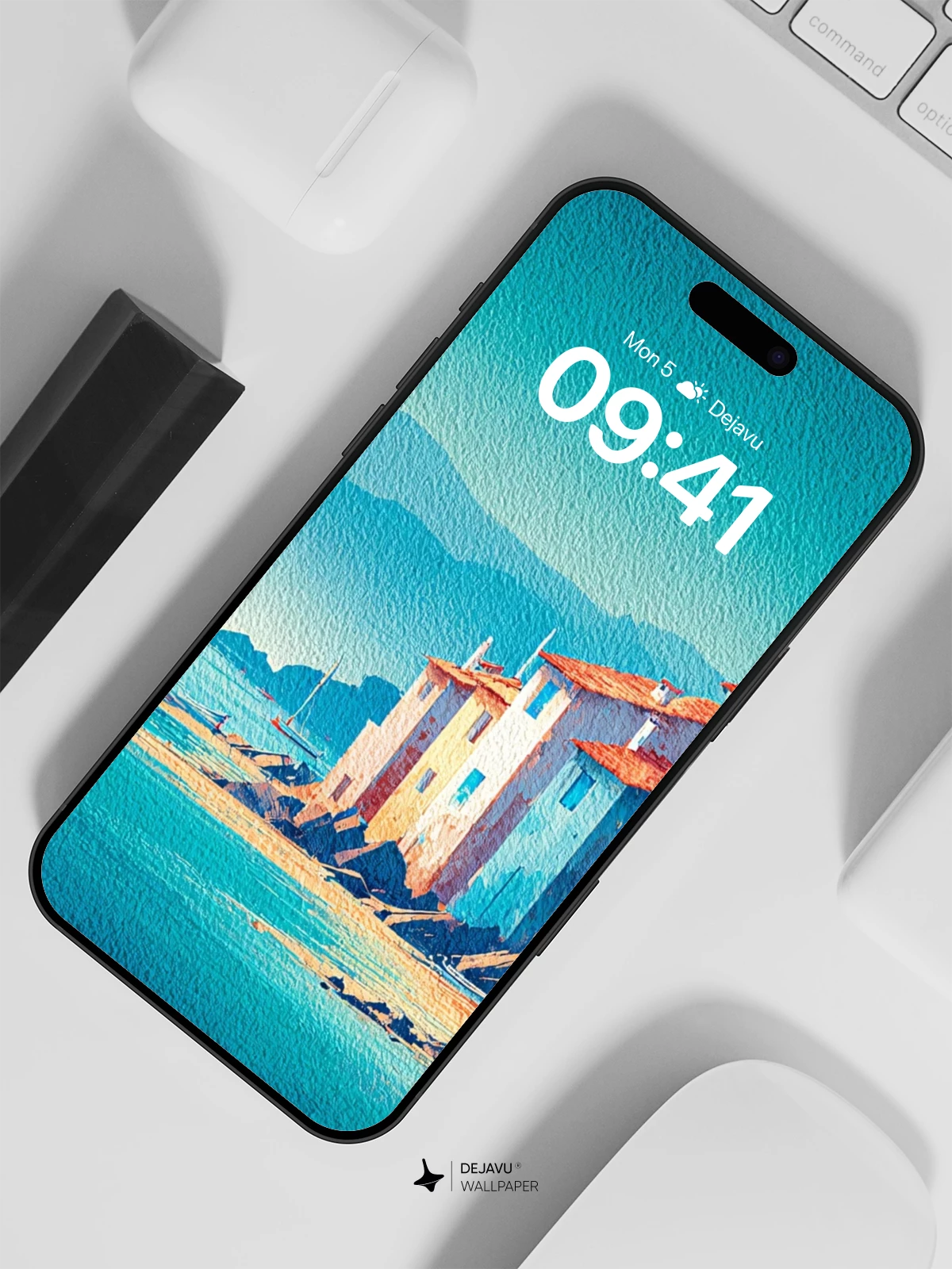 Transform your device with this stunning 8K wallpaper featuring a picturesque Mediterranean coastal village. The vibrant colors and detailed architecture evoke a sense of calm and escape, ideal for iPhone, Android, and tablet screens.