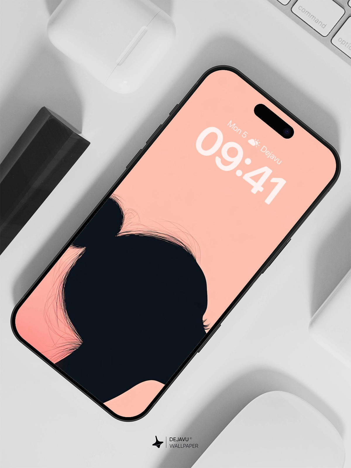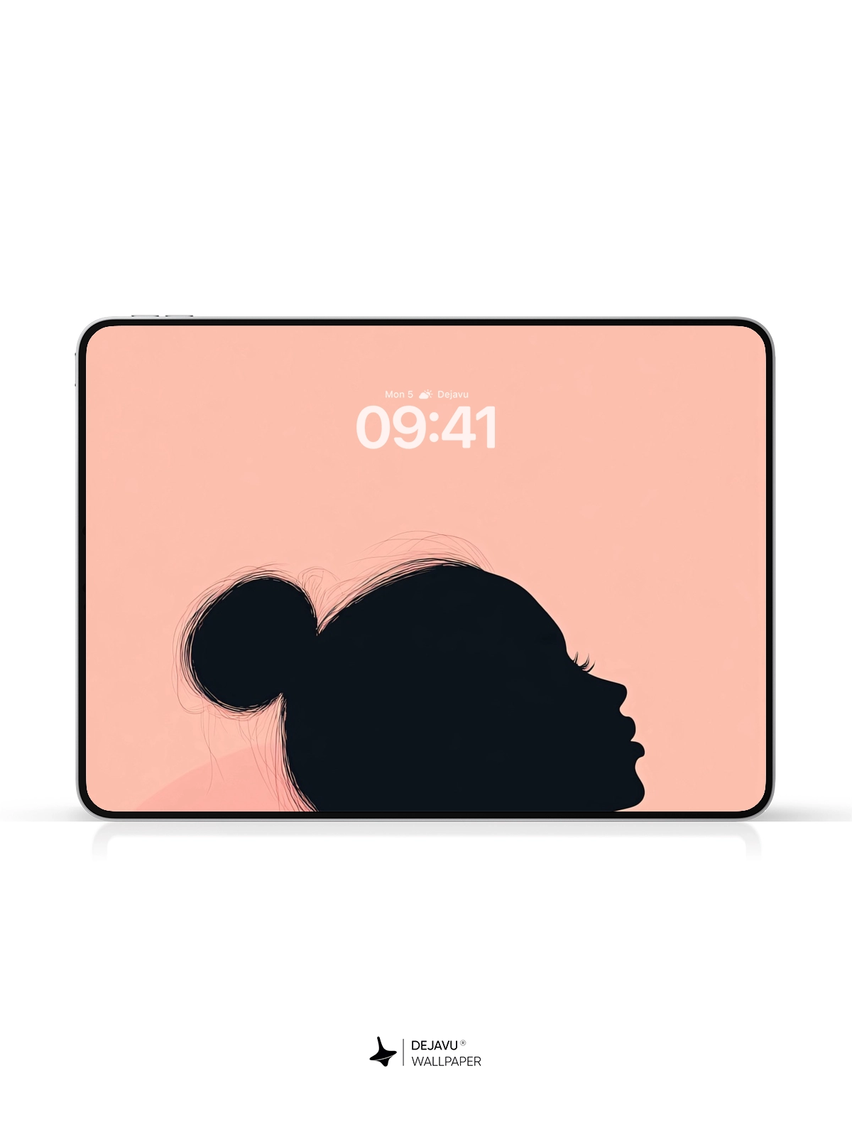 This minimal aesthetic wallpaper features a striking silhouette of a person with hair tied up, set against a soft gradient background. The design is elegant and modern, ideal for enhancing the look of your iPhone or Android device. Its simplicity and clean lines make it a perfect choice for those who appreciate minimalist art.