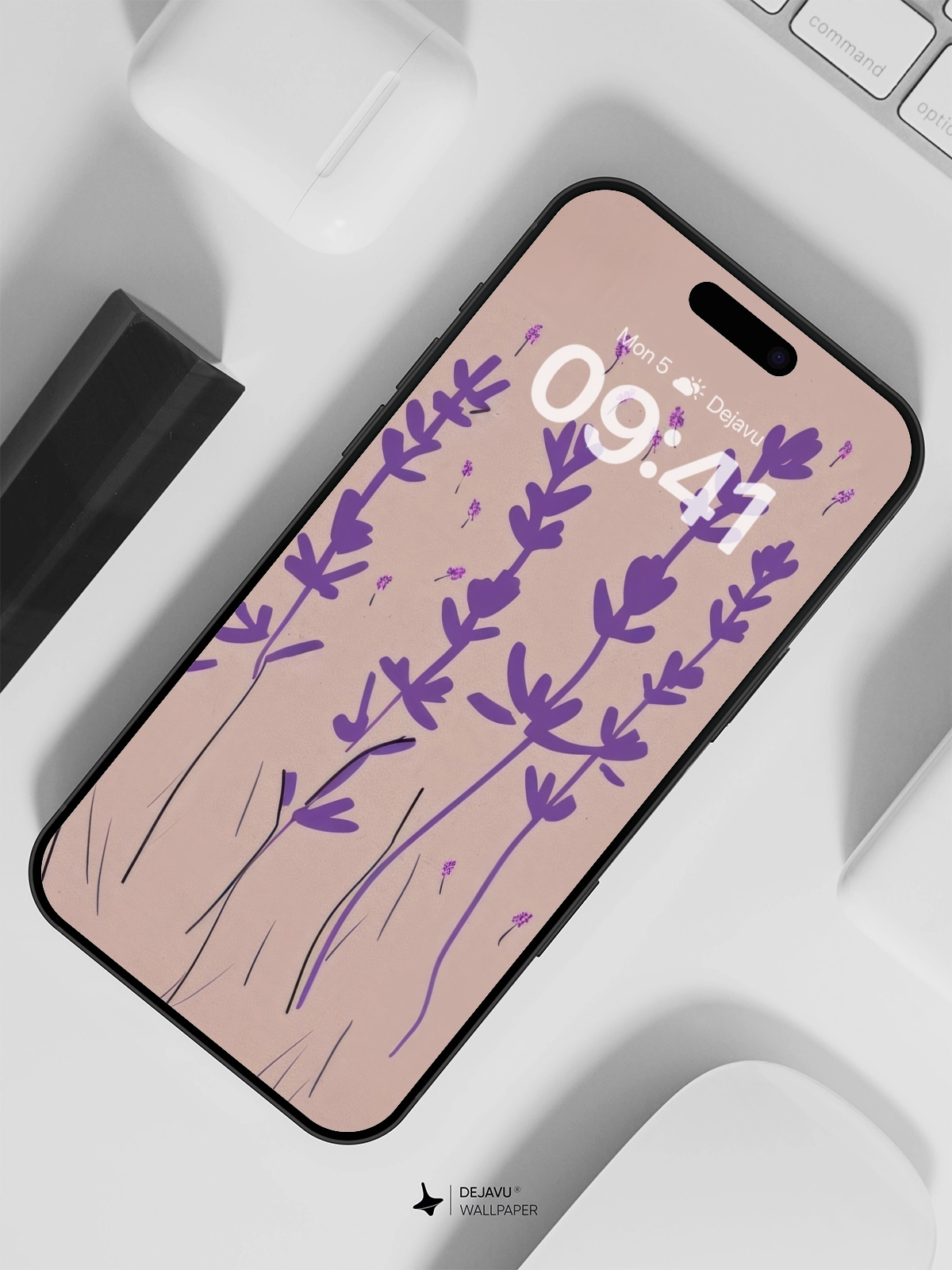 This minimalistic illustration features delicate lavender plants with a soft gradient background, creating a soothing and elegant aesthetic. Perfect for those who appreciate simplicity and nature-inspired designs. Compatible with both iPhone and Android devices, this wallpaper adds a touch of tranquility to your screen.