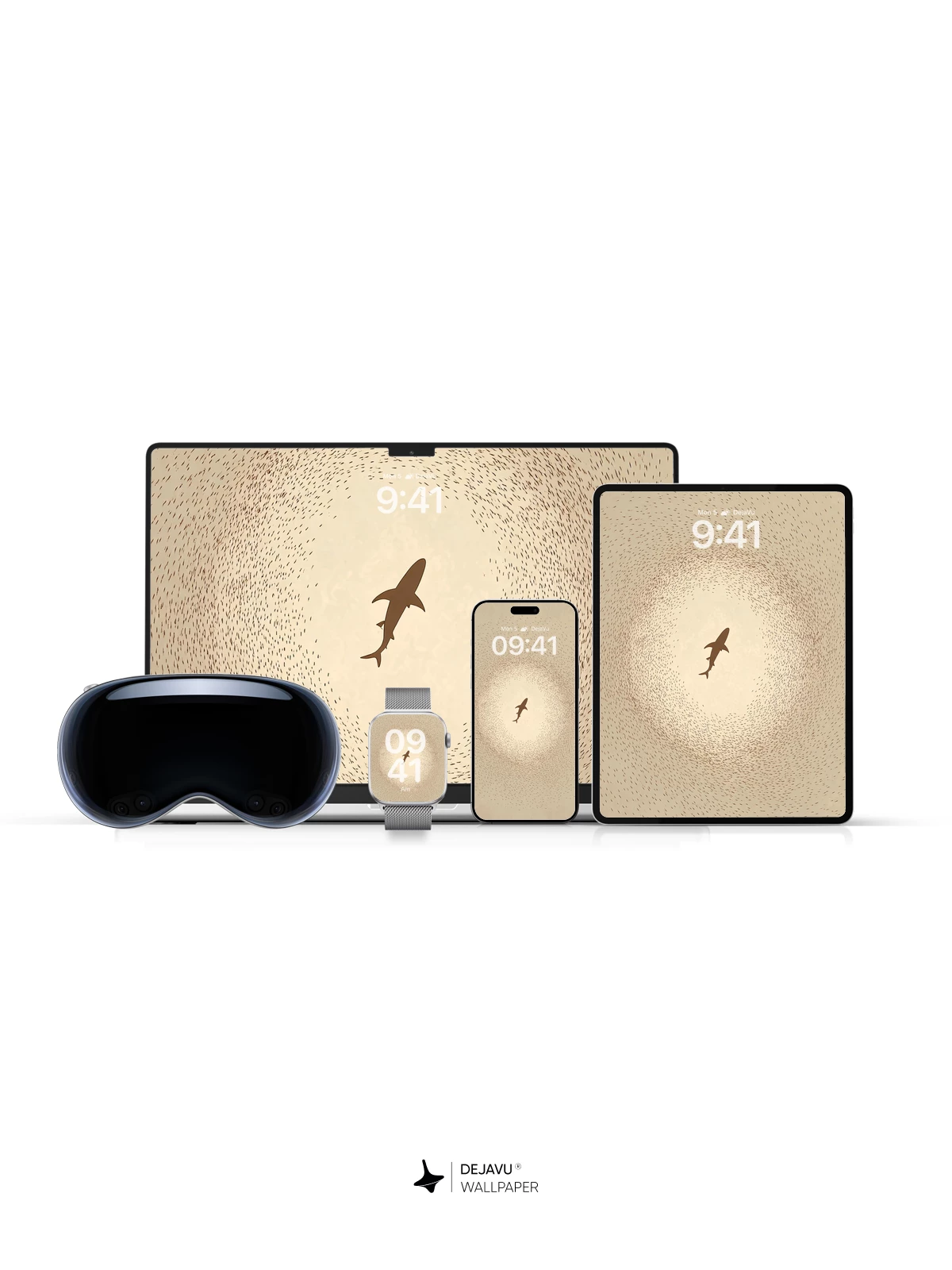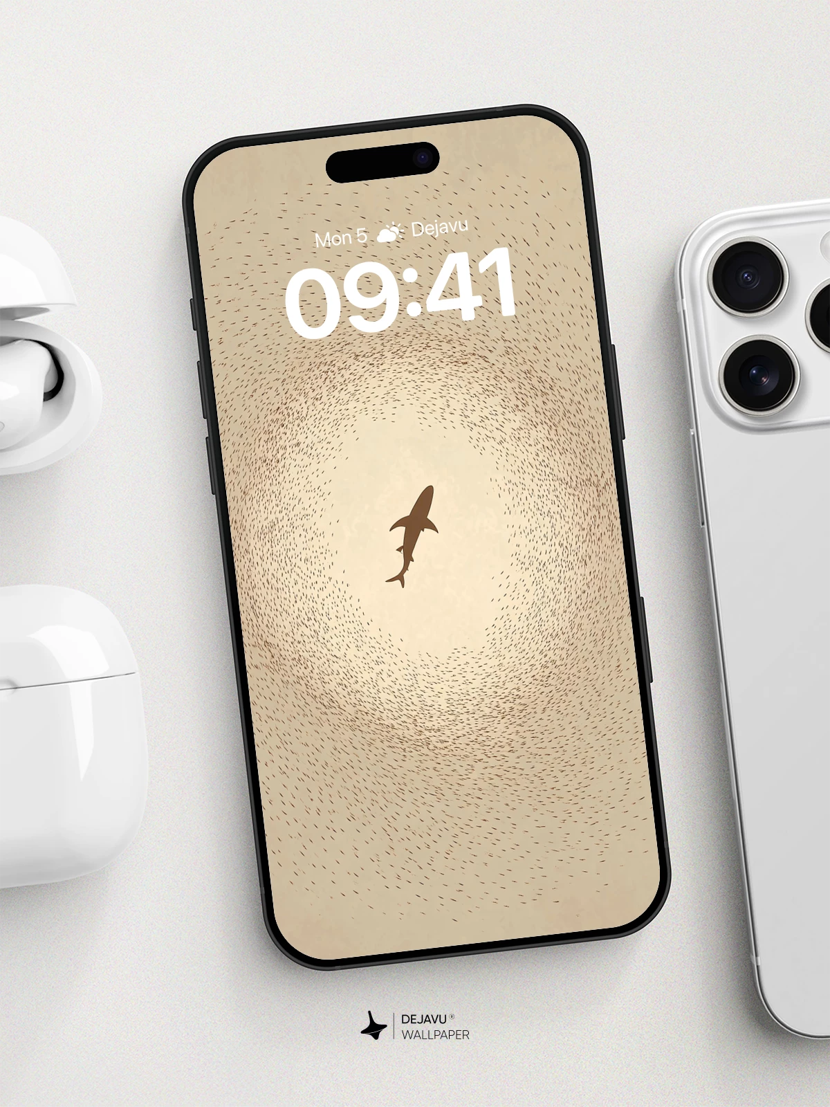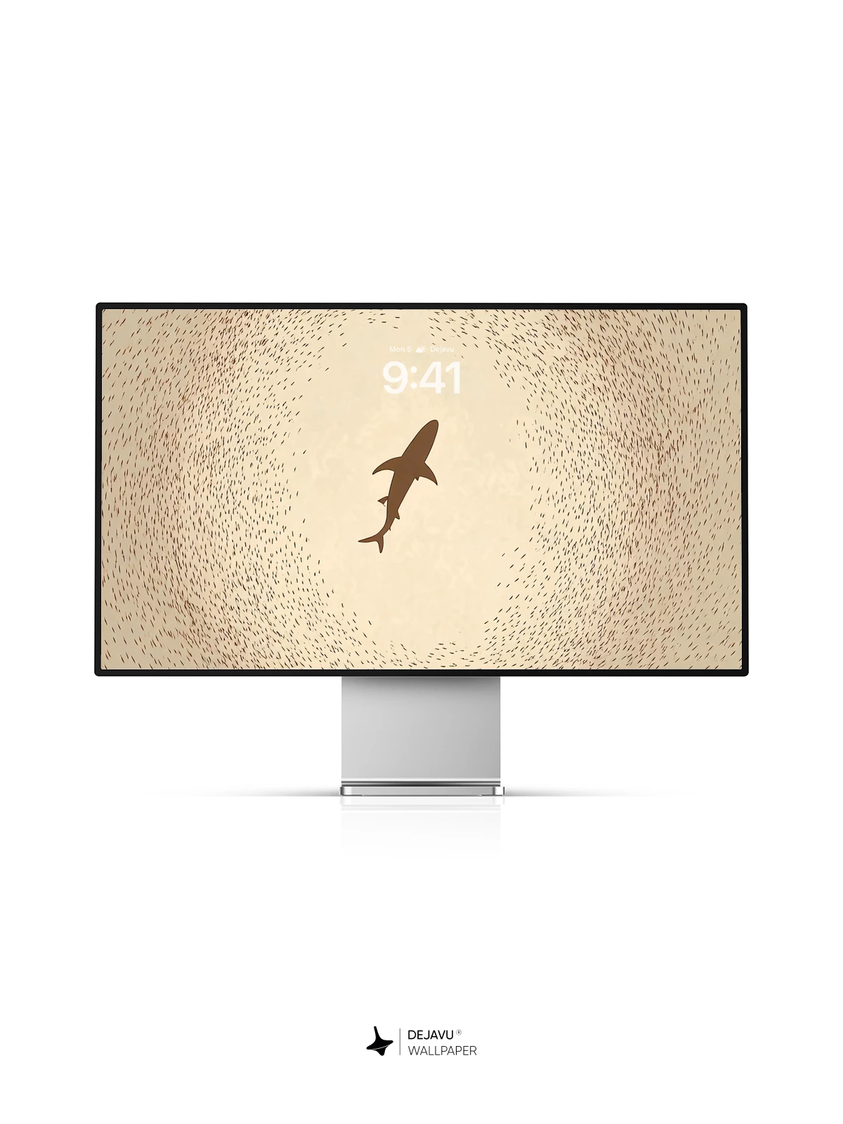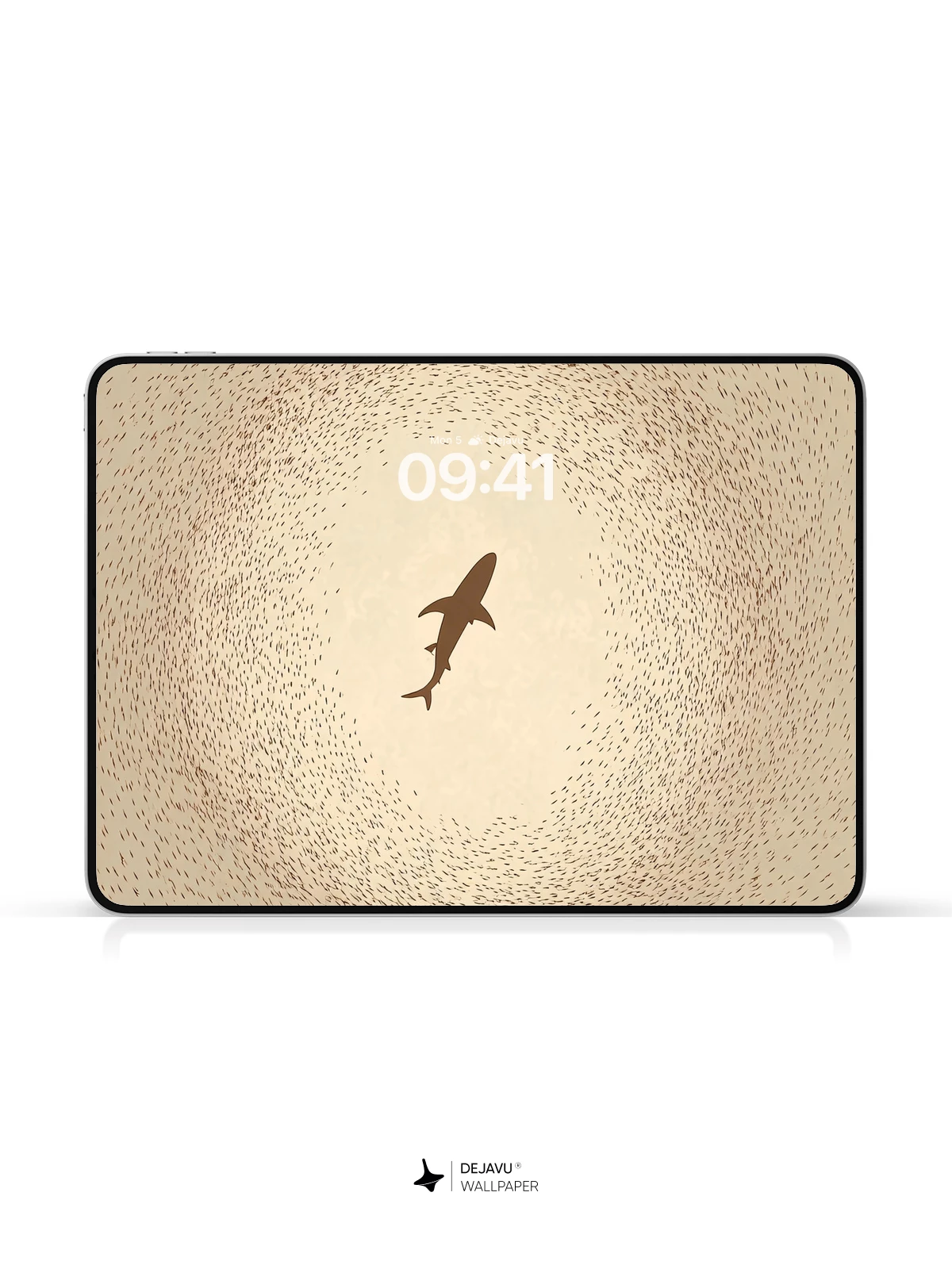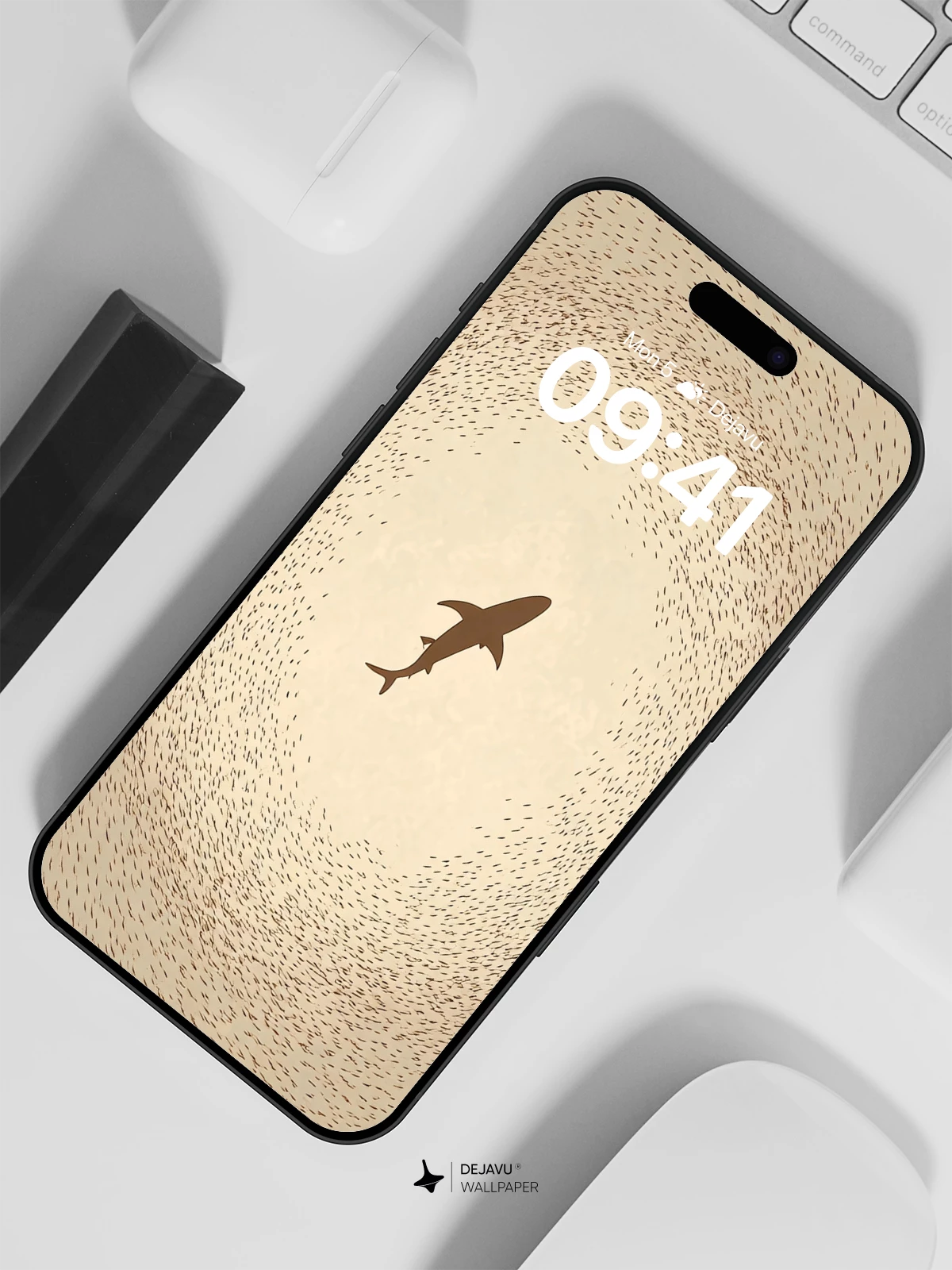 This 8K wallpaper features a subtle shark silhouette centered in a gently textured beige space. The composition is quiet and balanced, ideal for iPhone, Android, or tablet backgrounds. Its understated tone adds focus without distraction.