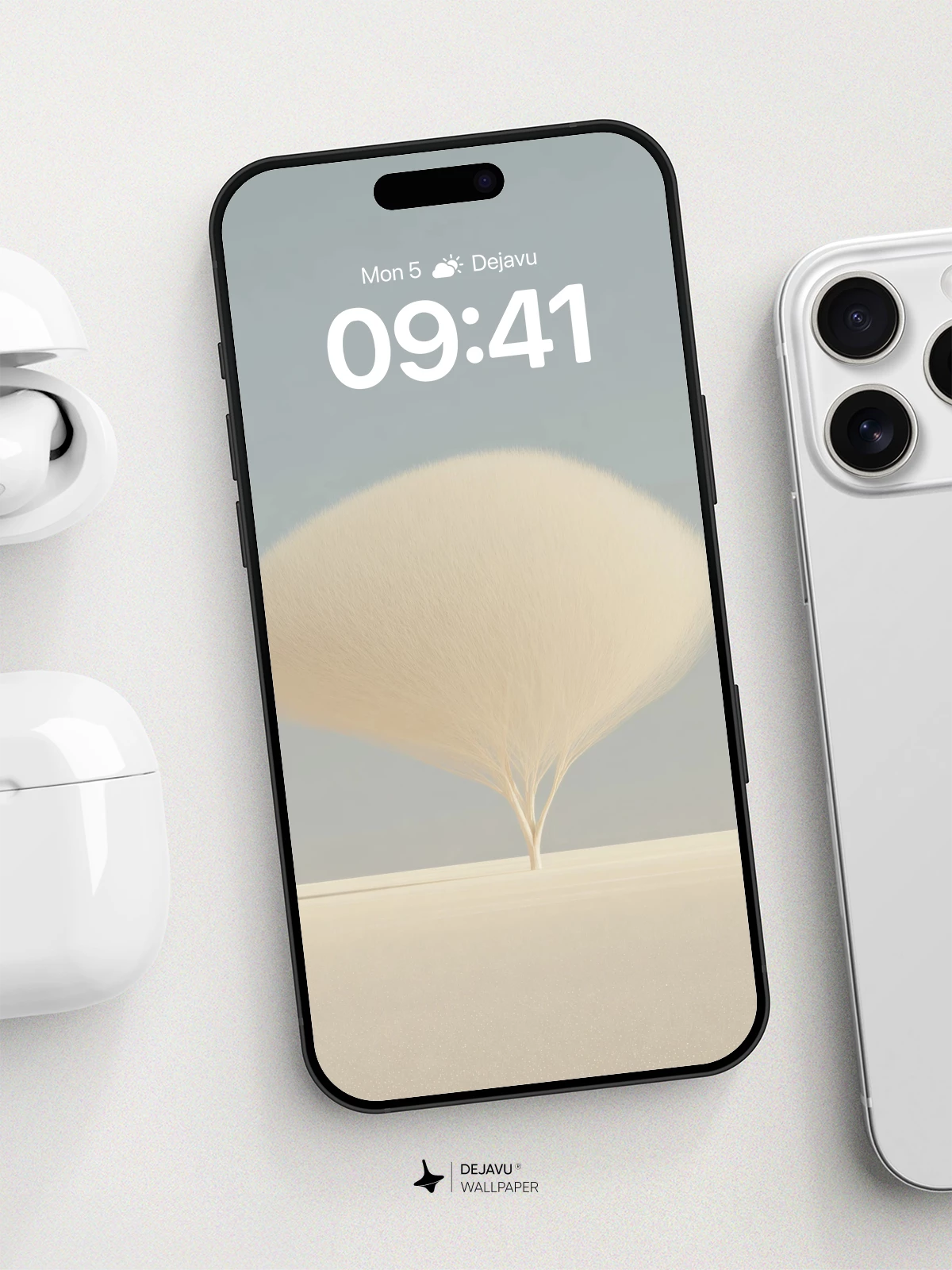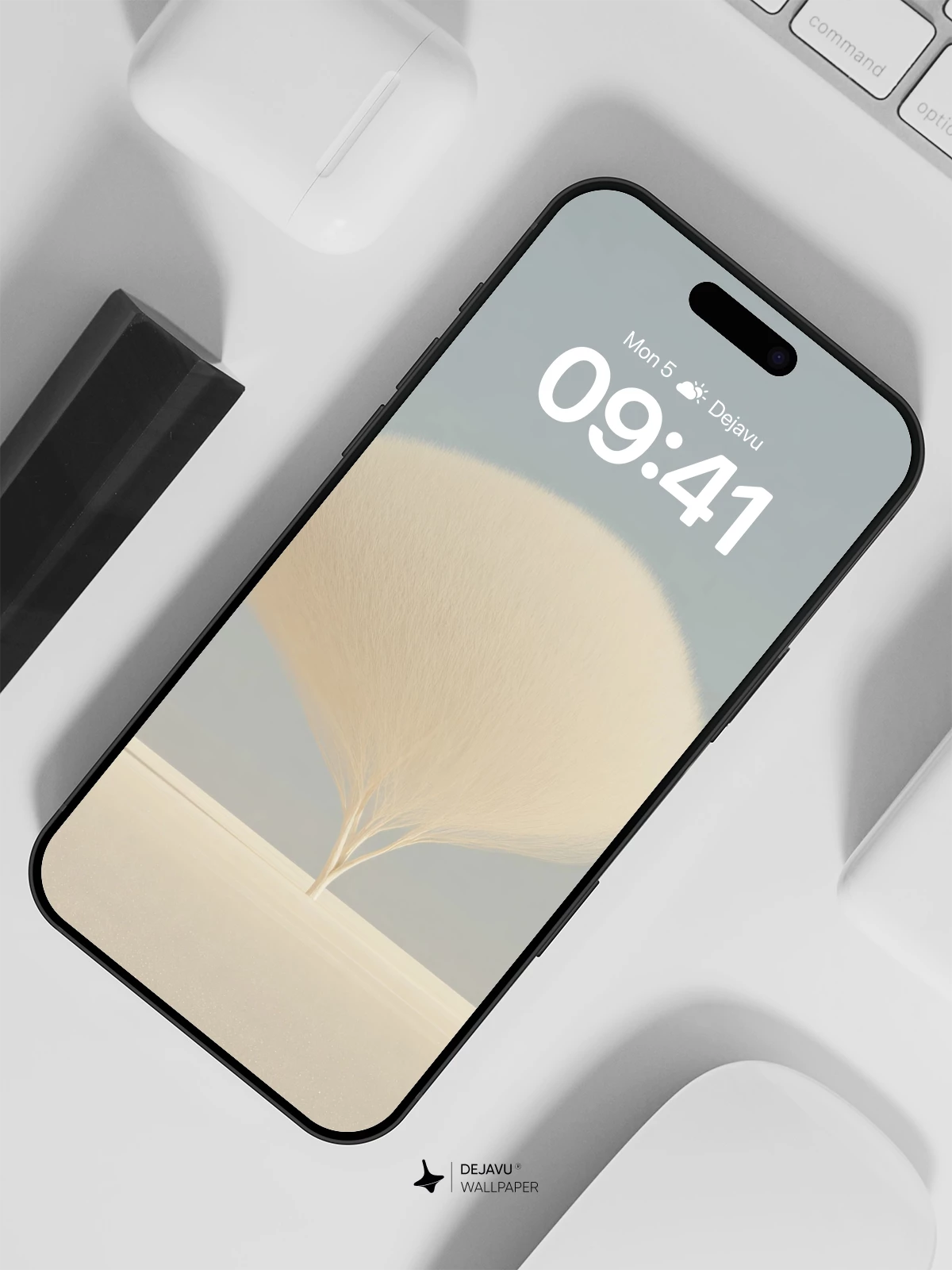 This ethereal 8K wallpaper features a delicate, cloud-like tree rising from a flat, tranquil landscape under a muted sky—evoking solitude and quiet wonder. Its minimalist composition and soft gradients make it ideal for iPhone, Android, and tablet screens, blending modern aesthetics with poetic simplicity. A visual breath of calm for your mobile device.