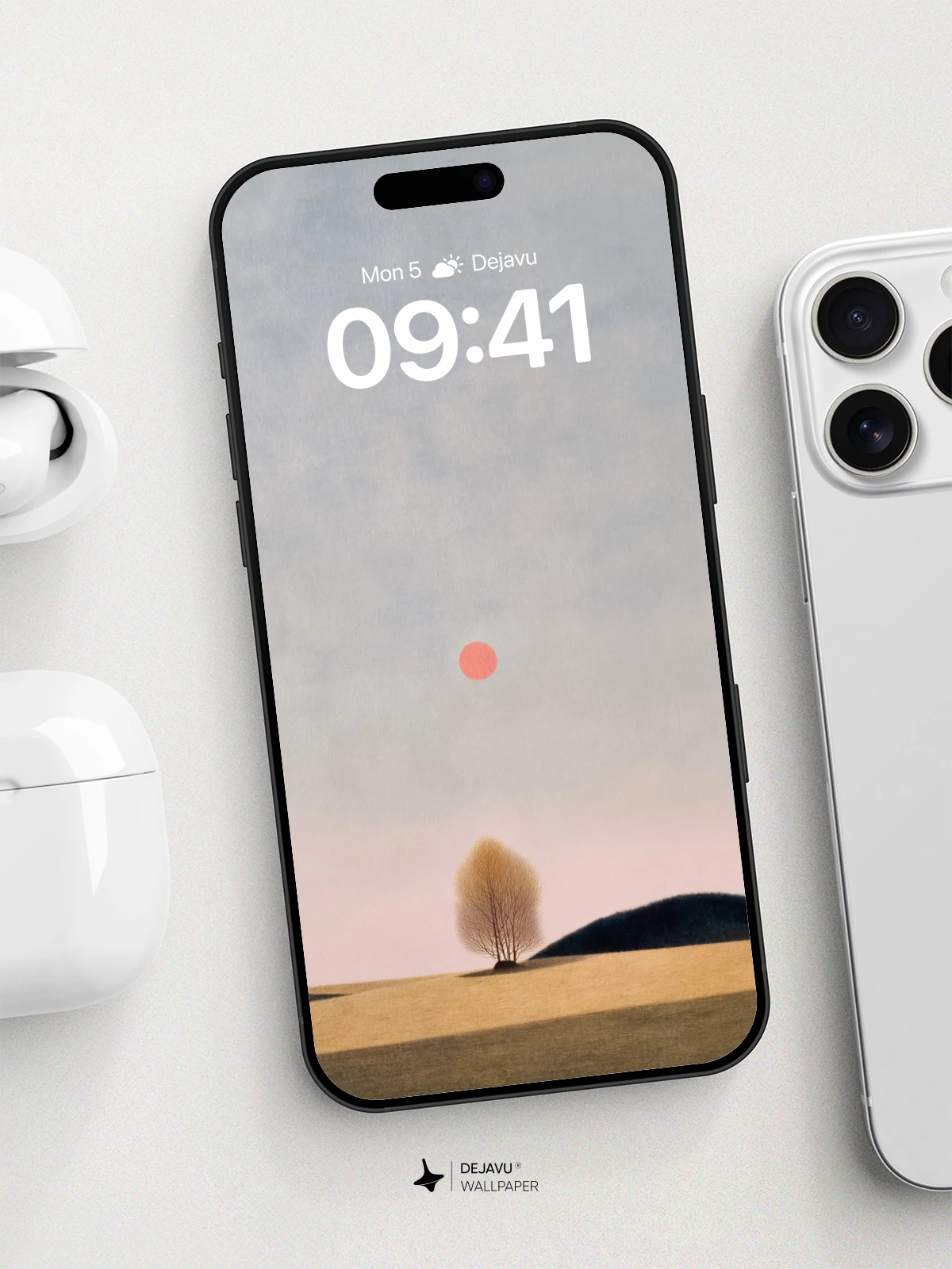 This minimalist wallpaper captures a quiet moment with a pink sun hovering above a lone tree on a soft horizon. The muted tones and clean composition evoke calm and simplicity, ideal for enhancing your iPhone, Android, or tablet screen. High-resolution 8K quality ensures every detail remains sharp.