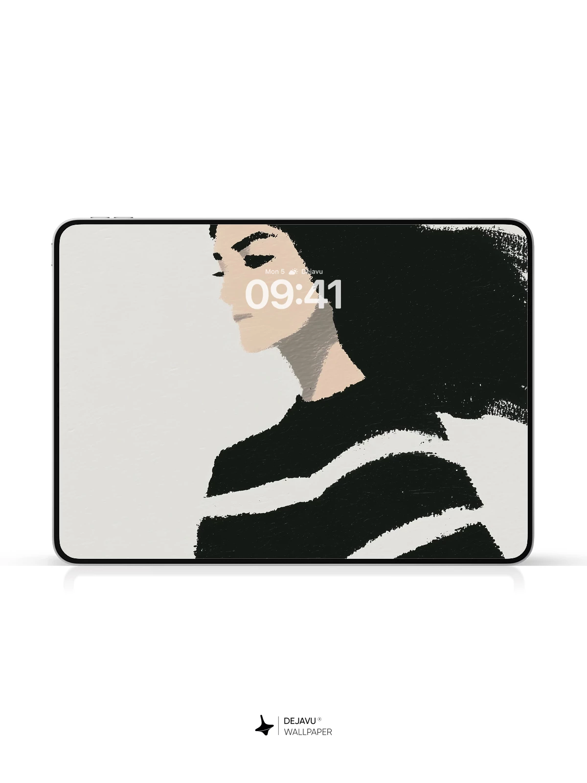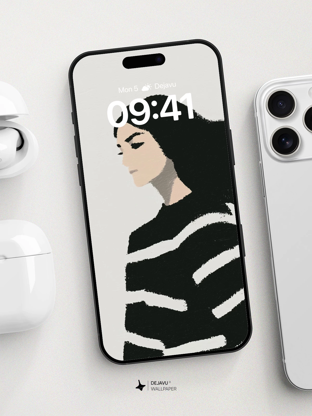 This striking minimalist illustration captures a contemplative profile with flowing dark hair and a graphic striped top, evoking quiet introspection. The high-contrast, painterly style emphasizes form and emotion through simplicity, making it ideal for modern phone wallpapers on both iPhone and Android. Its clean aesthetic and emotional depth bring timeless elegance to any device screen.