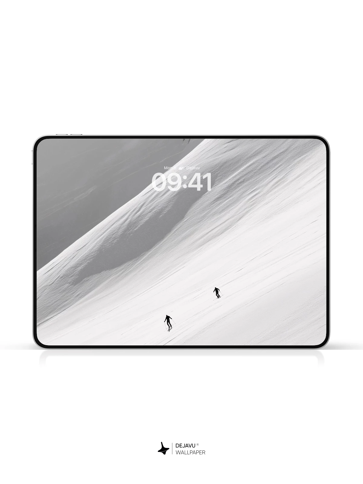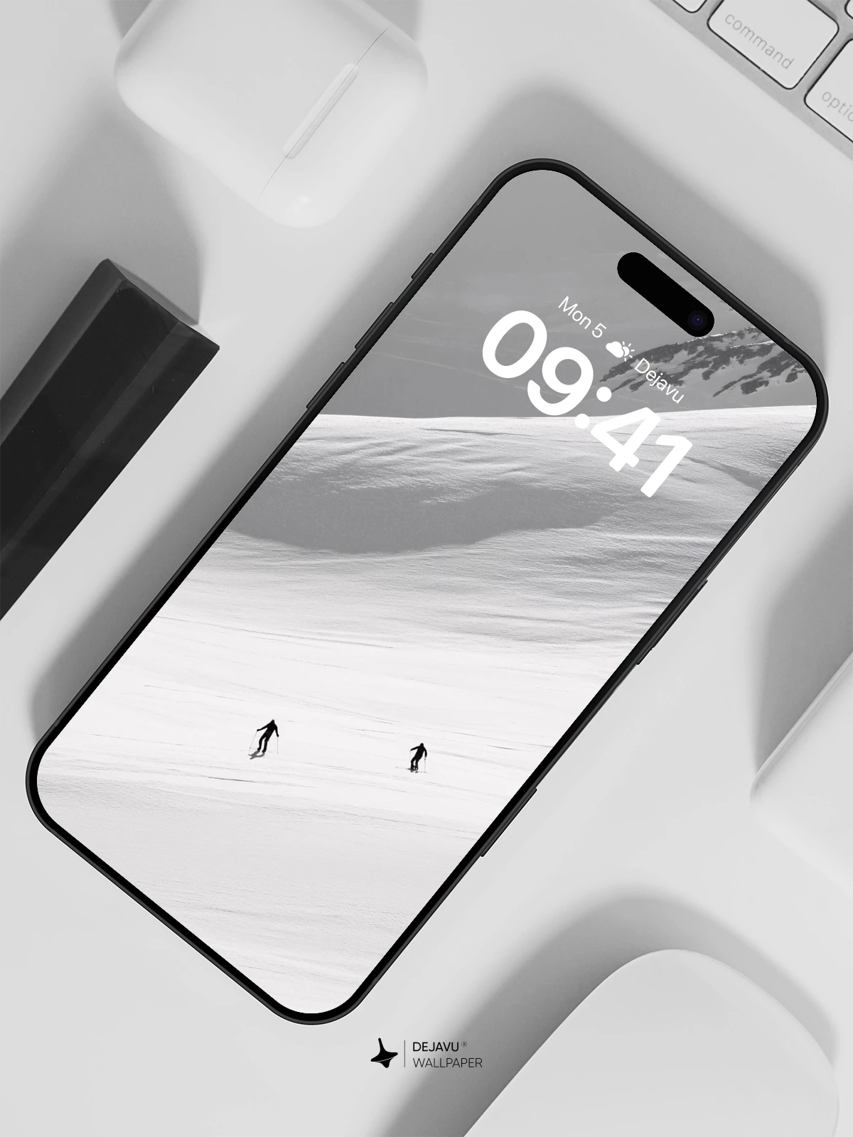 This breathtaking 8K wallpaper captures the quiet solitude of two skiers descending a pristine snow-covered mountain under a soft gray sky. The minimalist composition emphasizes scale, contrast, and motion, evoking a sense of peaceful isolation and timeless adventure. Ideal for iPhone, Android, or tablet screens, this high-resolution image delivers elegance and clarity, making it a perfect choice for those who appreciate clean, nature-inspired design with emotional depth.
