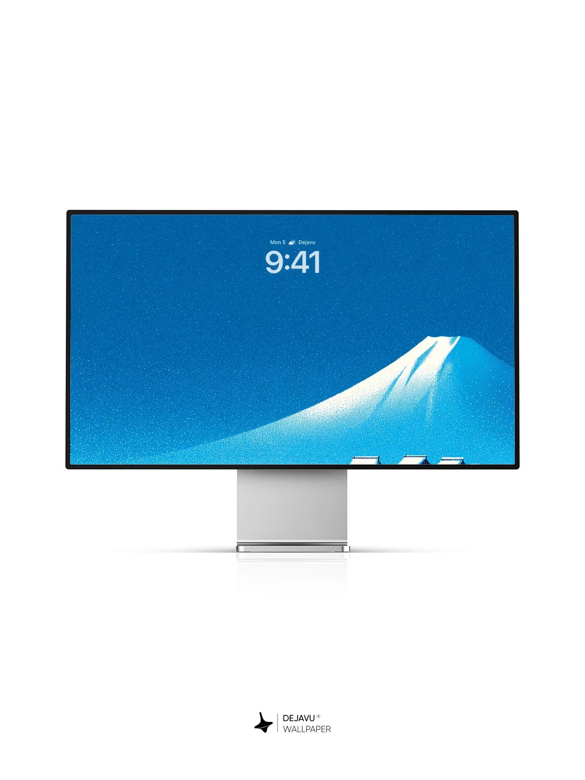 This minimalist digital artwork captures the timeless beauty of Mount Fuji blanketed in snow, set against a deep azure sky. Inspired by the tranquil aesthetics of Japanese ukiyo-e prints, the scene blends simplicity with profound serenity. Tiny silhouettes of people and traditional red-roofed structures add scale and cultural depth to the expansive snowfield. Ideal as an 8K wallpaper for iPhone, Android, or tablets, this design evokes peace and contemplation—perfect for those who appreciate clean lines, nature, and quiet elegance.