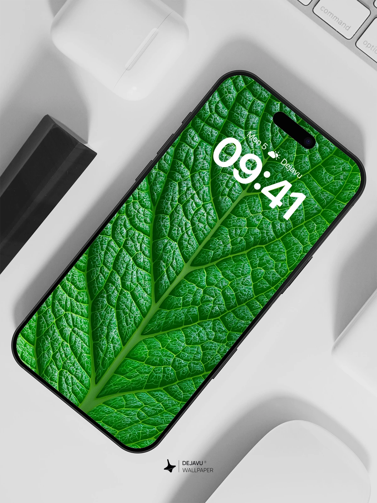 This stunning macro image captures the intricate veins and lush green surface of a mint leaf in breathtaking detail, set against a soft teal backdrop that enhances its natural vibrancy. Ideal for nature lovers and design enthusiasts, this 8K wallpaper brings a touch of serene botanical beauty to your iPhone, Android, or tablet screen. The crisp textures and balanced composition evoke a sense of calm and connection to nature, making it a perfect daily visual companion.