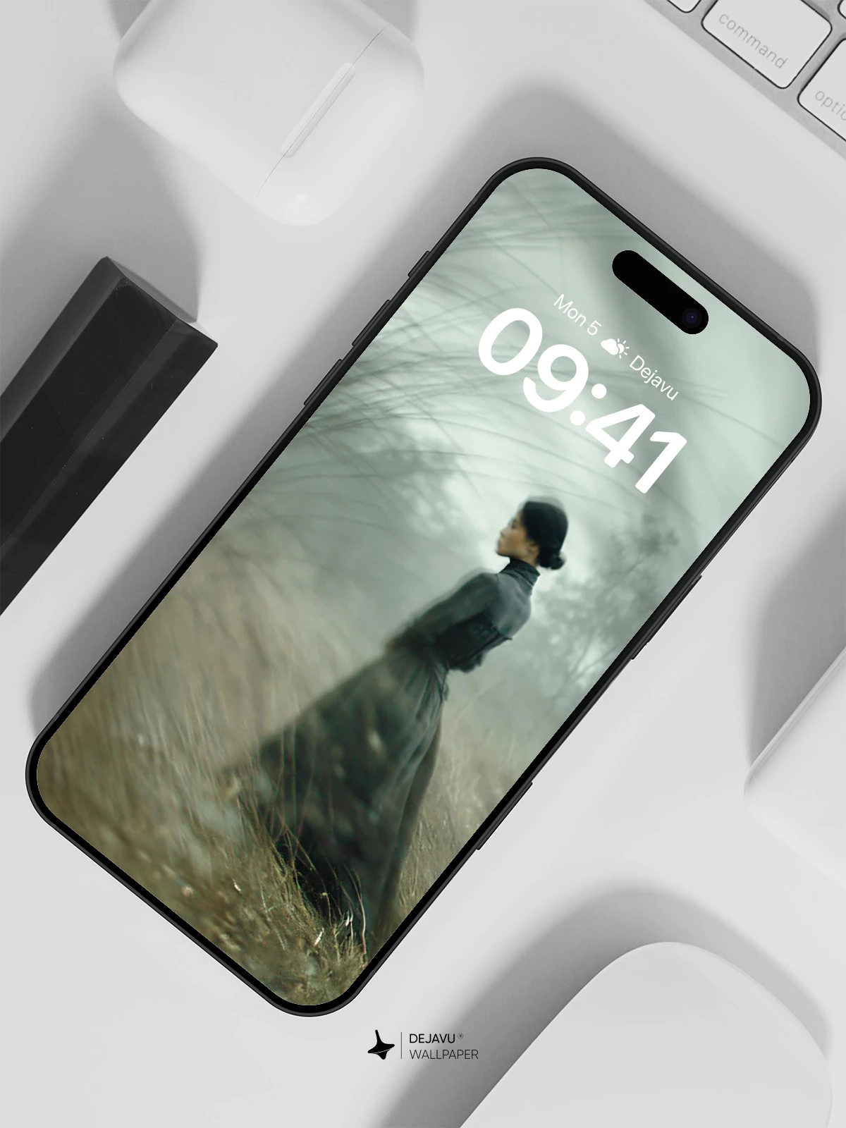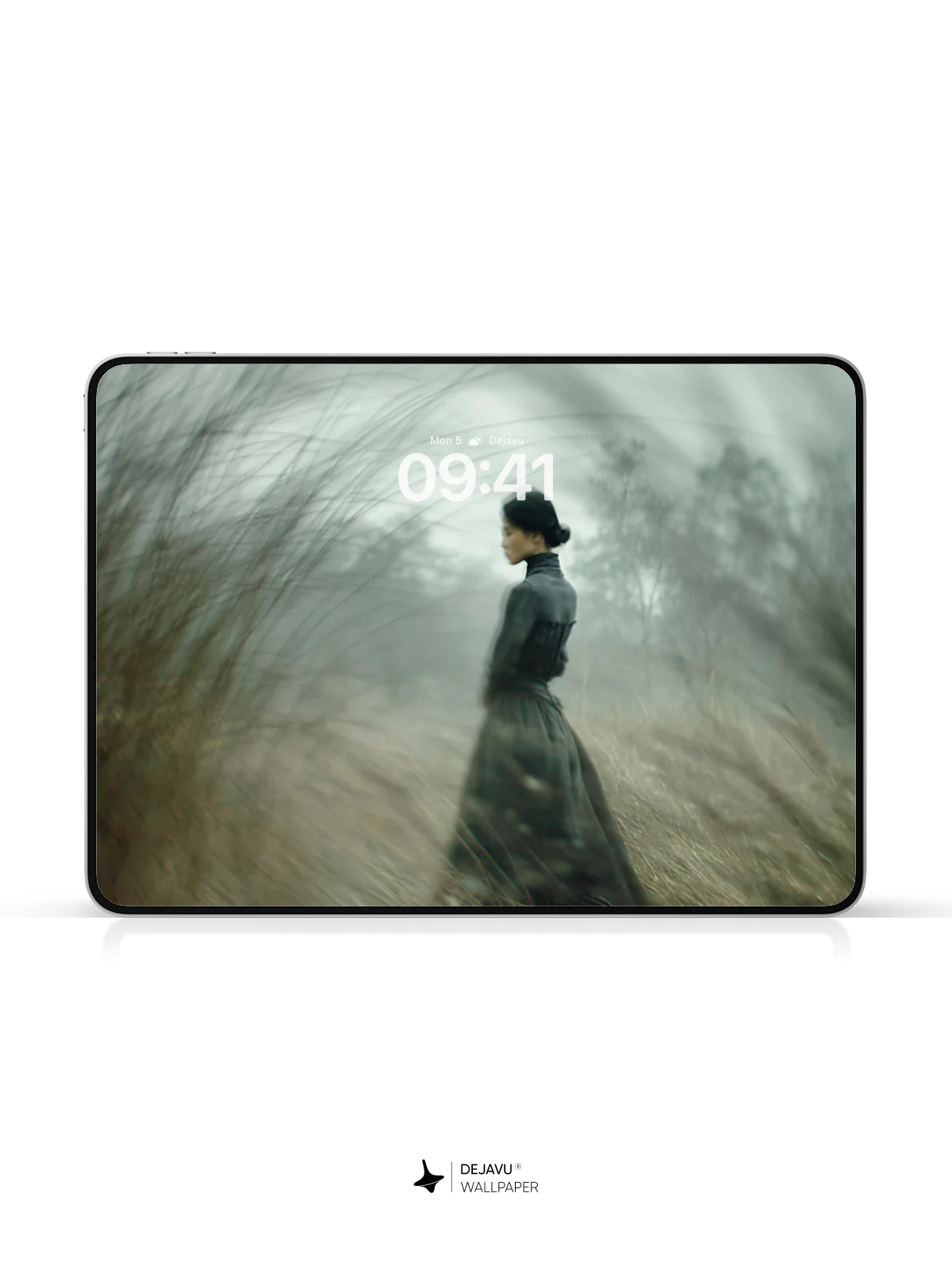 Ethereal and evocative, this 8K wallpaper portrays a lone woman in a dark gown standing amidst a sea of wind-swept grass under a hazy sky. The muted tones and soft focus create a dreamlike sense of isolation and introspection, inviting viewers into a quiet moment suspended between reality and memory. Inspired by the poetic realism of early 20th-century photography, it blends natural beauty with emotional depth, making it ideal for iPhone, Android, or tablet backgrounds that elevate your device with artful serenity.
