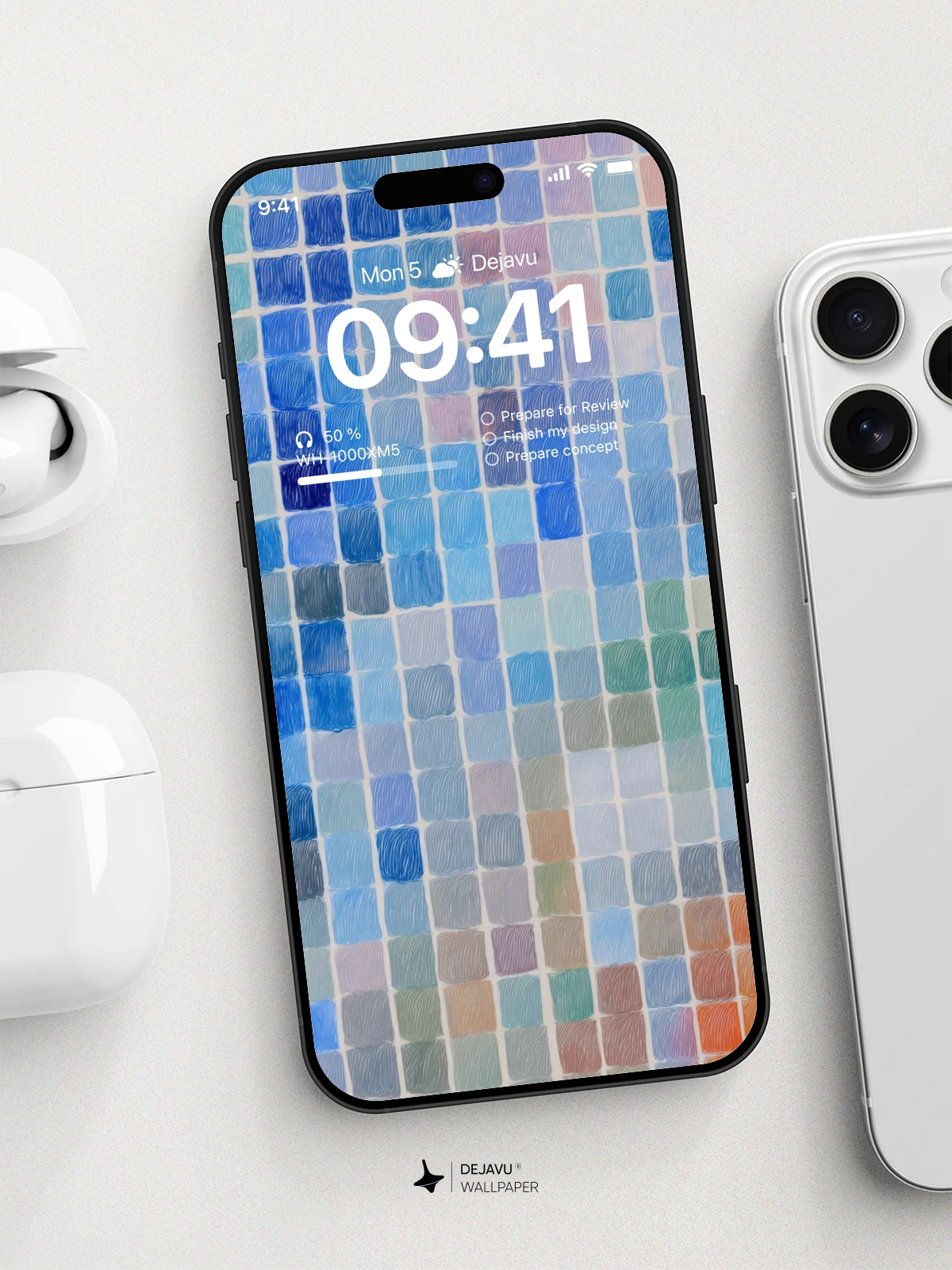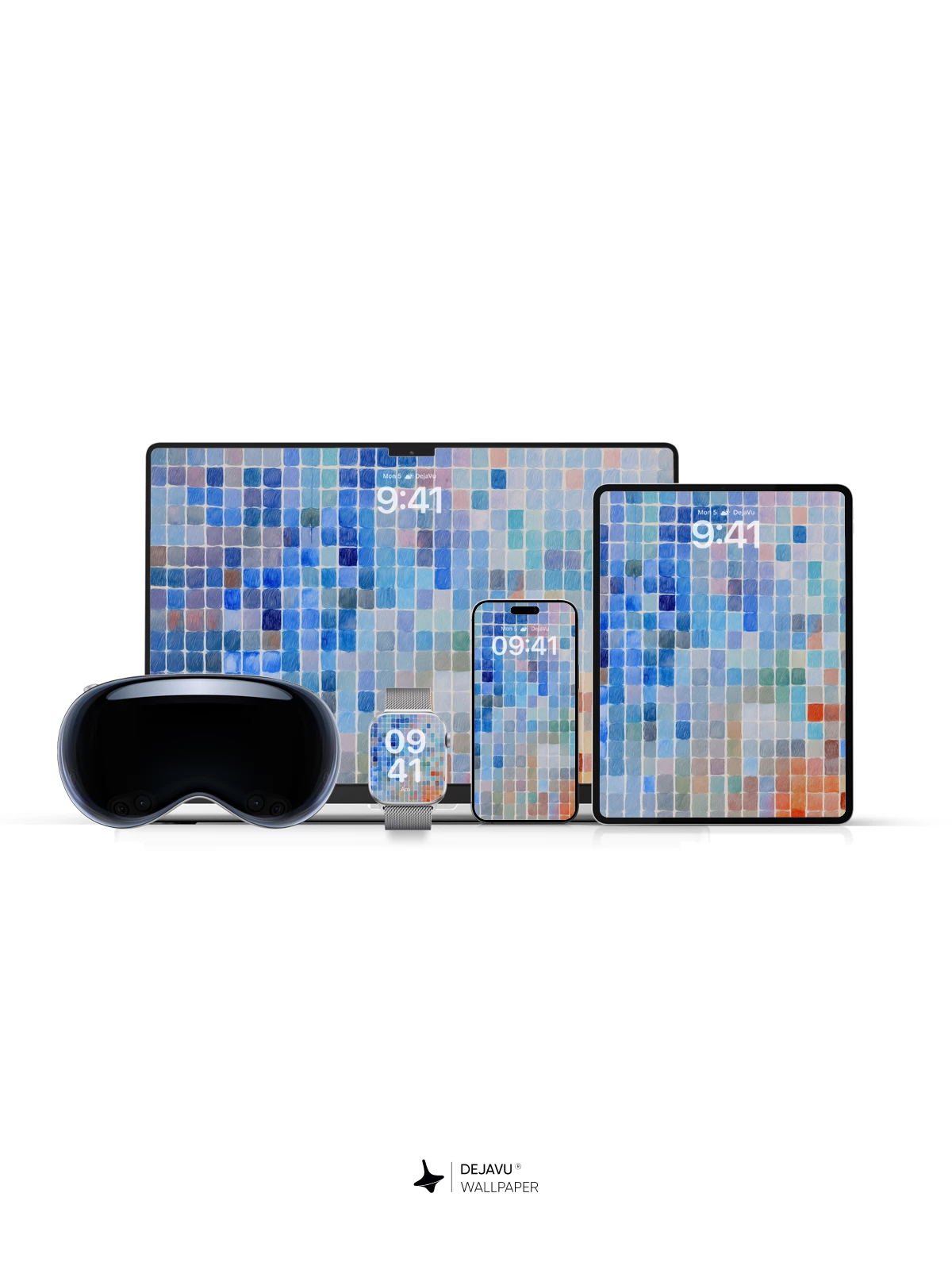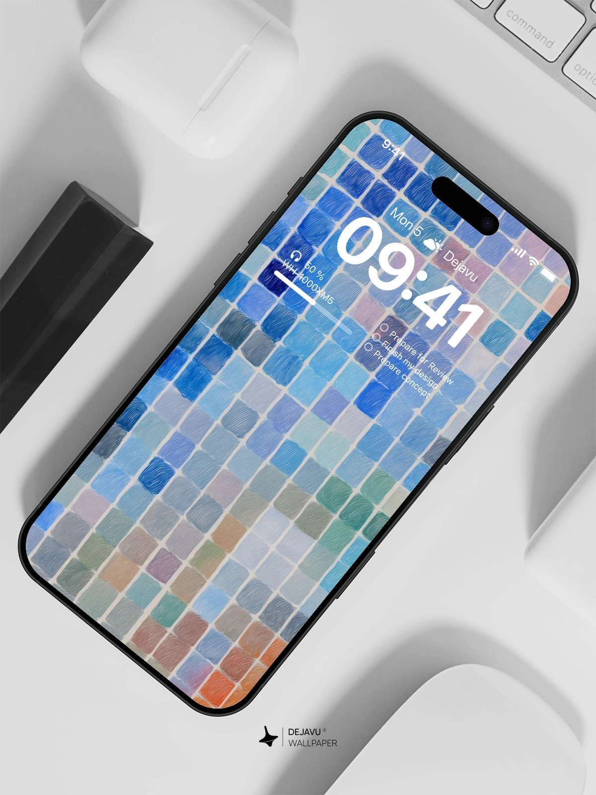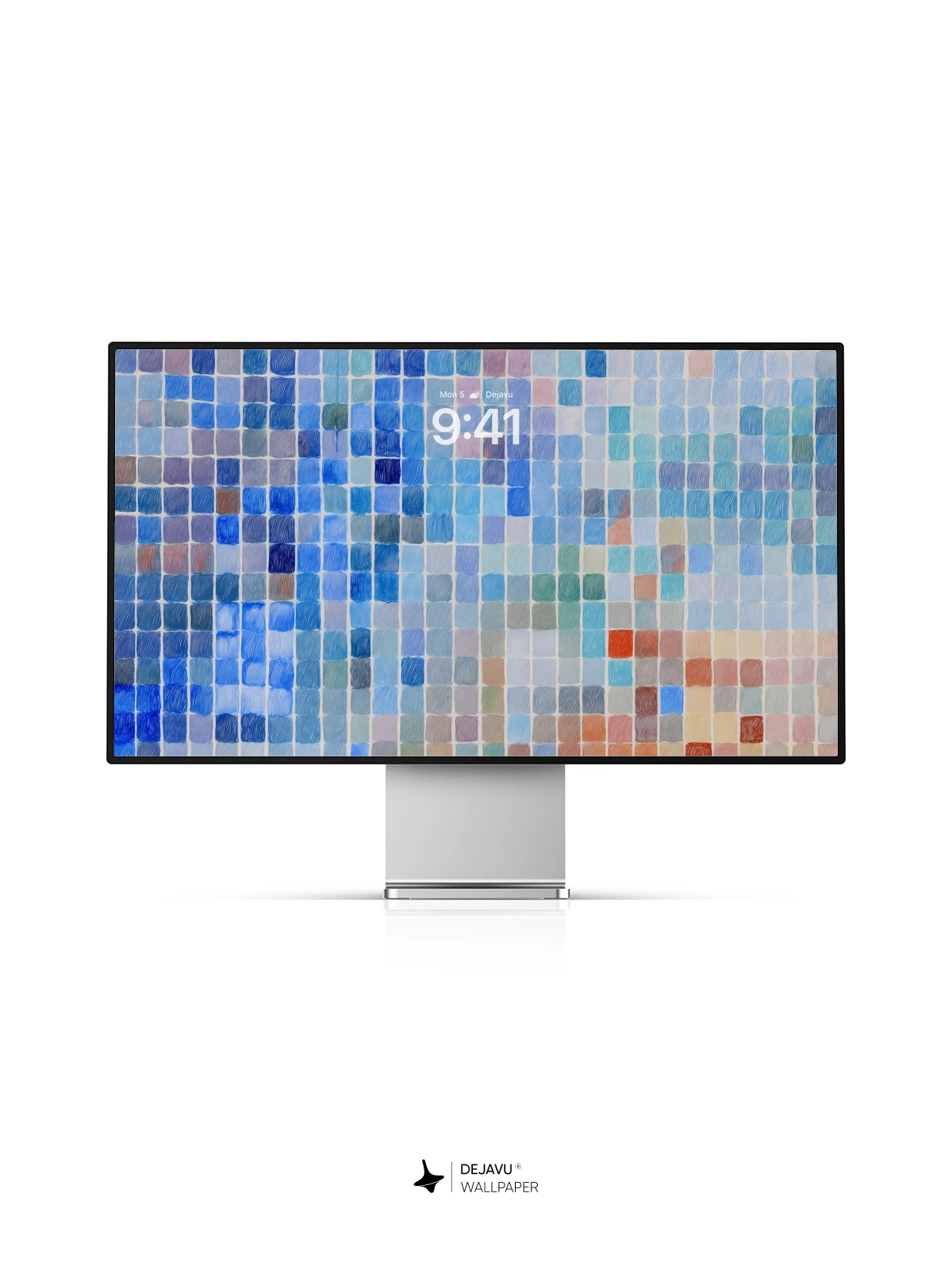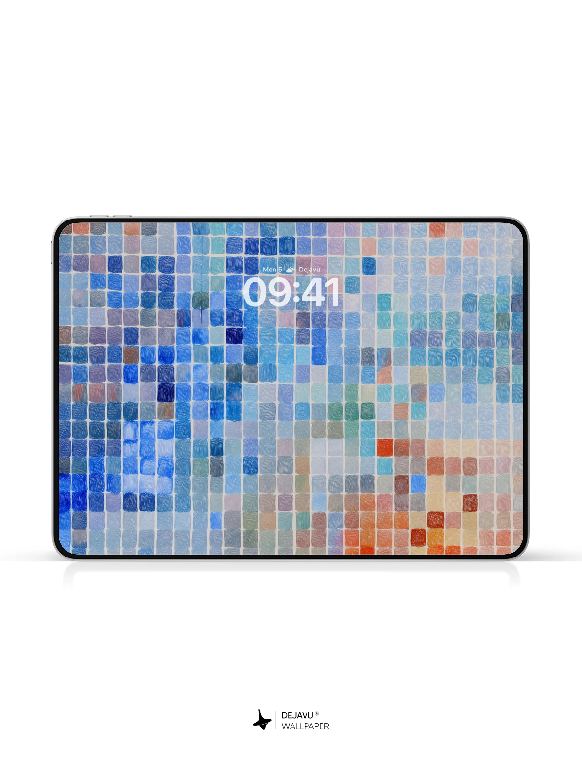 This 8K wallpaper features a soothing mosaic pattern with soft blues and gentle gradients, perfect for adding a touch of tranquility to your iPhone, Android, or tablet. Its minimalist design and calming palette make it an ideal choice for those who appreciate subtle elegance.