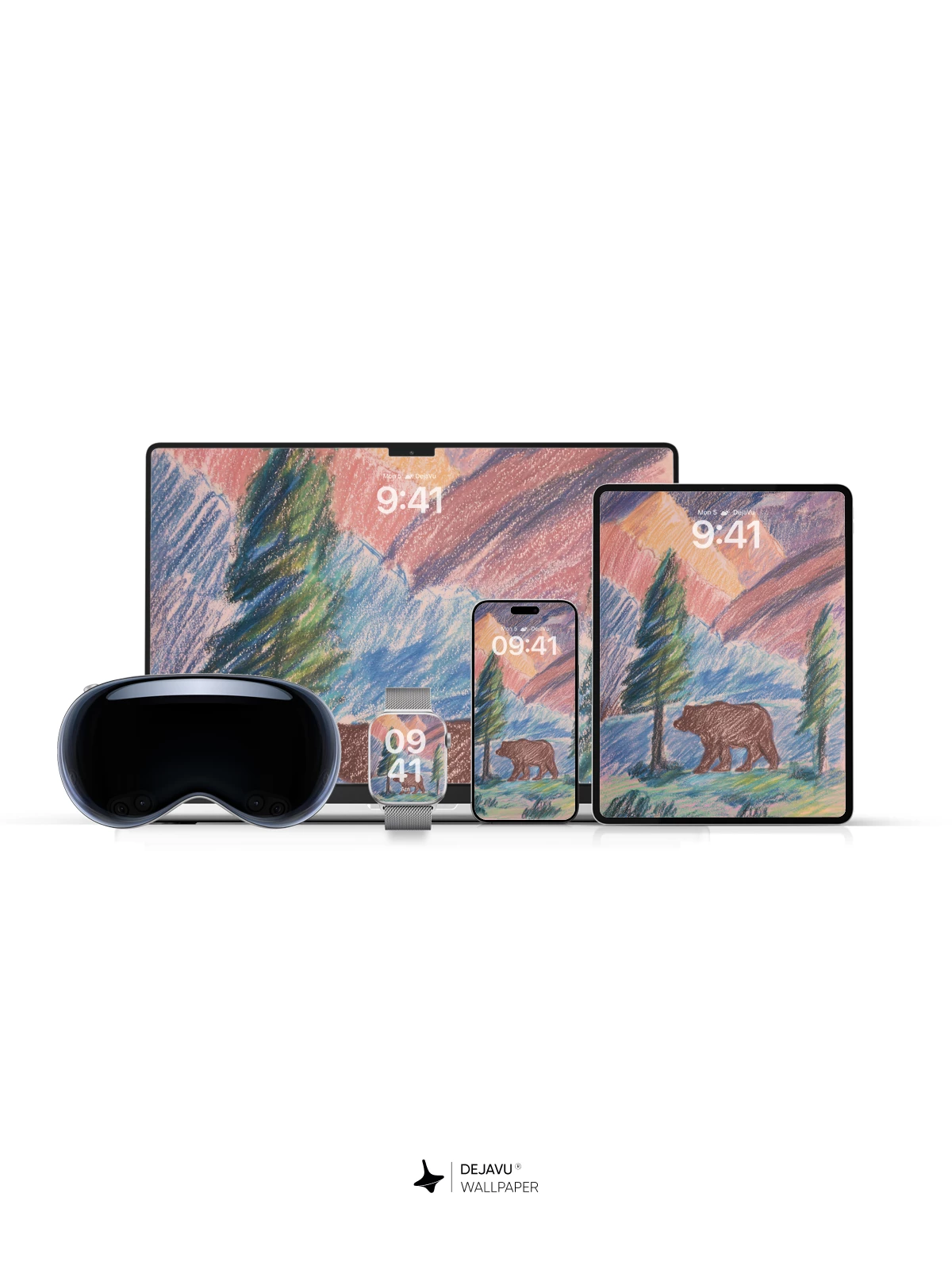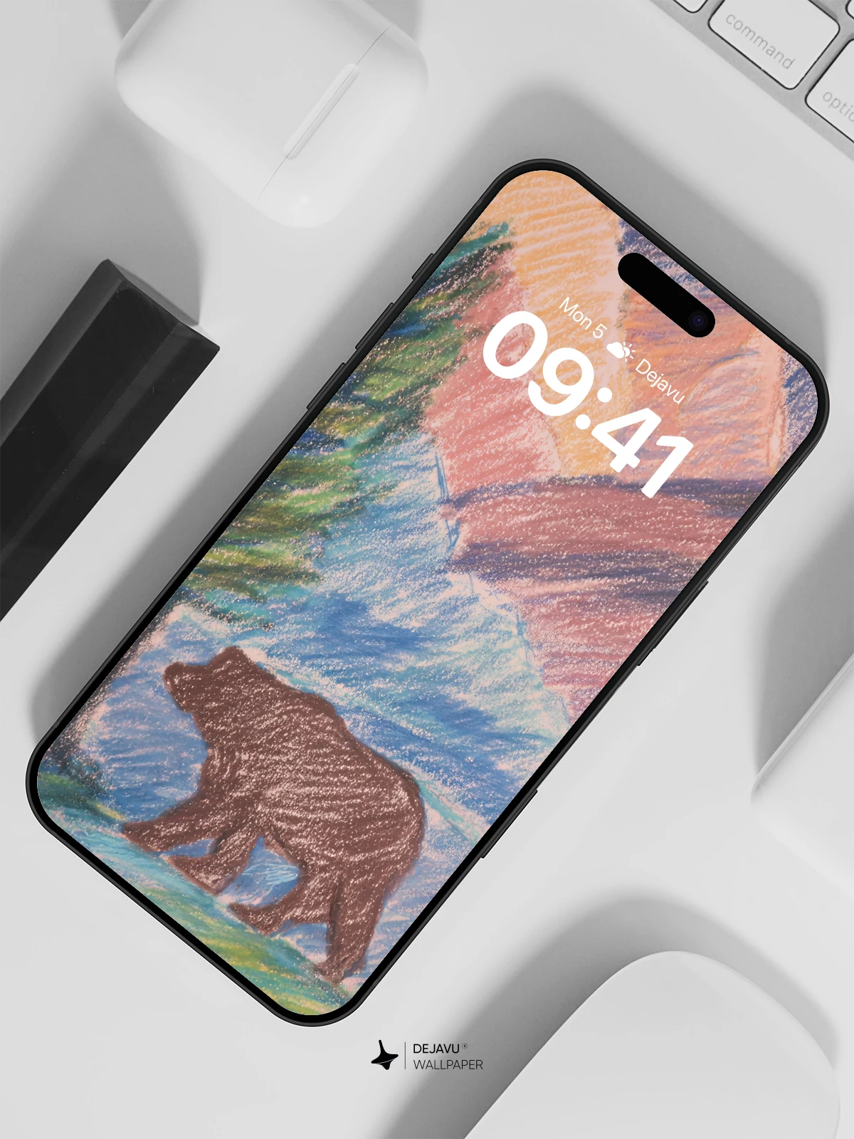 This hand-drawn pastel artwork captures a majestic bear walking beneath towering, colorful mountains, framed by evergreens and gentle skies. The soft textures and vibrant yet soothing palette evoke a sense of calm and connection to nature. Inspired by the expressive style of children’s art with a touch of whimsical realism, it’s ideal as an 8K wallpaper for iPhone, Android, or any mobile device seeking a peaceful, artistic backdrop. Let this enchanting scene bring tranquility to your daily digital experience.