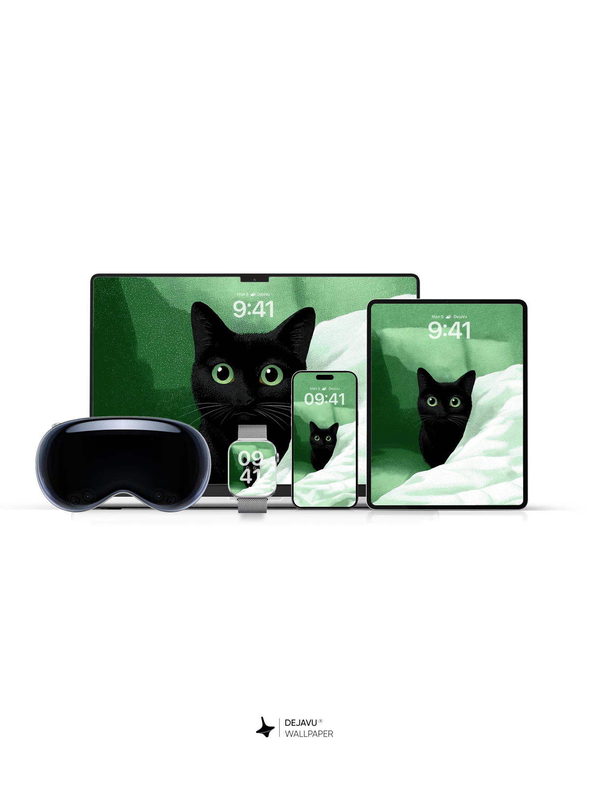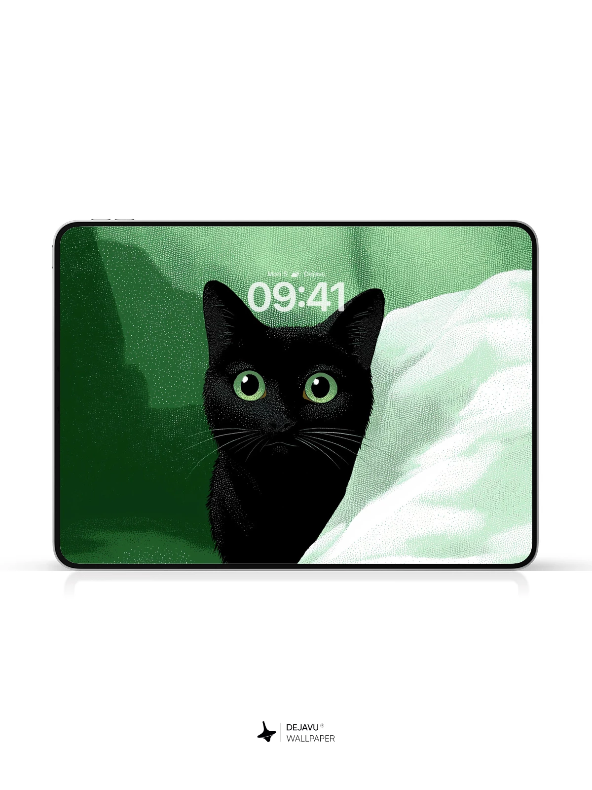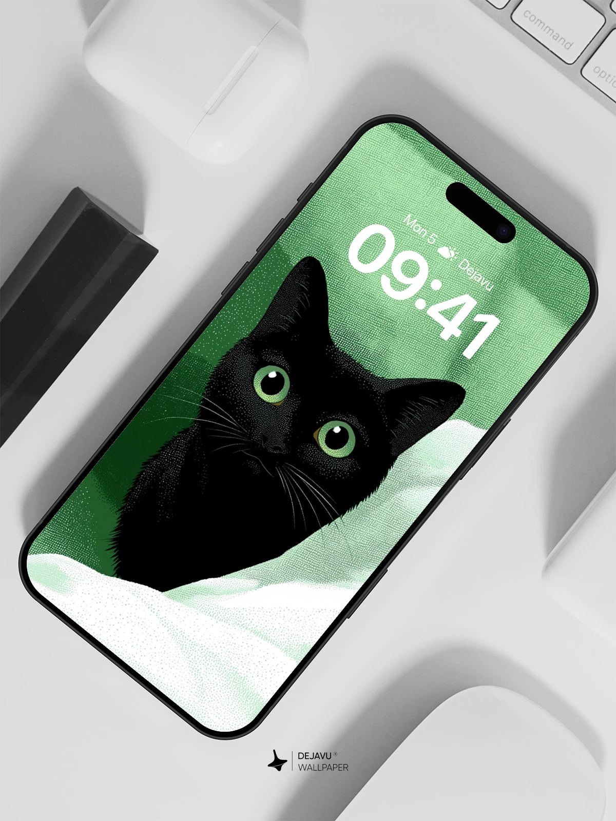 This enchanting 8K wallpaper features a mysterious black cat with luminous green eyes emerging from beneath crumpled mint-green bedding, creating a sense of quiet intrigue and hidden wonder. The soft textures and subtle lighting evoke a serene yet curious atmosphere, making it a perfect choice for iPhone, Android, and tablet screens. Designed with cinematic depth and emotional resonance, this image transforms your device into a portal to a tranquil, whimsical world where every glance feels like a secret revealed.