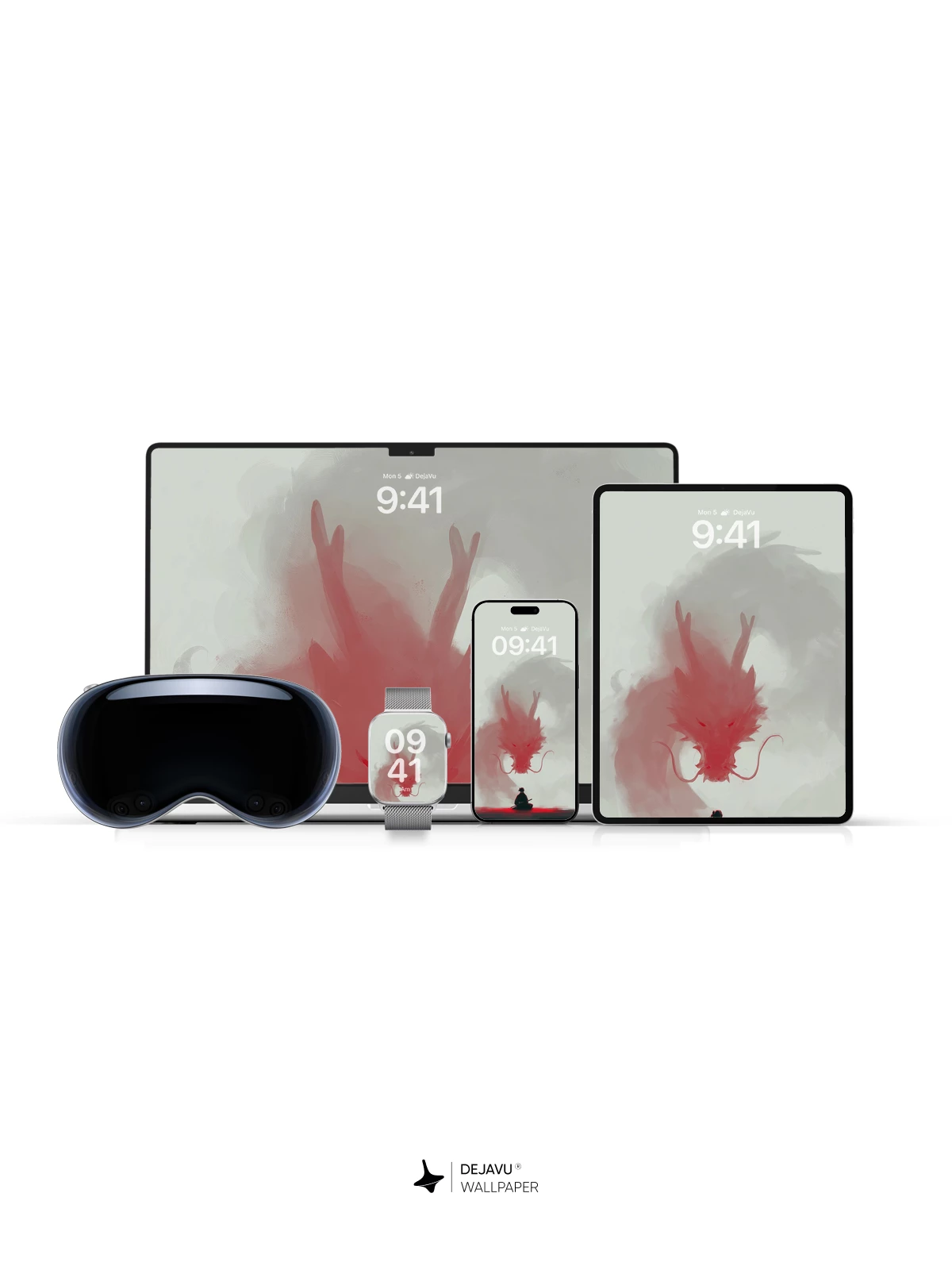 In this hauntingly beautiful artwork, a solitary figure sits on the edge of a crimson-lit shore, gazing at a massive, spectral dragon rising from swirling fog. The fusion of Eastern mysticism and surreal artistry evokes a sense of quiet confrontation between humanity and myth. With its soft gradients and powerful symbolism, this 8K wallpaper delivers an immersive experience ideal for iPhone, Android, and tablets. Designed to inspire introspection and wonder, it transforms any device into a portal to a dreamlike realm.