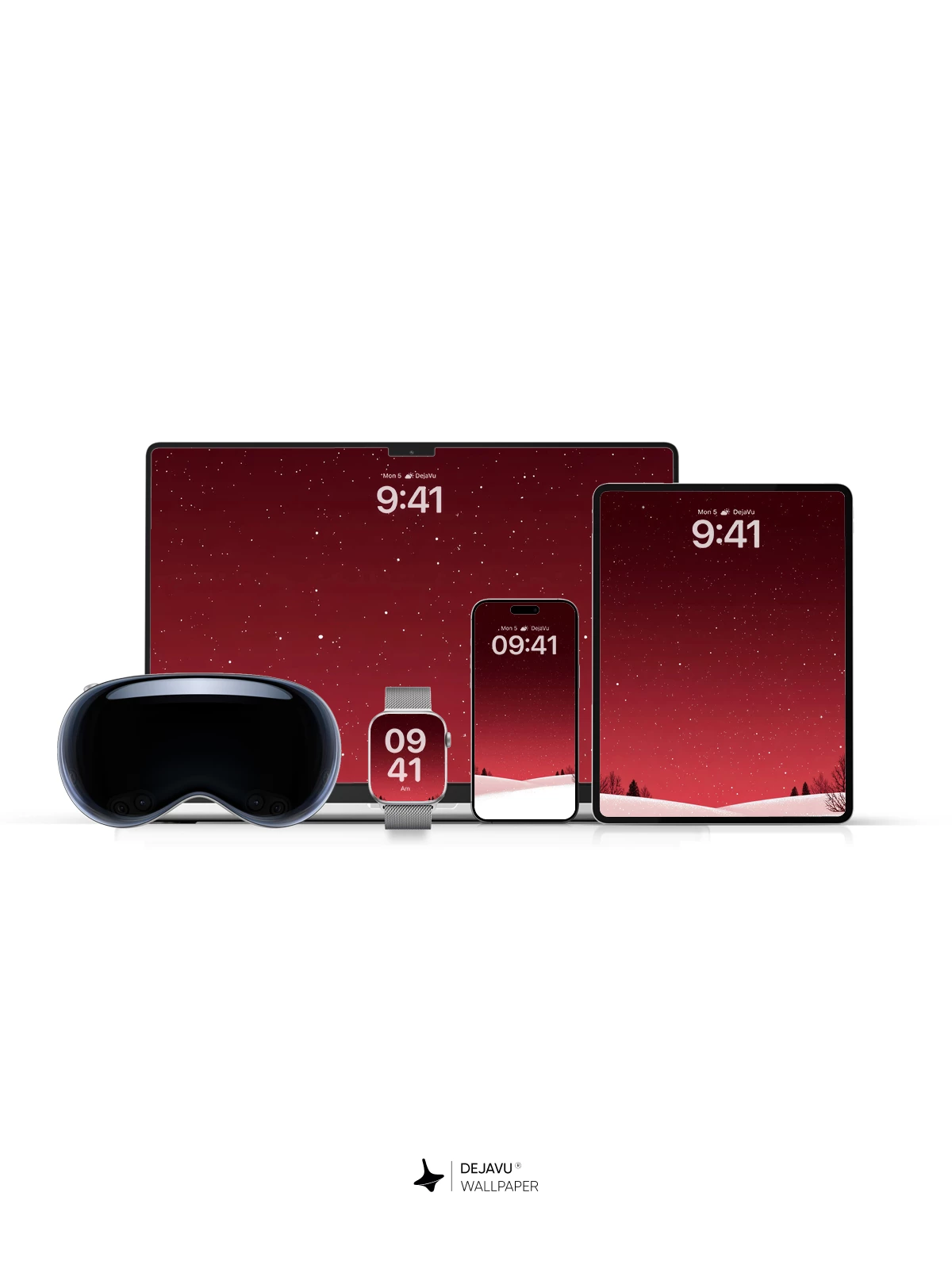 This mesmerizing 8K wallpaper captures a tranquil snowy landscape beneath an otherworldly crimson sky dotted with twinkling stars. The stark contrast between the glowing red heavens and pristine white snow evokes a sense of quiet mysticism and timeless wonder. Ideal for iPhone, Android, and tablet users seeking a unique, emotionally resonant background that transforms any device into a portal to a dreamlike winter realm.
