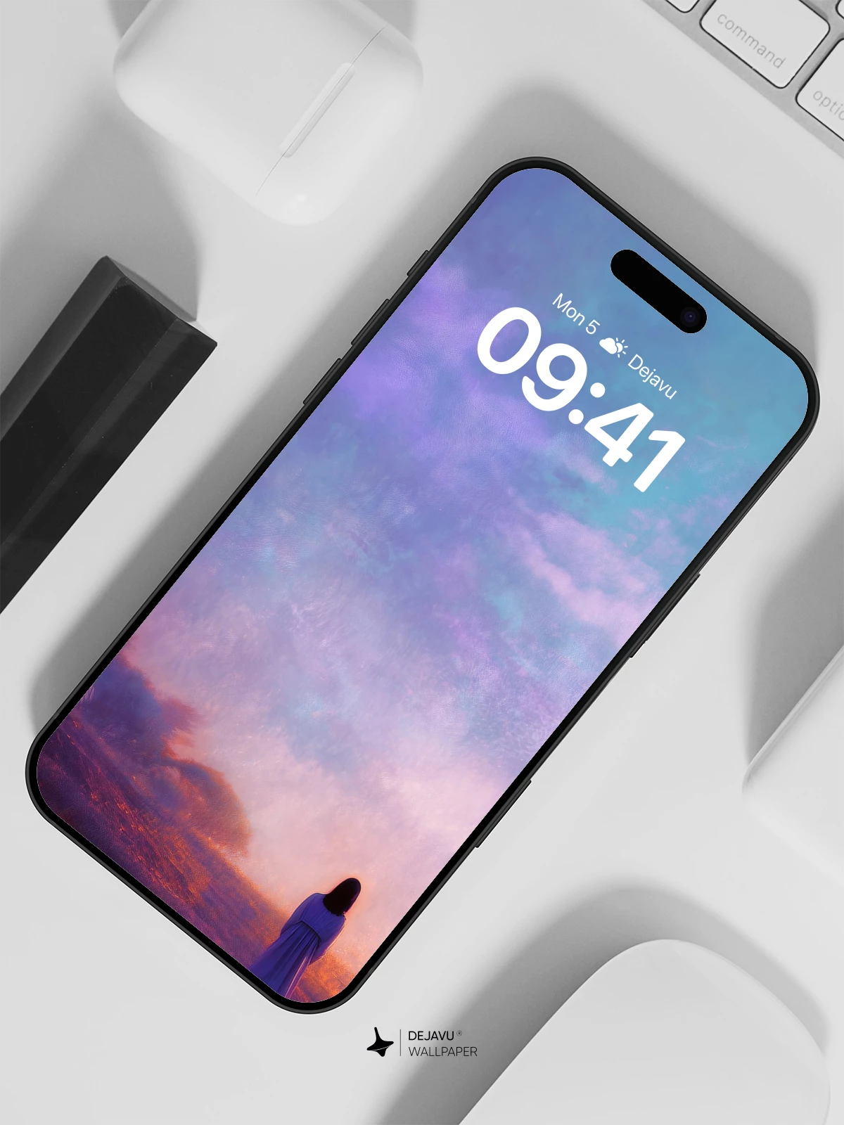 Bathed in the glow of an otherworldly sunset, a solitary figure walks into a vast, misty field under a swirling, cosmic sky—evoking feelings of introspection and spiritual journey. The rich gradient hues and painterly texture give this 8K wallpaper a dreamlike, cinematic quality ideal for iPhone, Android, and tablet screens. Perfect for those who seek beauty with depth, it transforms any device into a portal to tranquility and imagination.