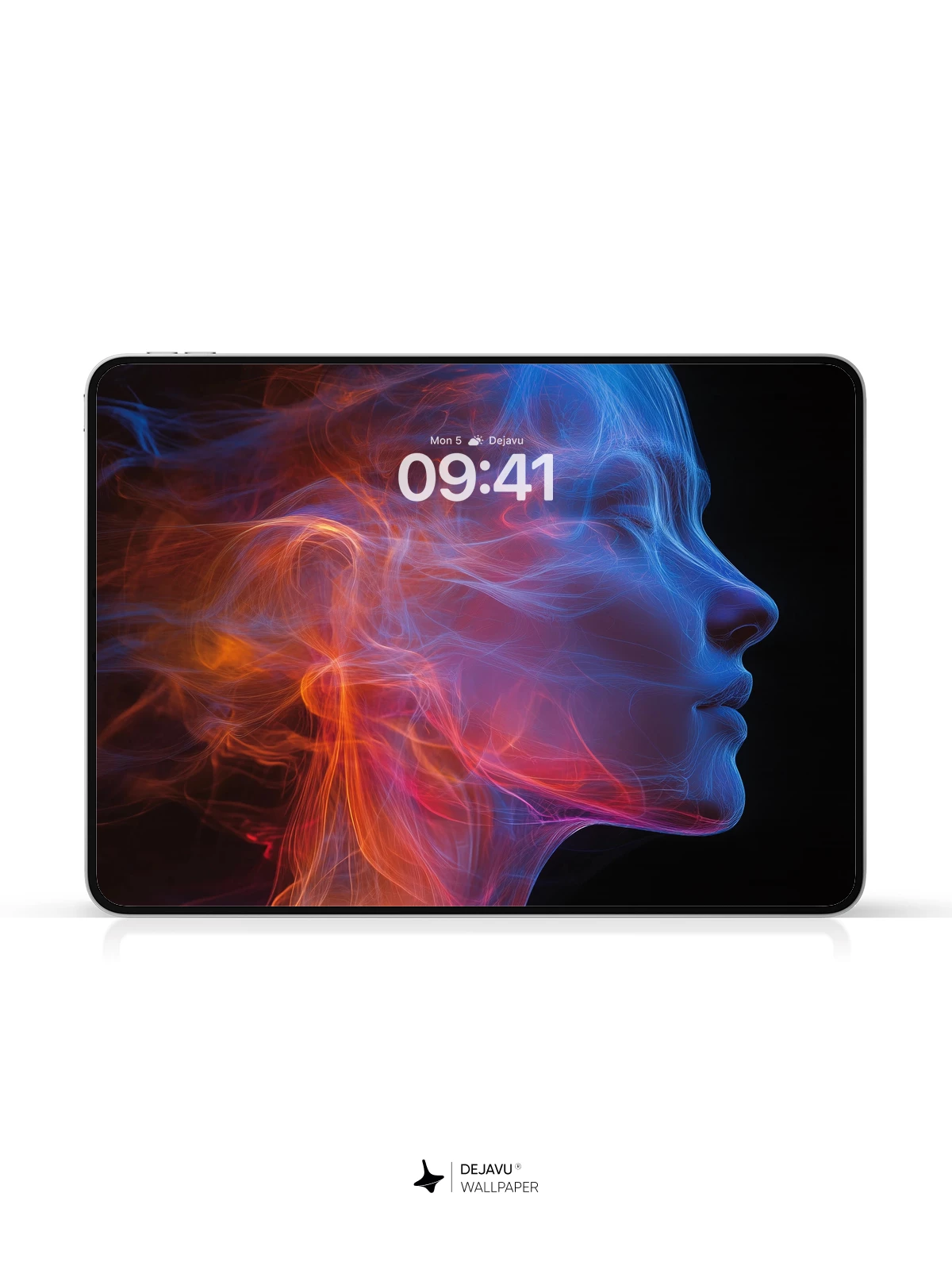 This captivating digital artwork blends a serene human profile with swirling, luminous smoke in dynamic shades of orange and blue, evoking a sense of ethereal transformation. The surreal fusion of form and energy creates a dreamlike aura, ideal for those who appreciate avant-garde visuals. With its high-definition clarity and vivid contrast, this 8K wallpaper elevates any iPhone, Android, or tablet screen, turning your device into a canvas of modern art.