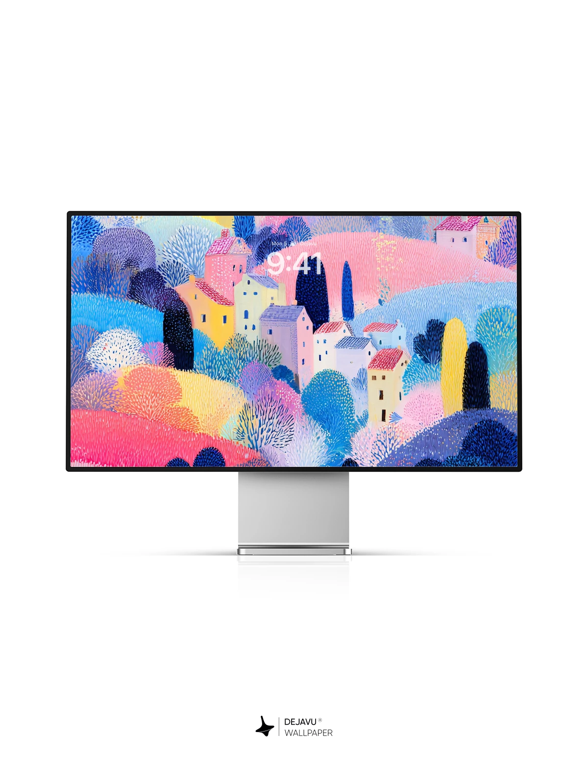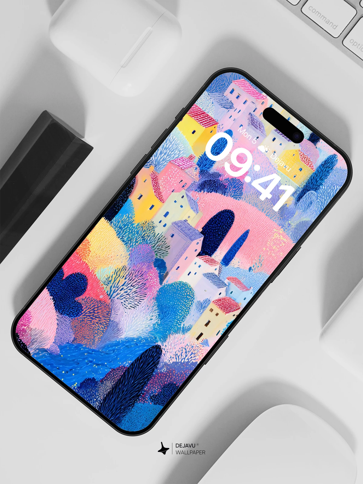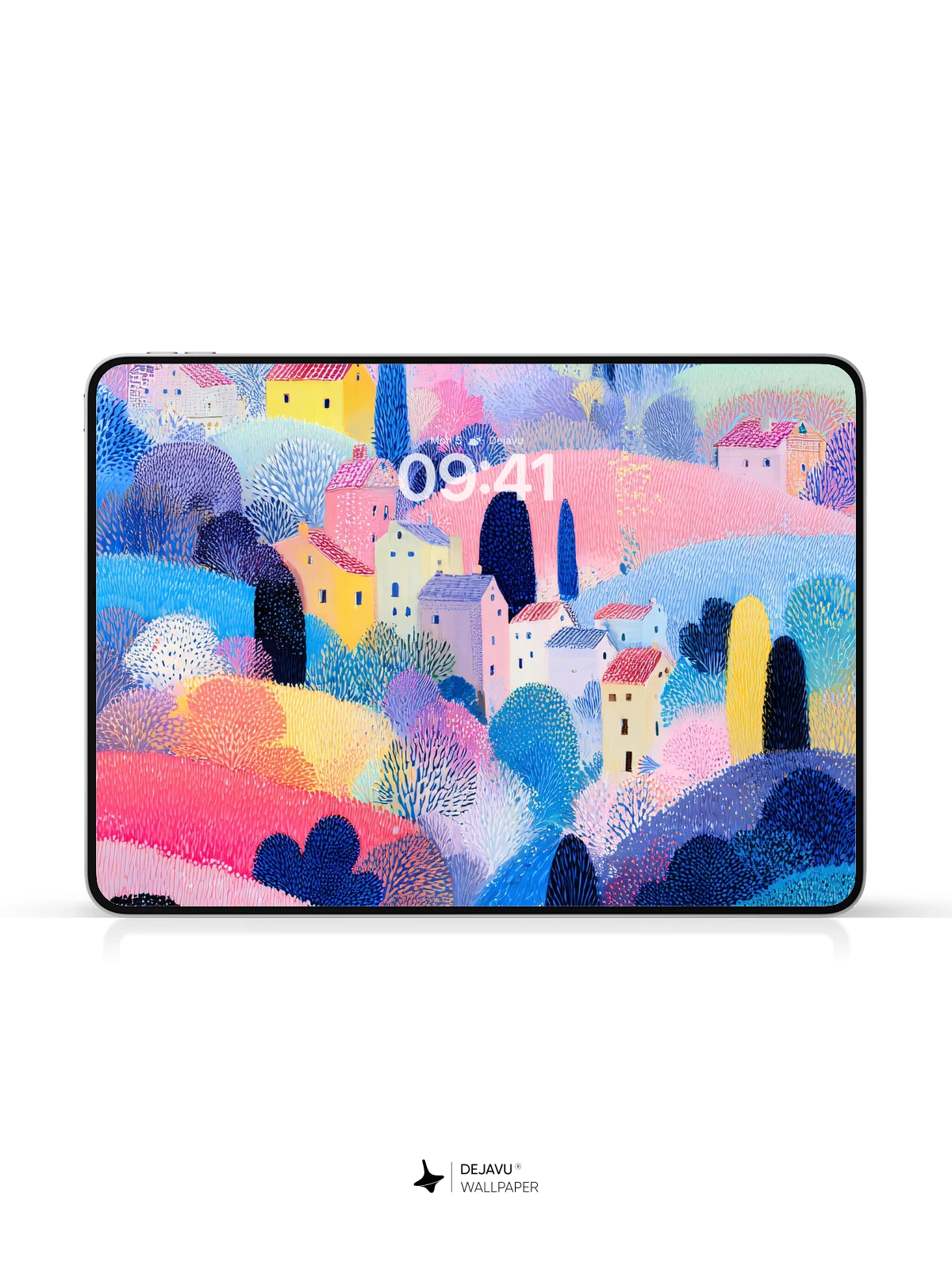 This wallpaper features a charming village scene with colorful houses dotting pastel-hued hills. The textured brushwork adds depth, creating a serene and imaginative backdrop. Ideal for iPhone, Android, and tablets.