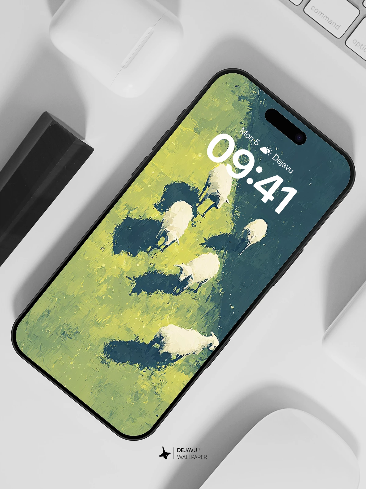 This tranquil artwork captures a flock of sheep wandering through a lush green field under a dramatic diagonal shadow, evoking a sense of peaceful solitude and timeless nature. Rendered with expressive brushwork reminiscent of modern impressionism, the image blends realism with artistic flair, making it ideal for 8K phone wallpapers on both iPhone and Android devices. The interplay of light and color creates a soothing visual experience, perfect for enhancing your mobile screen with elegance and calm.