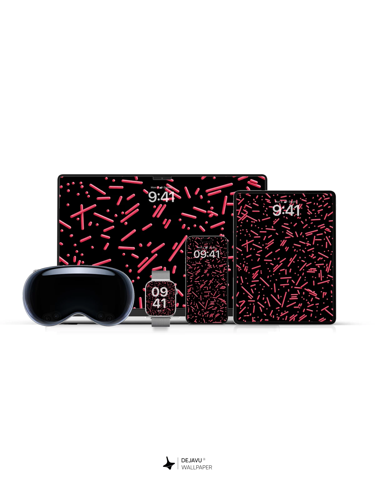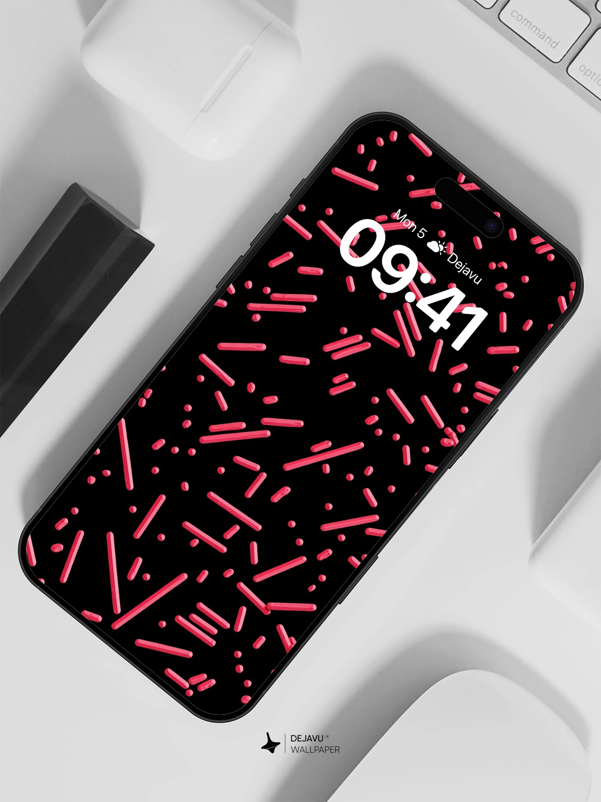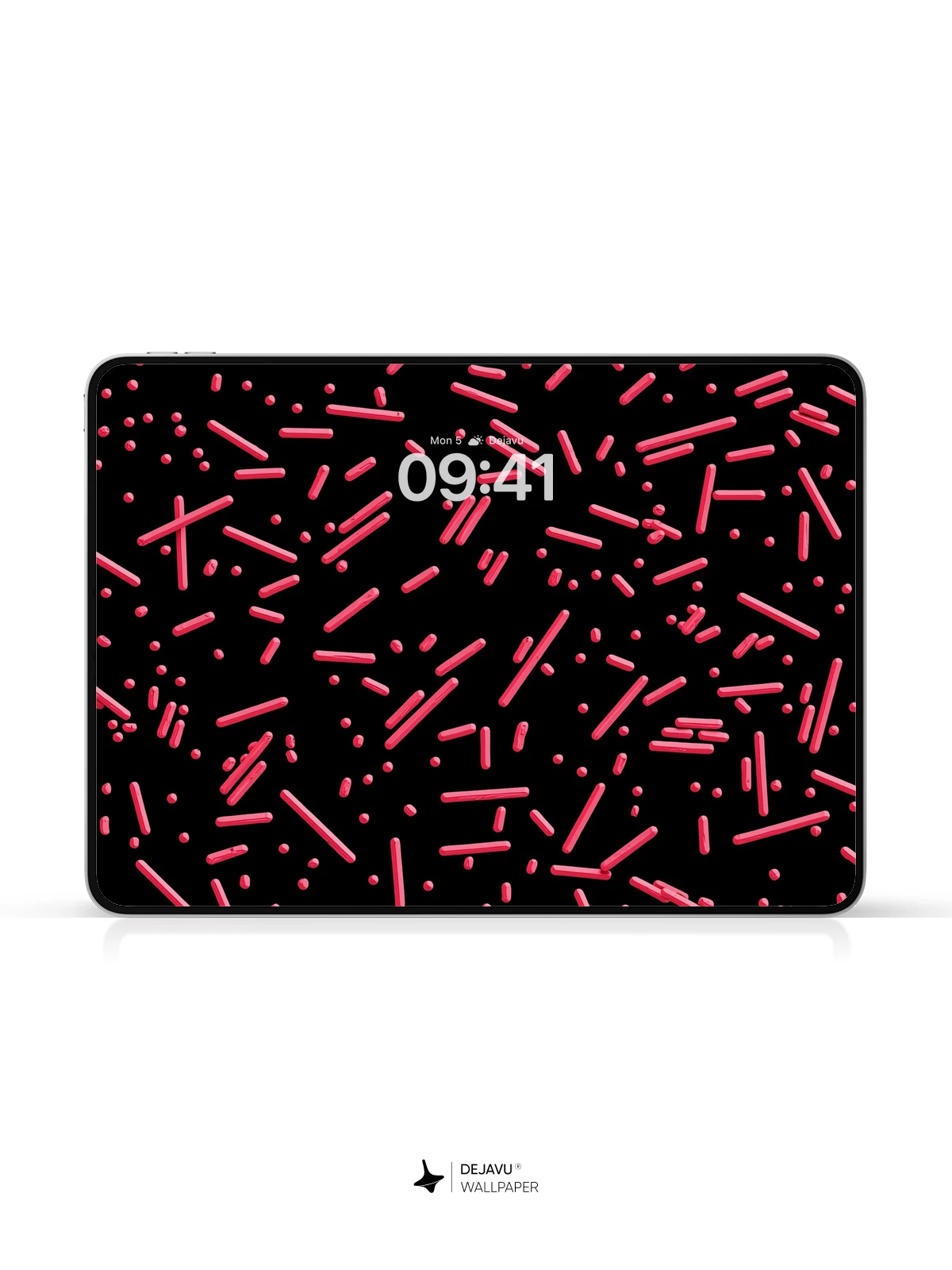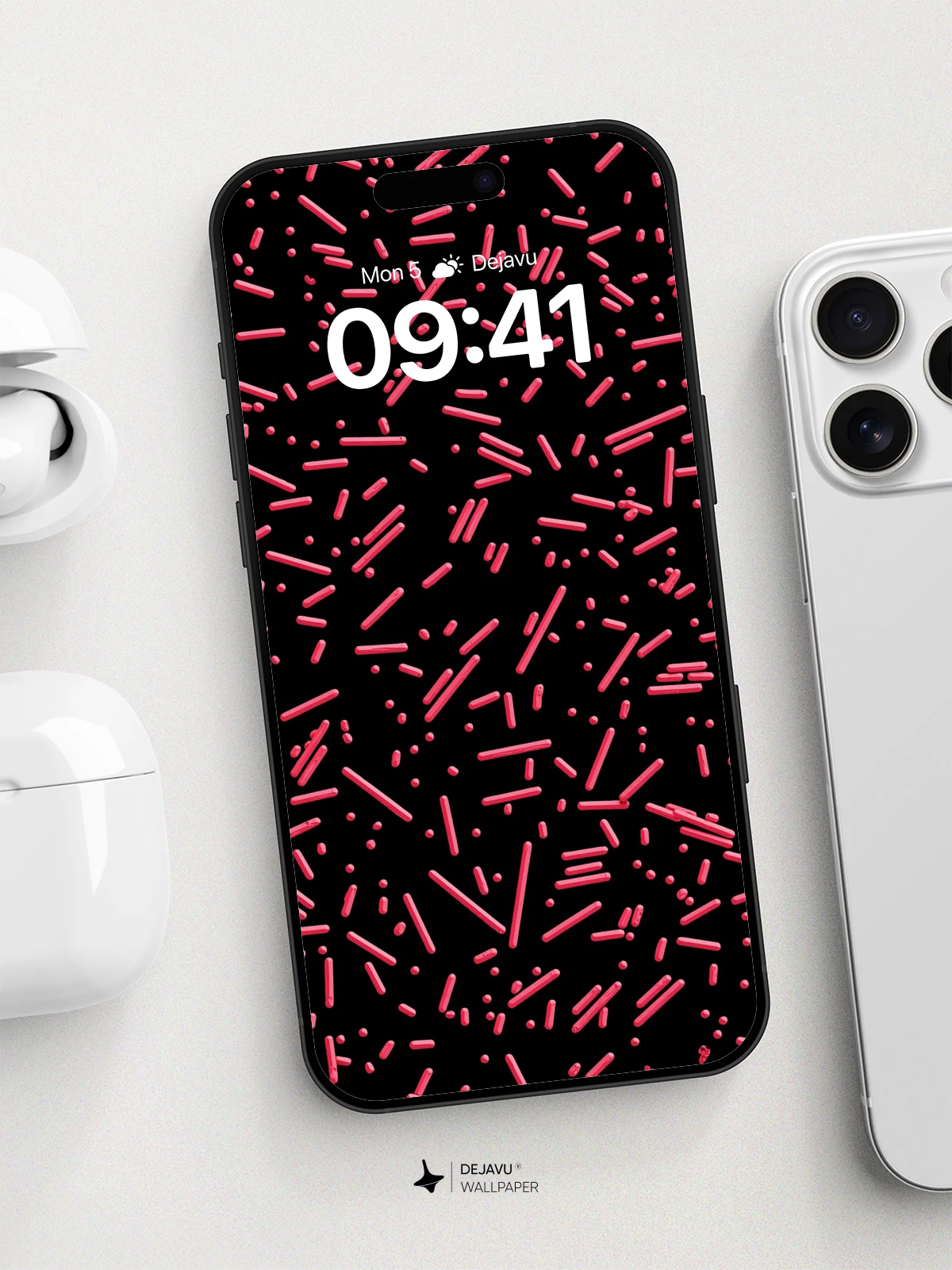 This eye-catching 8K wallpaper features a dynamic pattern of bright pink sprinkles scattered across a deep black canvas, creating a joyful and whimsical aesthetic. Inspired by the delightful chaos of dessert toppings, the design brings a sweet, energetic vibe to your iPhone, Android, or tablet. Its bold contrast and playful geometry make it ideal for those who love trendy, pop-inspired visuals with a touch of nostalgia. Whether you’re updating your lock screen or desktop, this sprinkle-themed artwork delivers a cheerful burst of color.