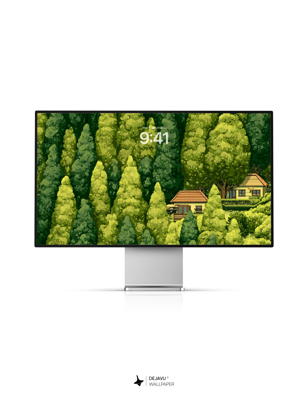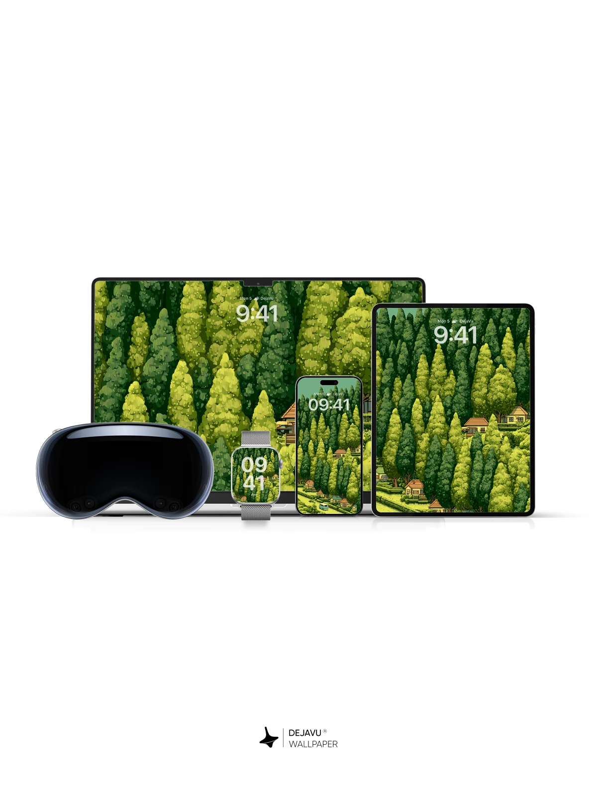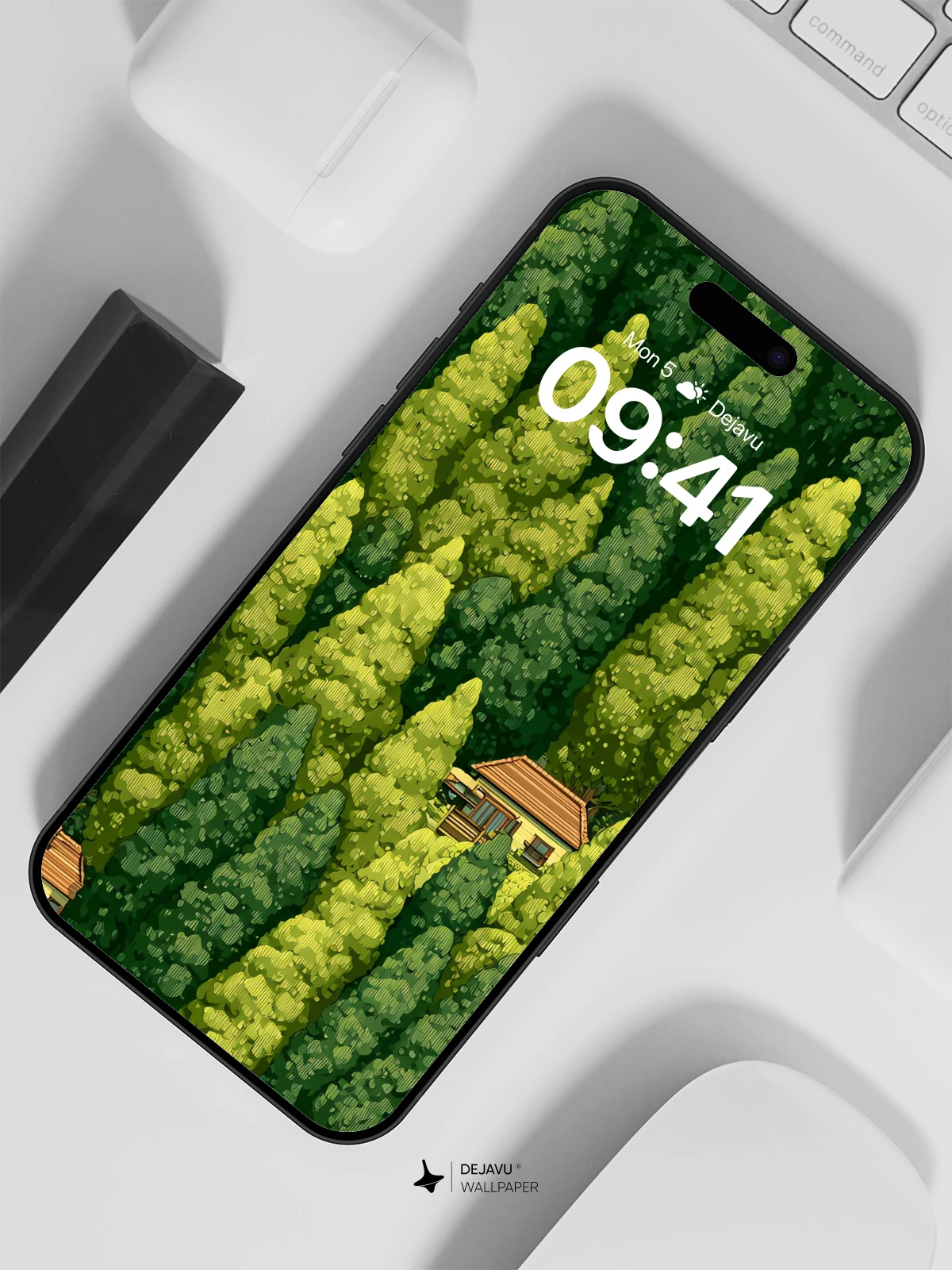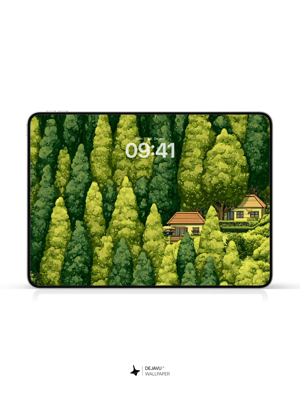 This enchanting 8K wallpaper captures a whimsical pixel-art forest retreat, where quaint wooden homes peek through dense greenery under a calm teal sky. Inspired by retro video game aesthetics, the scene blends nostalgia with natural beauty, evoking a sense of peaceful solitude. Ideal for iPhone, Android, or tablet screens, this high-resolution design brings a touch of digital serenity to your mobile experience.