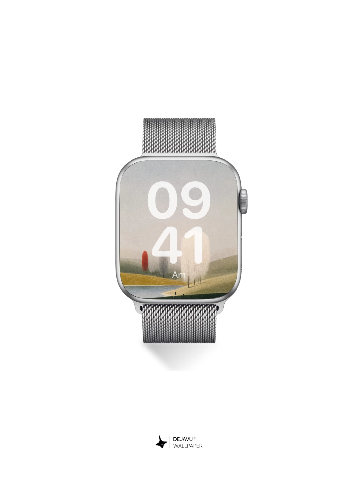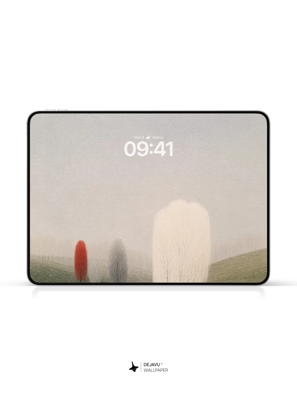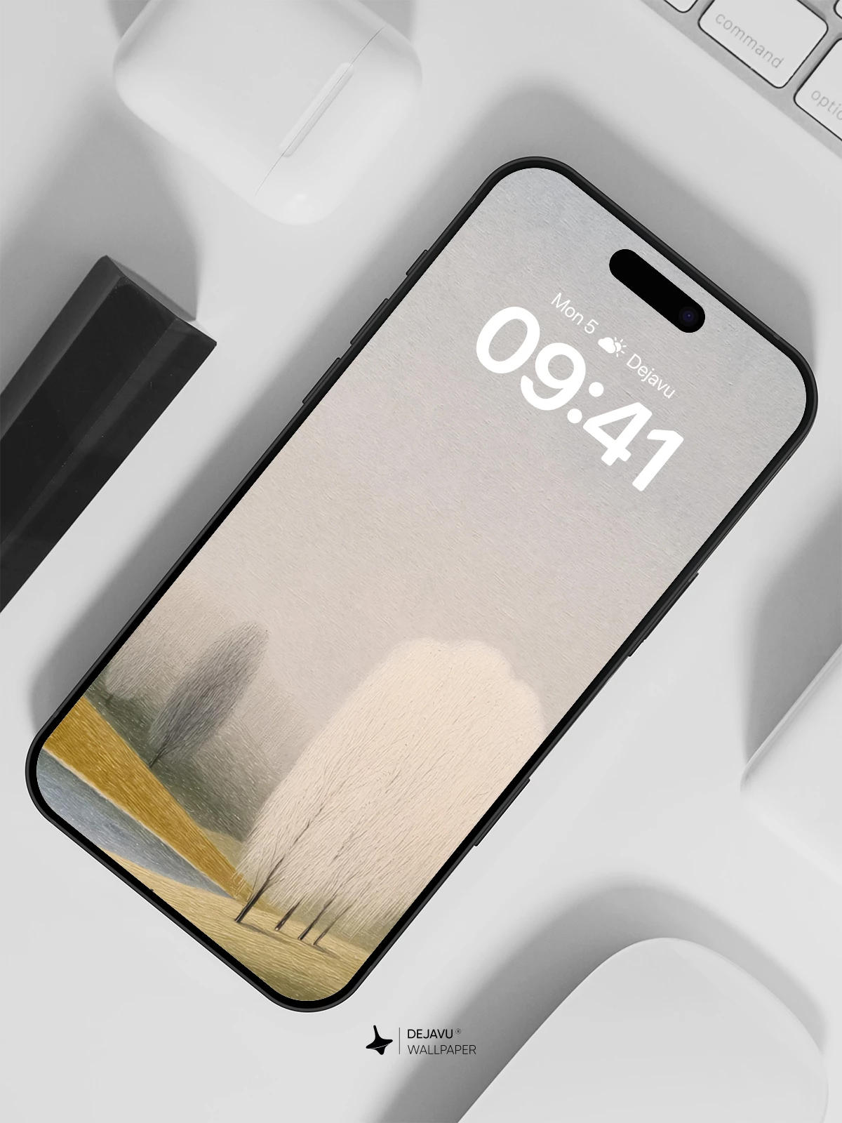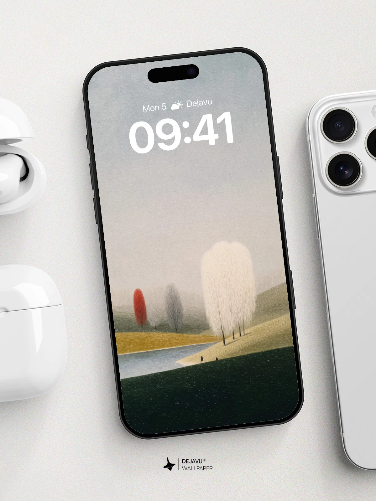 This 8K wallpaper captures a tranquil scene with soft gradients and subtle textures. The composition includes a calm lake, gently sloping hills, and abstract trees, creating a peaceful ambiance. Ideal for enhancing your device’s screen with a touch of natural serenity.
