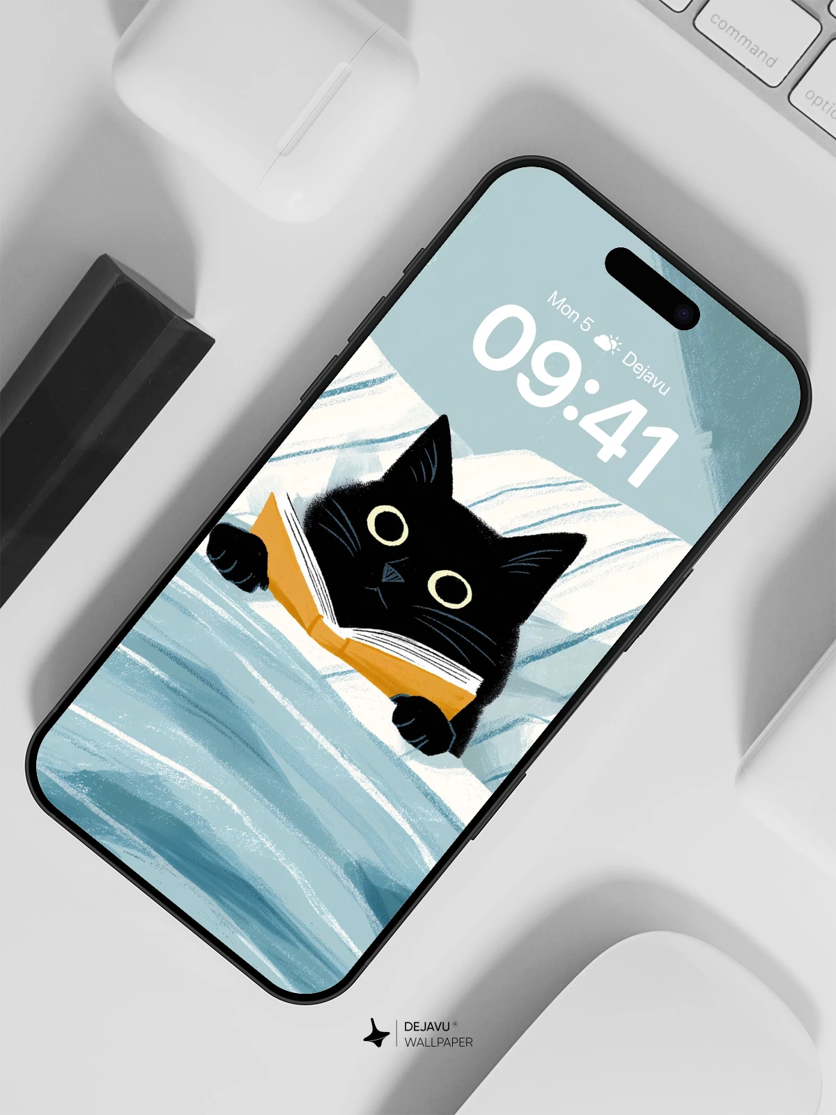 This delightful illustration captures a serene moment of a black cat reading a book in bed, bathed in gentle morning light. With its minimalist charm and soothing color palette, the artwork evokes calmness and quiet joy. Ideal as an 8K wallpaper for iPhone, Android, or tablets, this whimsical scene brings warmth and personality to any device. The clean lines and expressive details make it a perfect blend of cuteness and elegance.