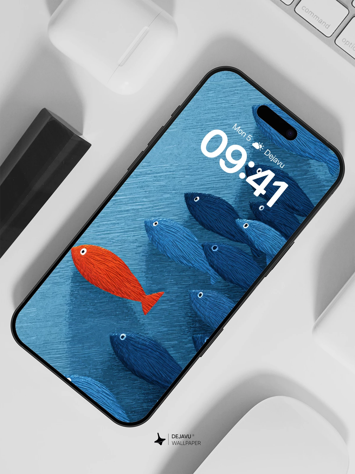 In this captivating 8K wallpaper, a lone red fish breaks the uniformity of a blue school, symbolizing individuality and courage. Inspired by minimalist art with a touch of symbolic storytelling, the image uses bold color contrast and fluid composition to evoke emotion and curiosity. Ideal for iPhone, Android, and tablet screens, this high-resolution design brings depth and personality to your device’s home screen.