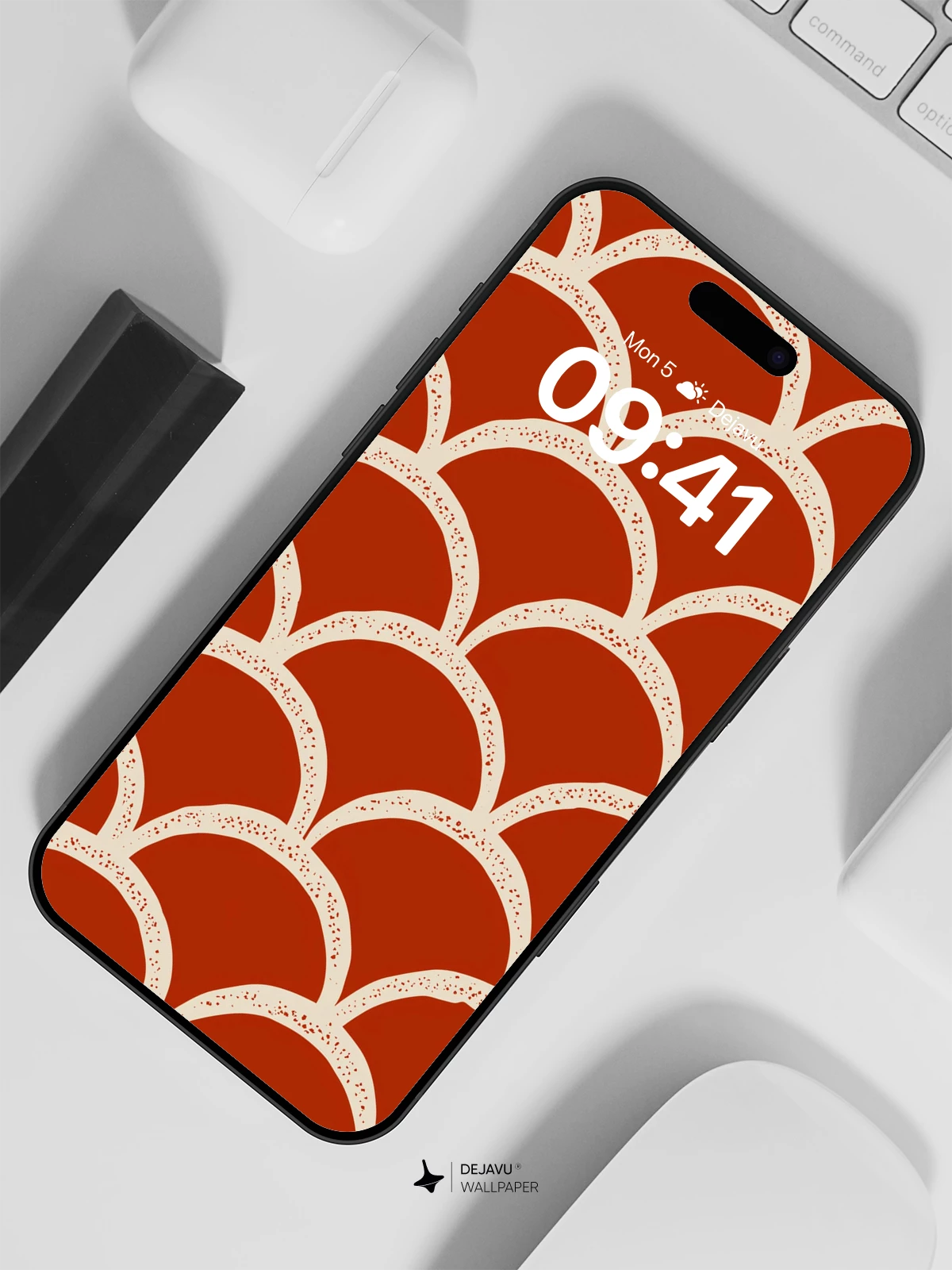 This striking 8K wallpaper features a repeating scallop pattern in rich terracotta red and creamy beige, echoing the classic elegance of traditional Japanese wave motifs. Inspired by Ukiyo-e aesthetics, the design blends cultural heritage with modern minimalism, creating a visually soothing yet dynamic background ideal for iPhone, Android, or tablet devices. The subtle texture within each scallop adds depth and sophistication, making it a refined choice for those who appreciate artistic detail in everyday tech.