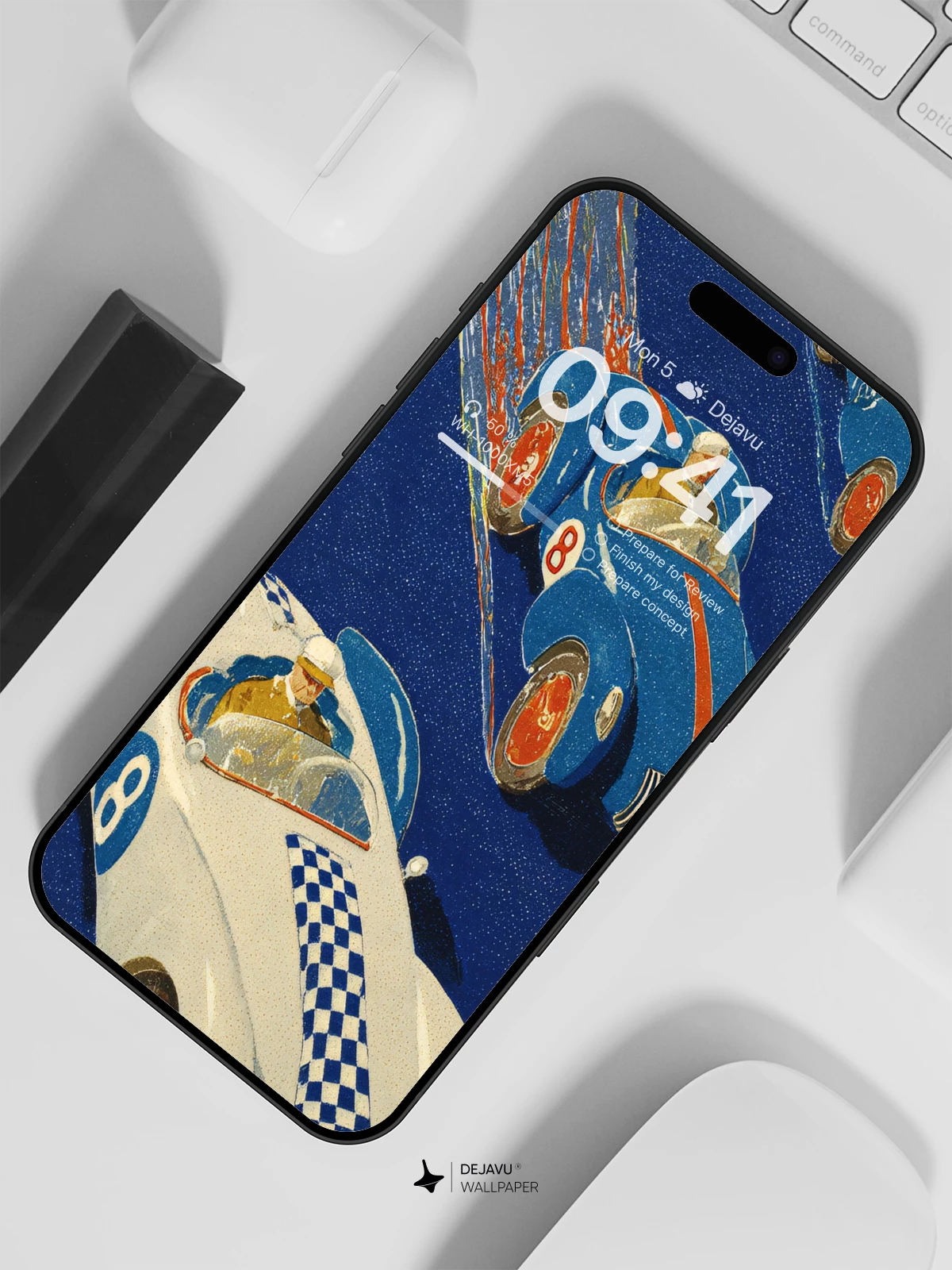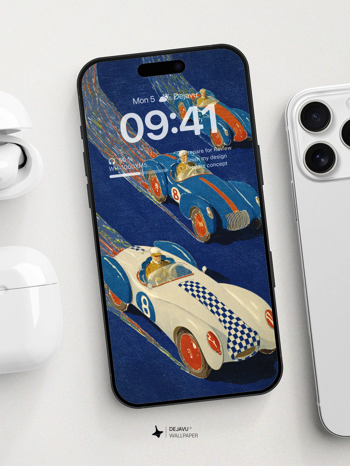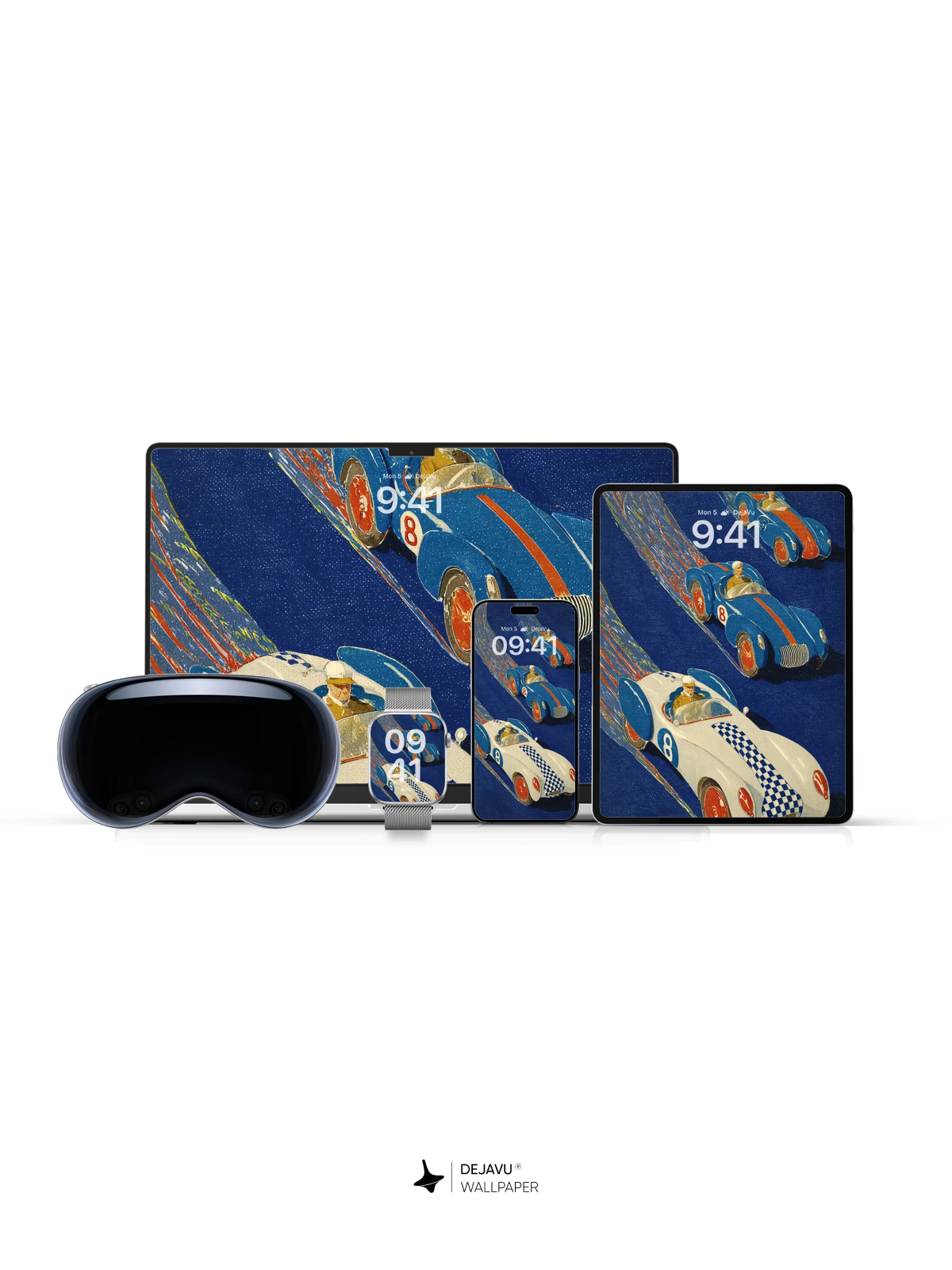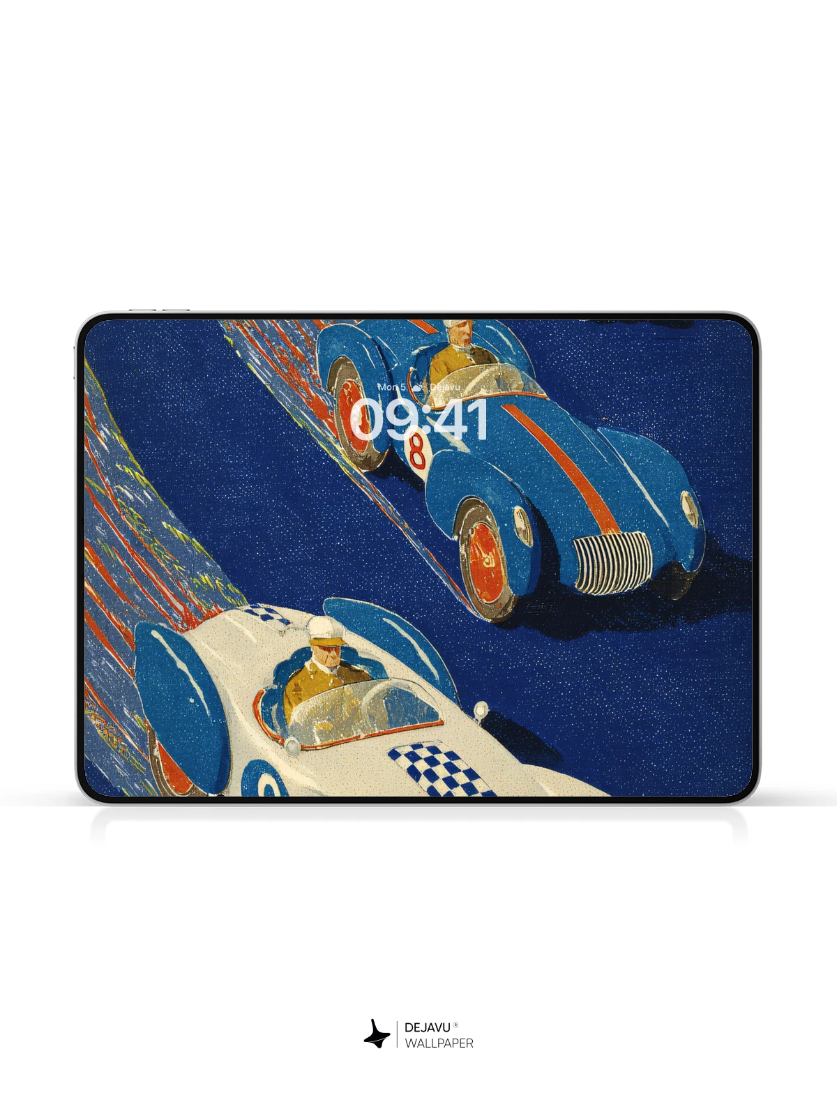 Inspired by mid-century modern illustration, this striking 8K wallpaper captures the thrill of classic auto racing with sleek, colorful cars zooming across a deep blue backdrop. The dynamic motion lines and bold color contrasts evoke a sense of high-speed adventure, perfect for iPhone, Android, or tablet screens. Ideal for fans of retro design and automotive art, it brings a playful yet sophisticated energy to any mobile device.