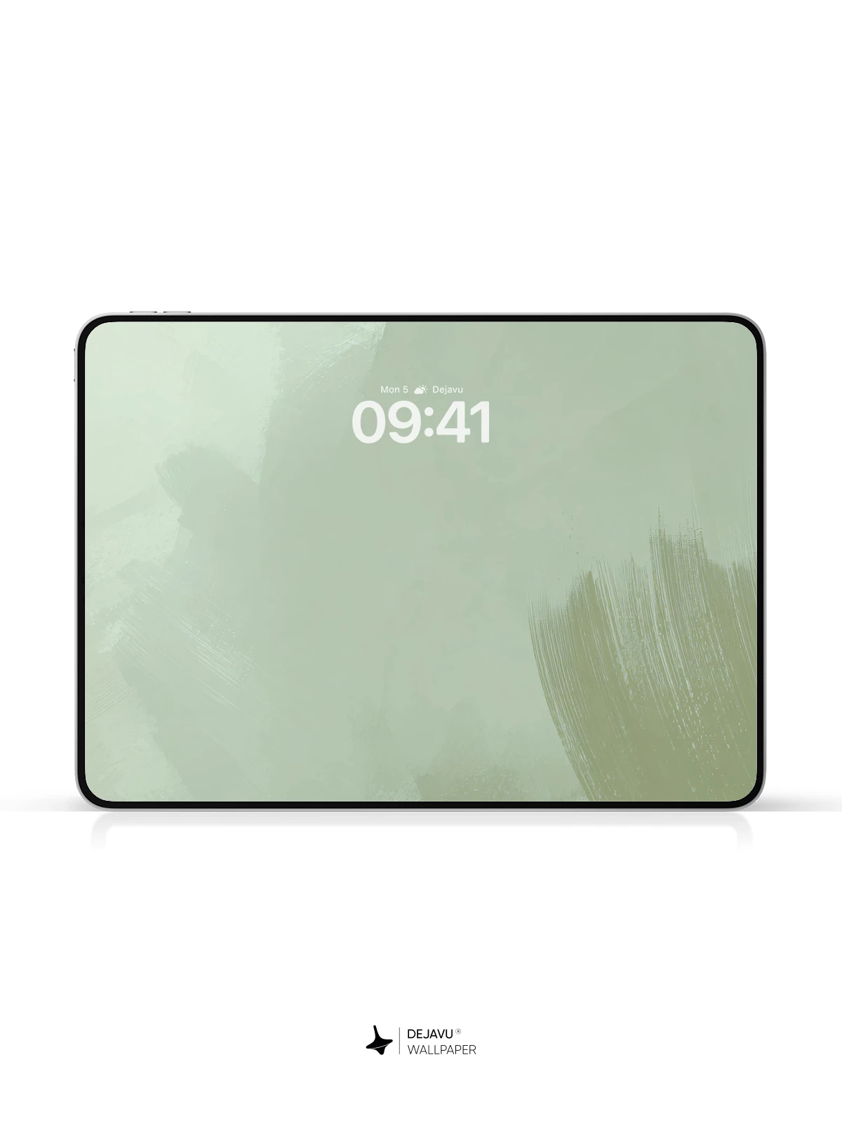 This 8K wallpaper features a gentle, abstract composition of sage green and cream tones. The visible brushstrokes create a soft, hand-painted texture that feels both modern and timeless. Its understated palette and clean, minimalist aesthetic make it a perfect, calming background for iPhone, Android, and tablet devices.
