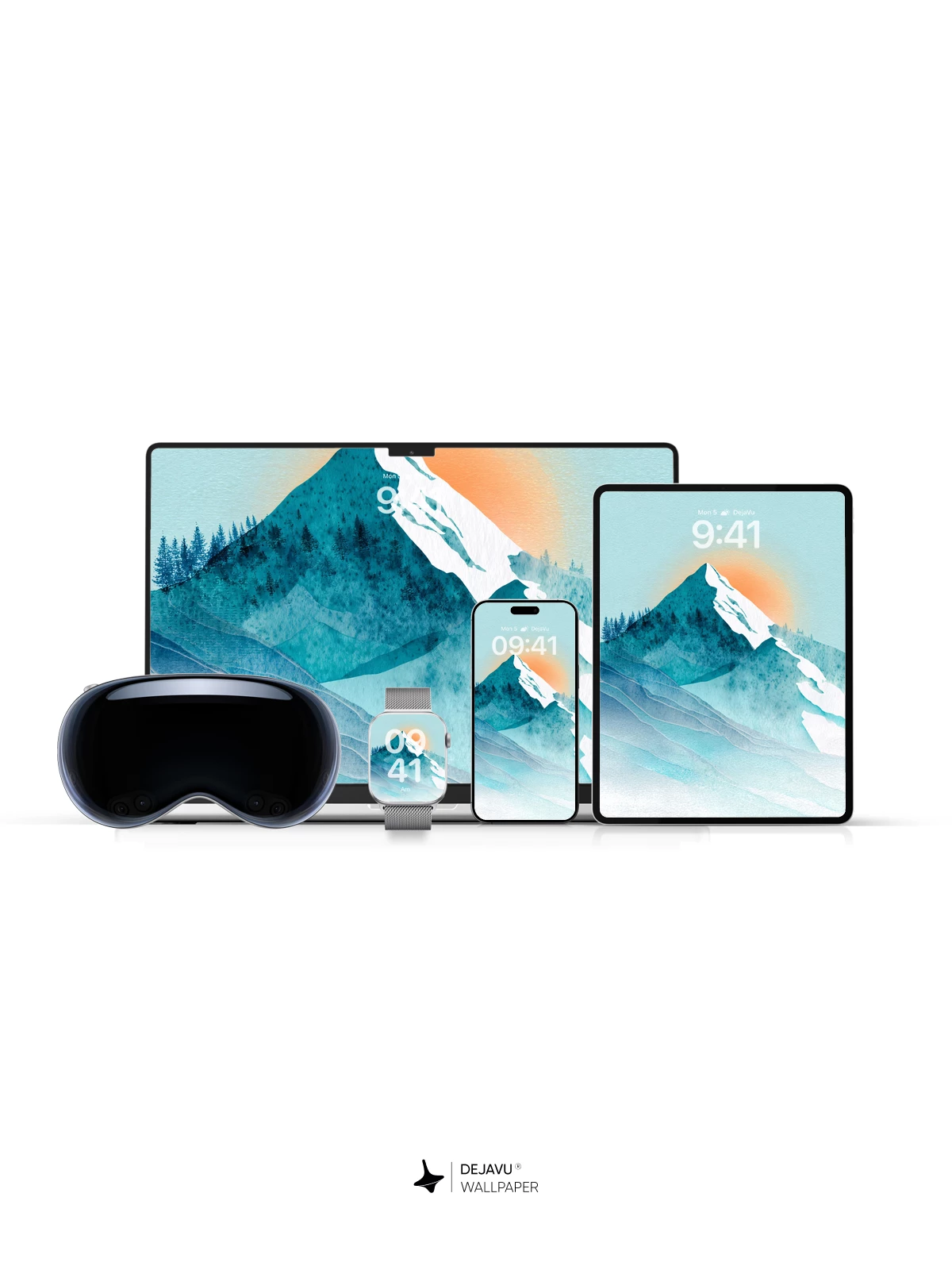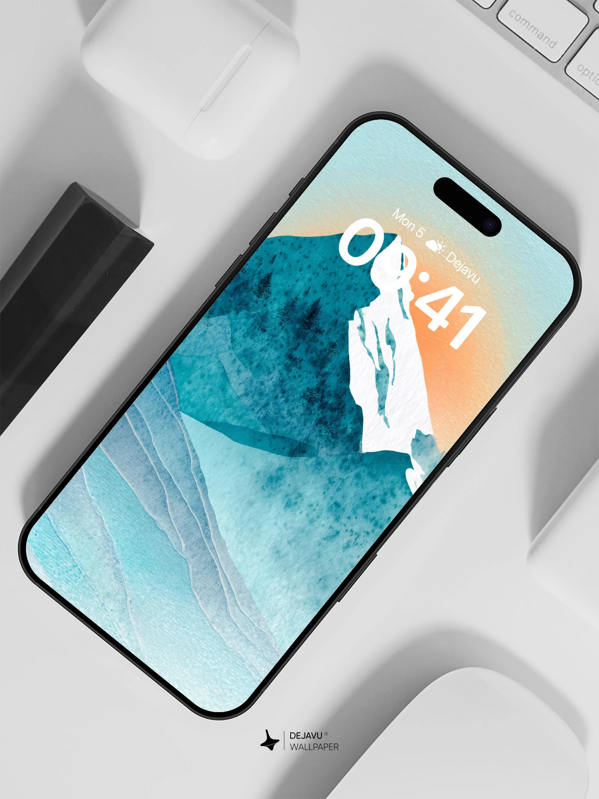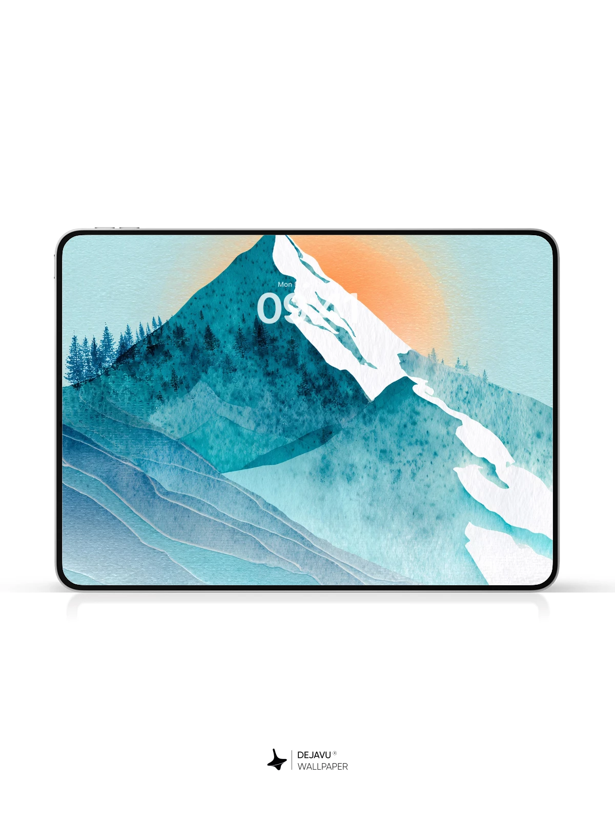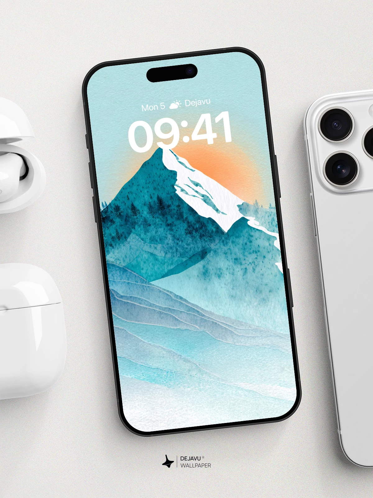 This stunning 8K wallpaper captures the quiet majesty of a snow-capped peak at dawn, rendered in delicate watercolor style with layered blues and a warm sunrise halo. Inspired by the poetic stillness of nature, it evokes a sense of peace and timeless beauty—ideal for iPhone, Android, or tablet screens. The harmonious blend of color and form makes it a soothing backdrop for any device.