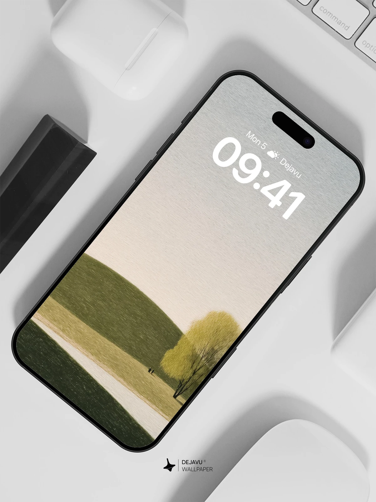 This breathtaking 8K wallpaper captures a solitary tree standing tall on a gentle green hill, framed by an expansive, softly hued sky. The composition, reminiscent of Andrew Wyeth’s contemplative landscapes, blends realism with poetic stillness, inviting viewers into a moment of peaceful introspection. Ideal for iPhone, Android, or tablet screens, its balanced design and natural palette create a calming digital backdrop that enhances any device. Perfect for those who appreciate minimalist nature art with emotional depth.