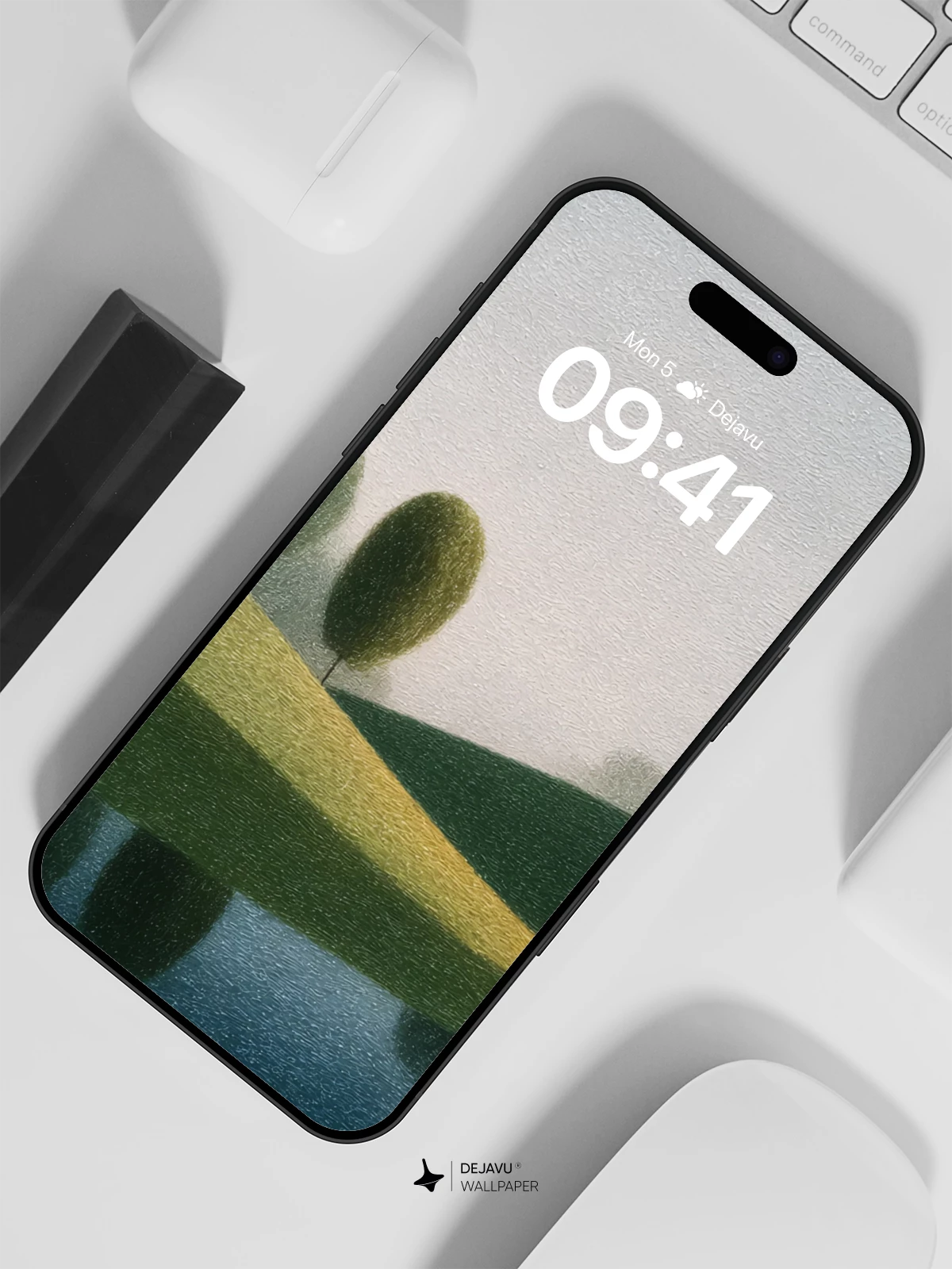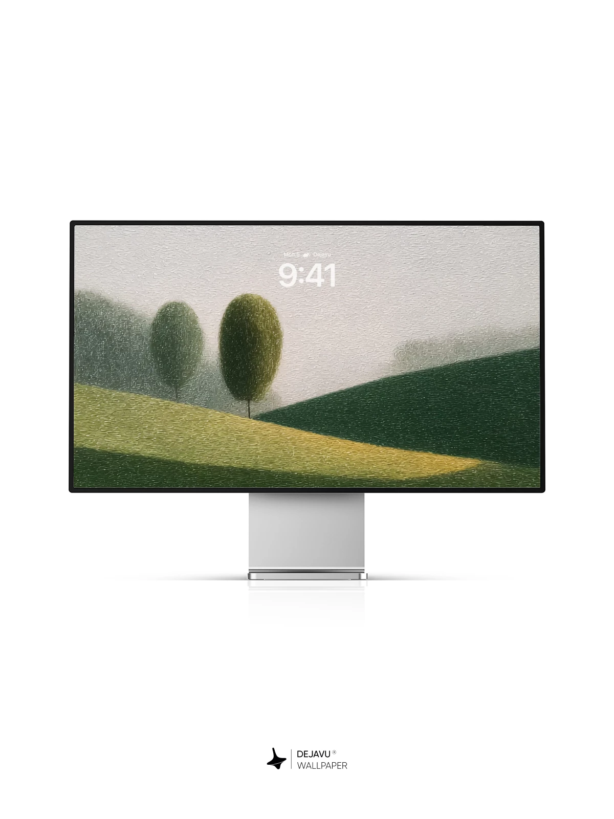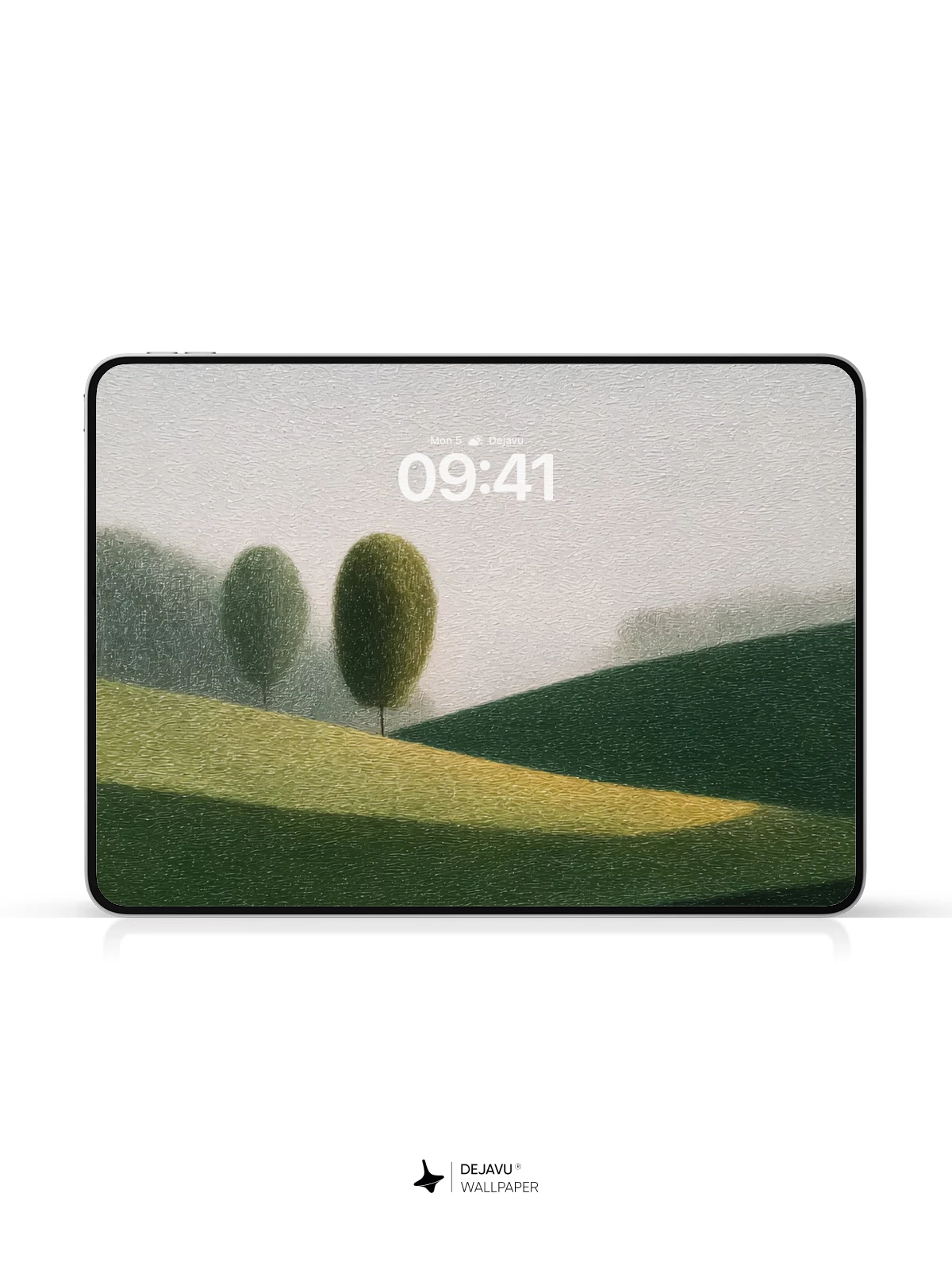 This serene digital artwork captures a quiet moment in nature, where two rounded trees stand on a gently sloping hill, their reflections perfectly mirrored in still waters below. The muted palette and soft gradients create a meditative atmosphere, ideal for calming your screen. Inspired by the minimalist aesthetics of modern landscape art, this 8K wallpaper is designed to elevate your iPhone or Android device with timeless elegance and peaceful harmony.