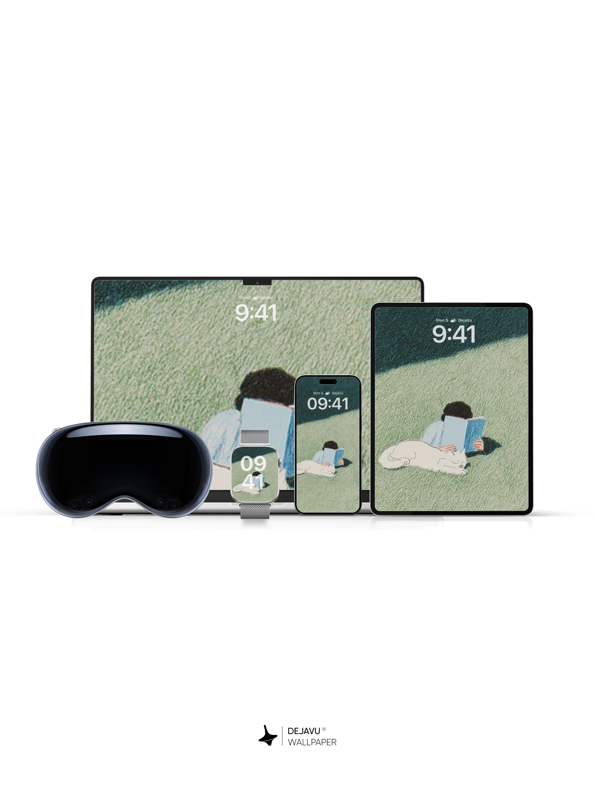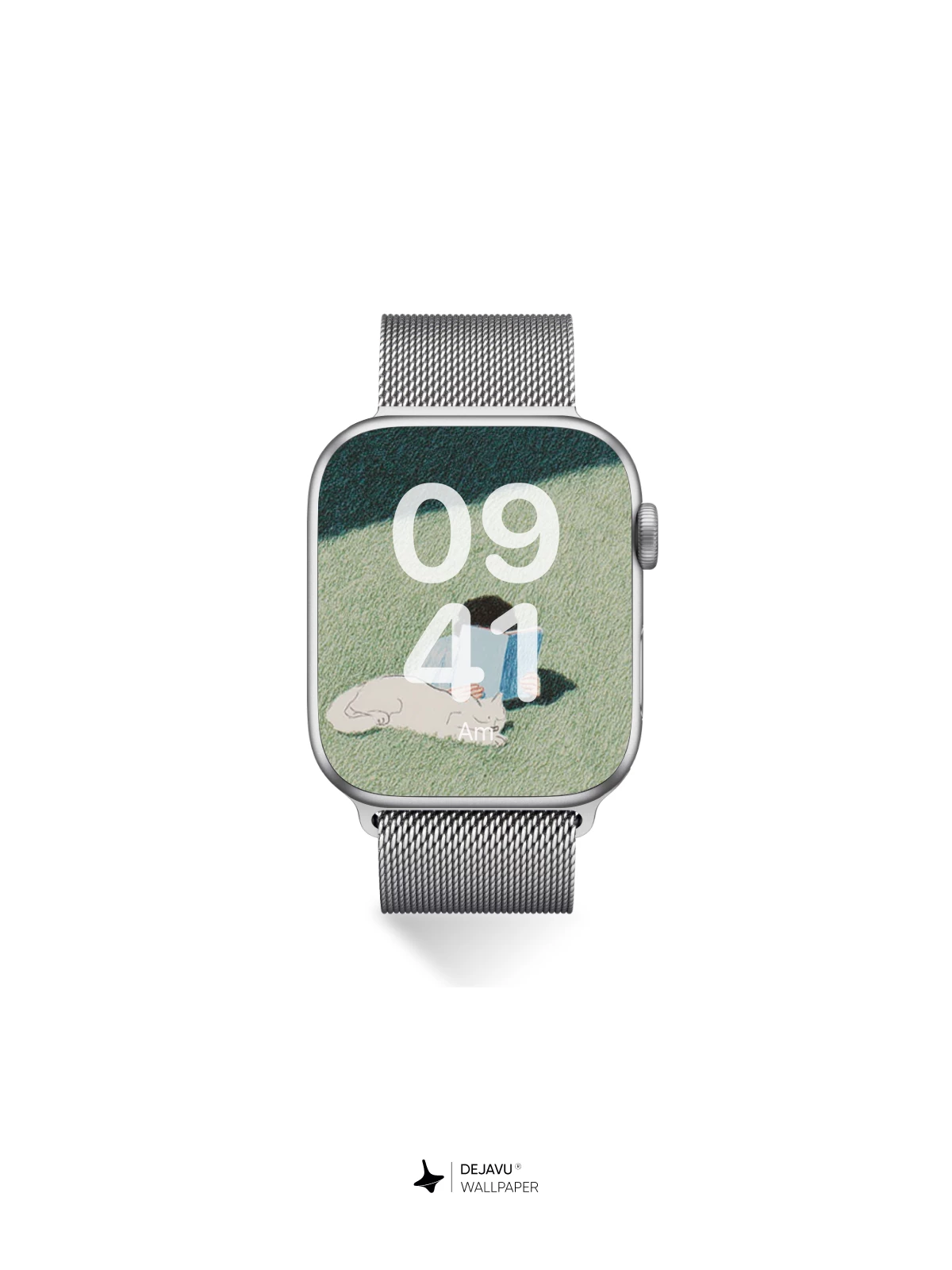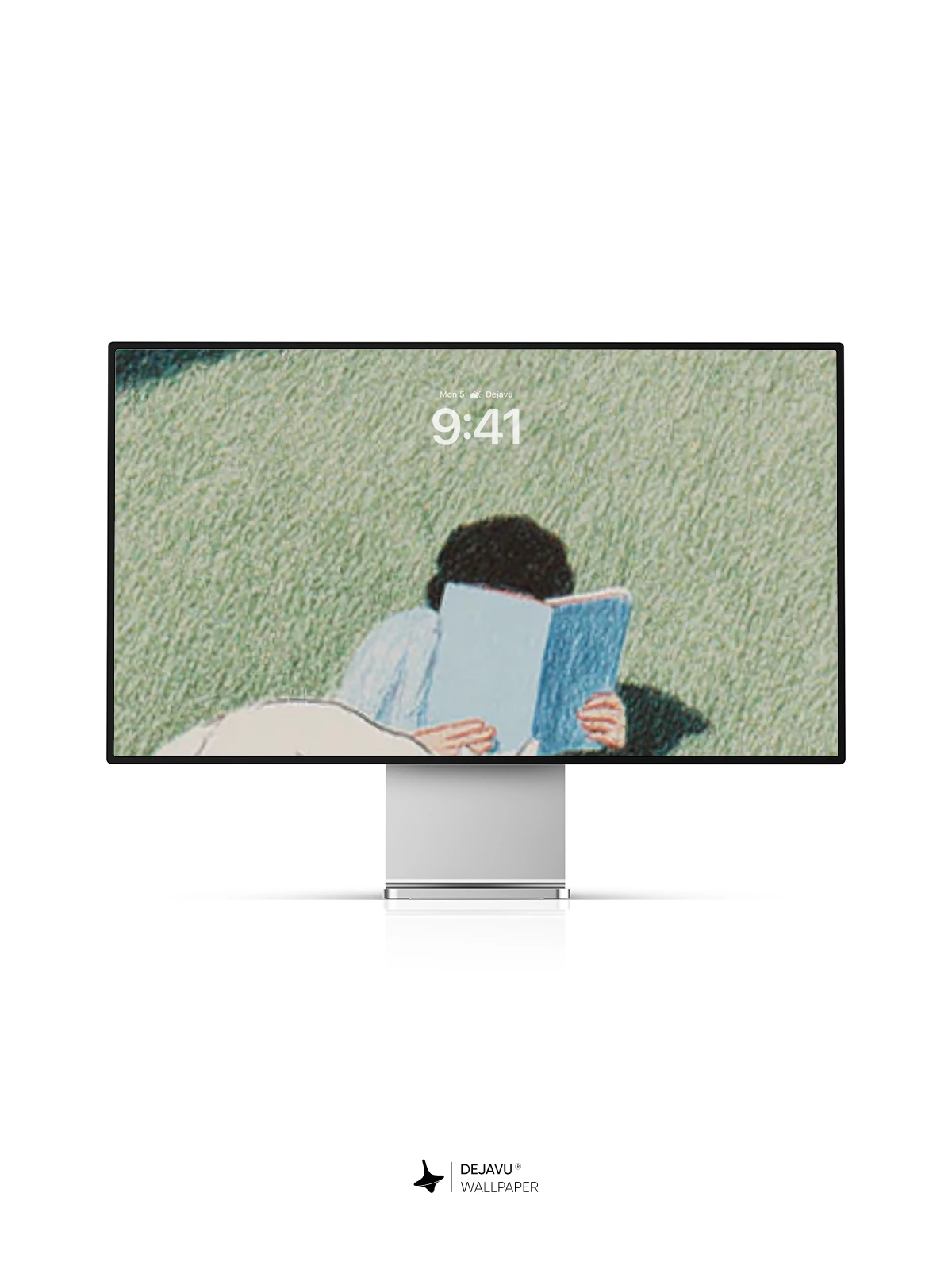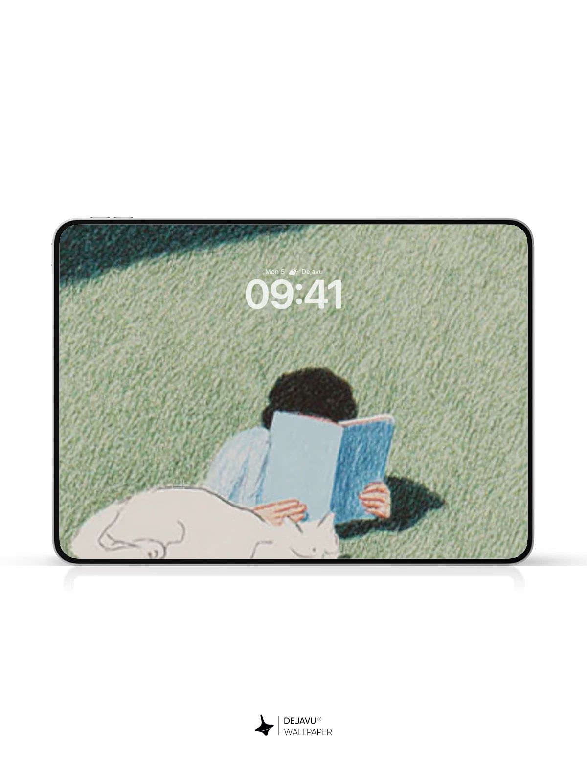 This tranquil illustration captures a quiet afternoon where a person reads a book while a white cat rests beside them on vibrant green grass, bathed in gentle sunlight. The scene evokes calmness, companionship, and the simple joys of solitude. Ideal as an 8K wallpaper for iPhone, Android, or tablets, it brings a soothing, nature-inspired aesthetic to your screen.